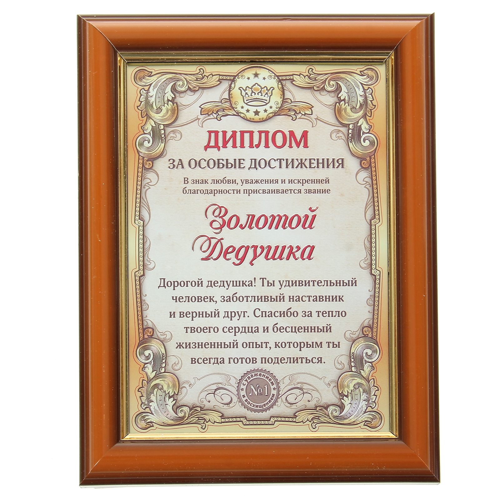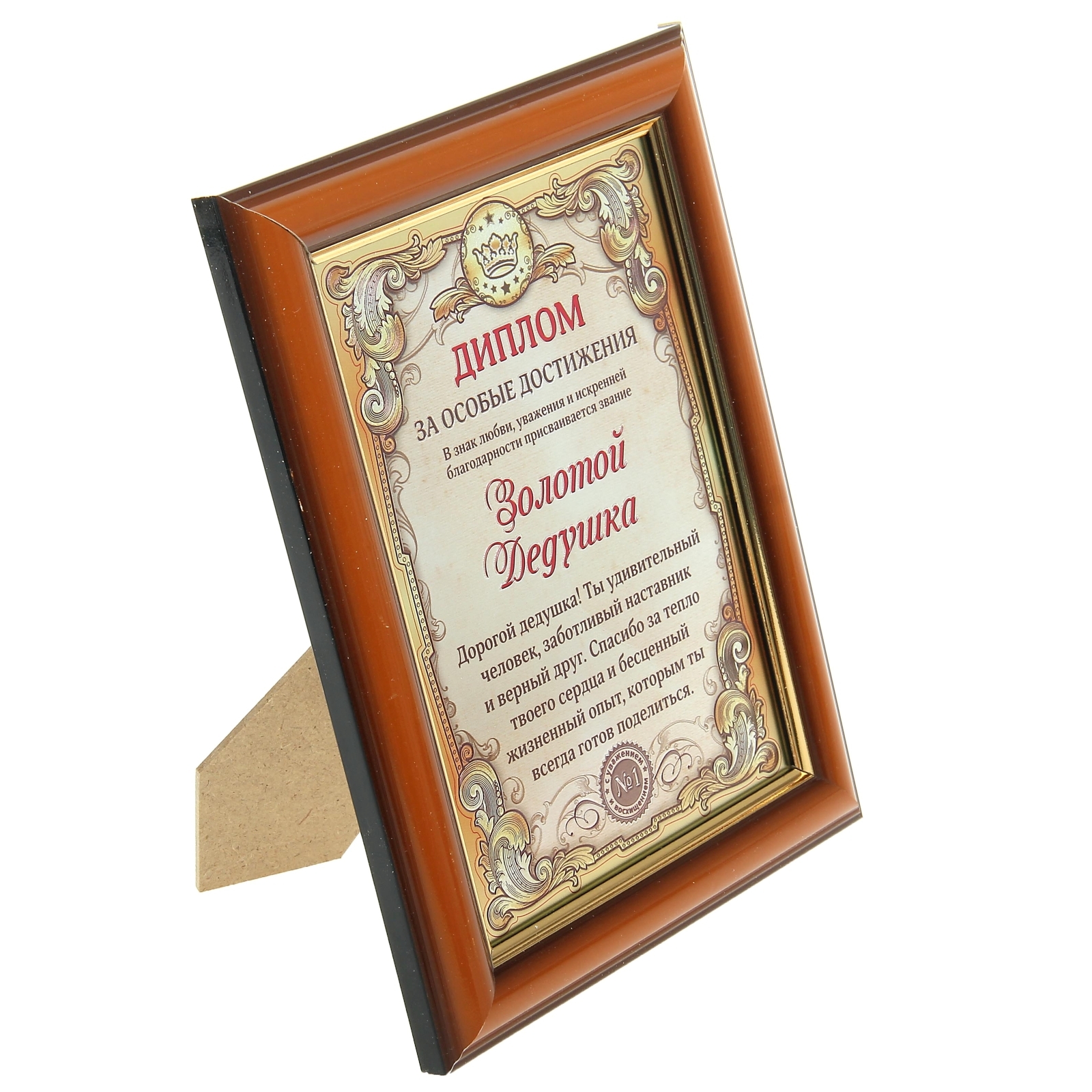 Диплом в рамке «золотой дедушка», золото 16.6 21.6 см