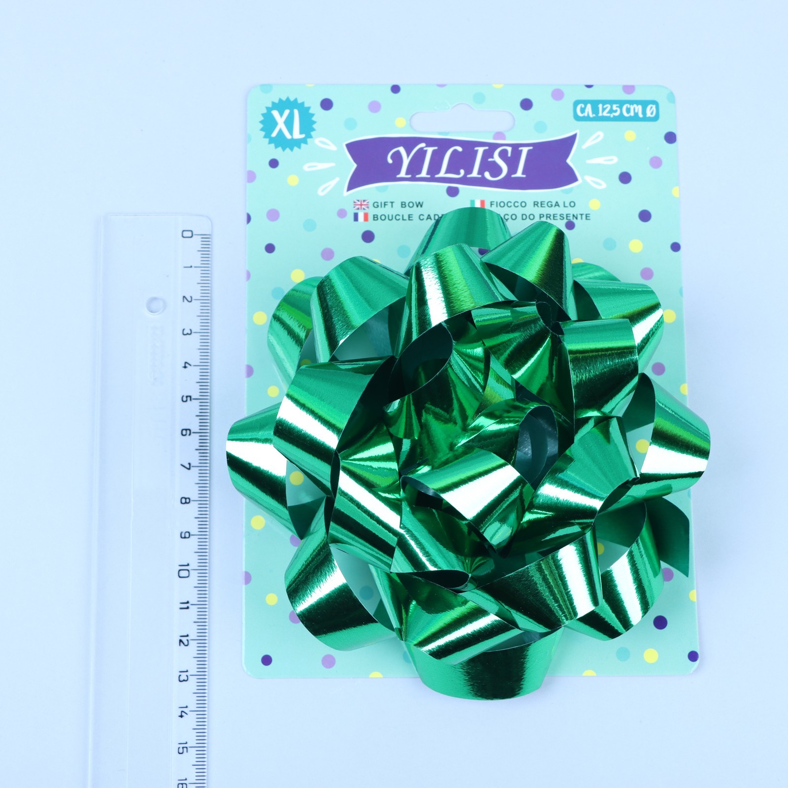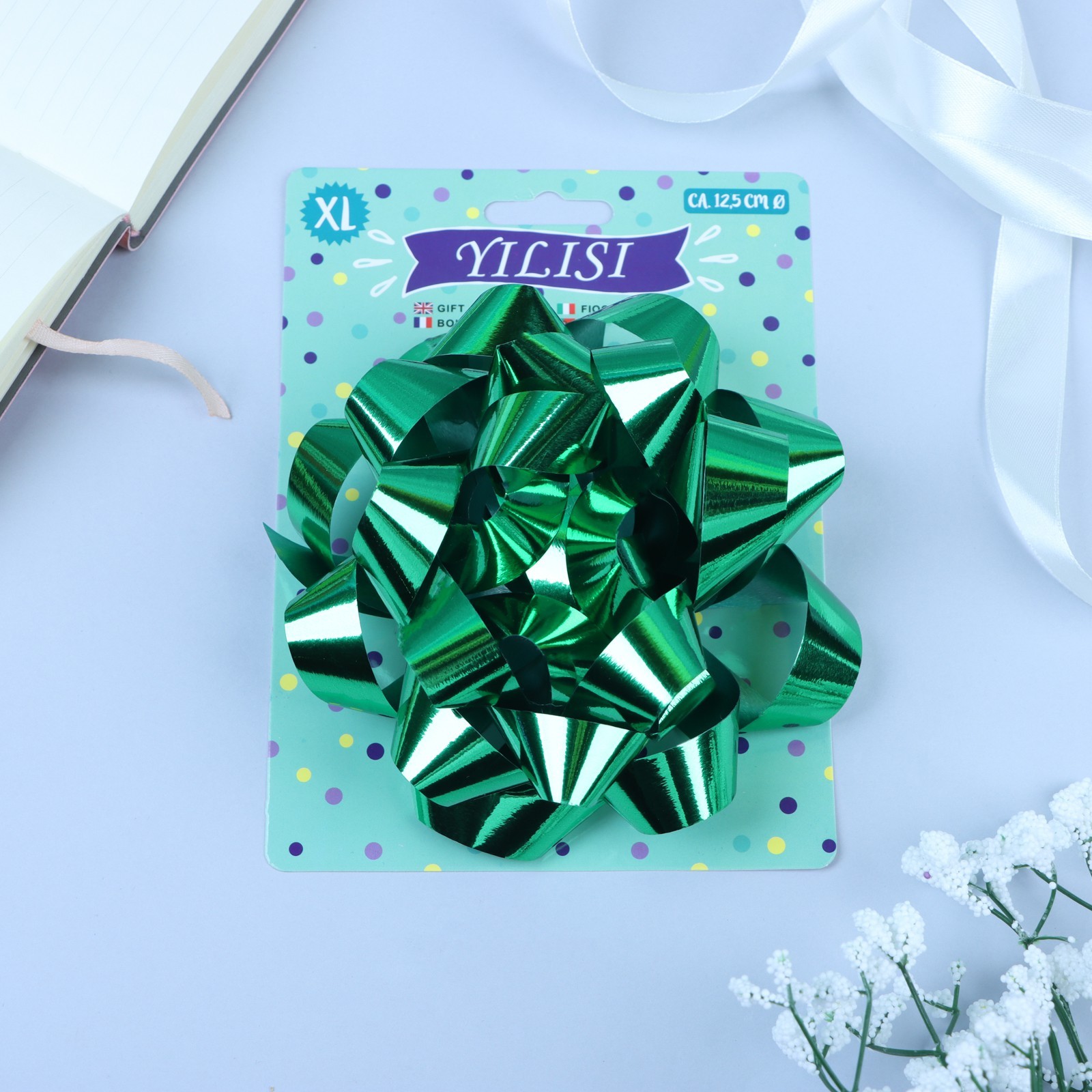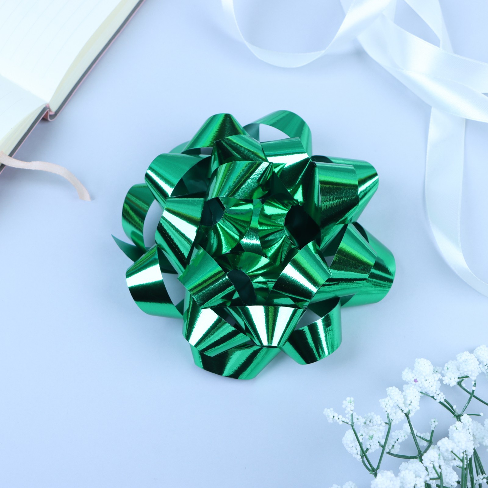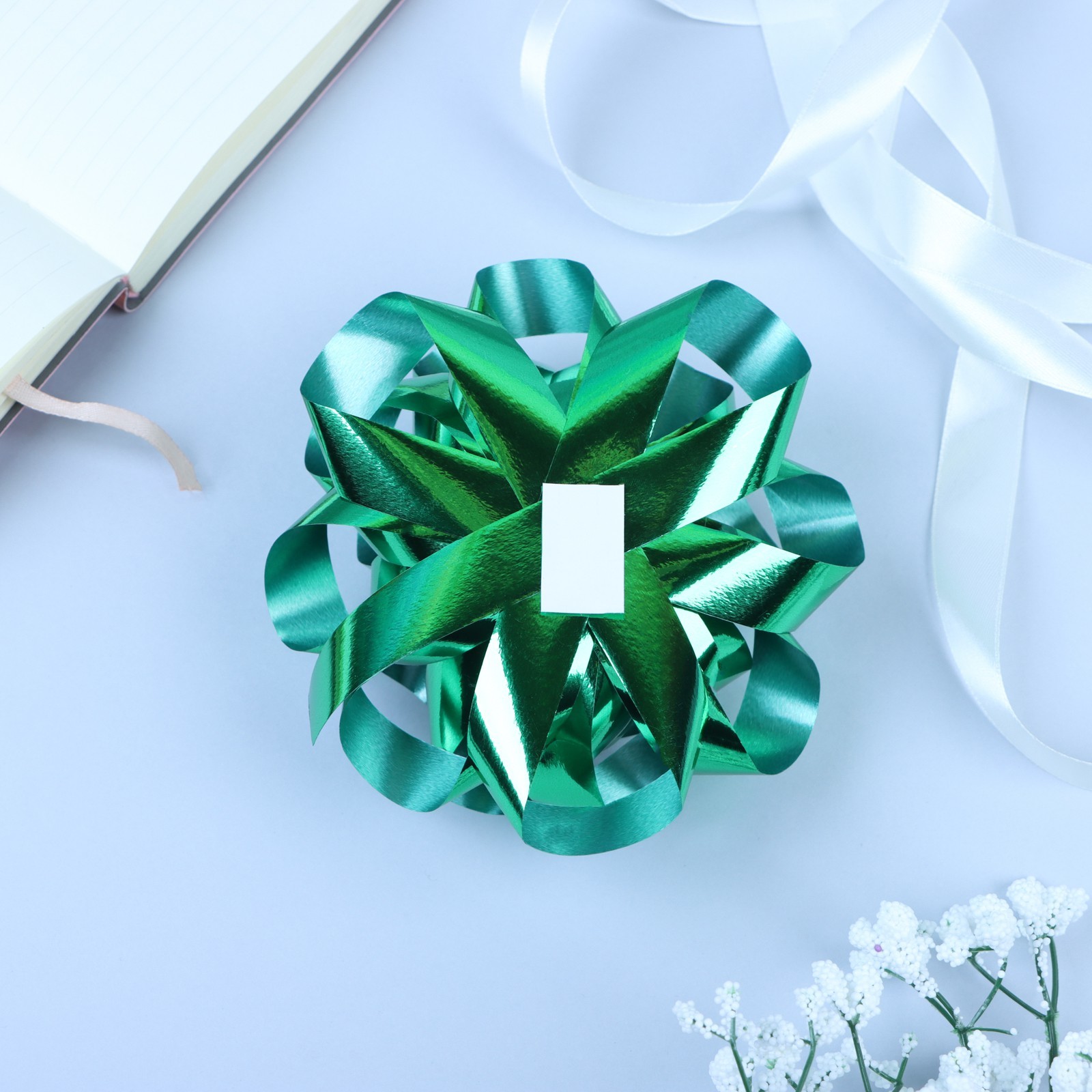 Подарочный бант - звезда № 14, зеленый, металлик, для упаковки подарков