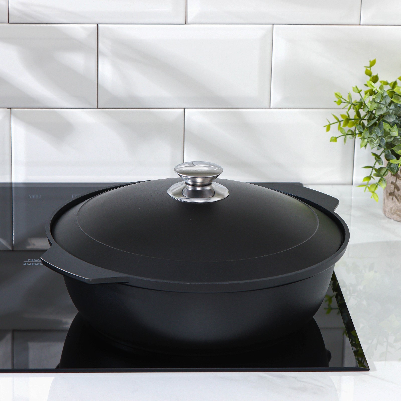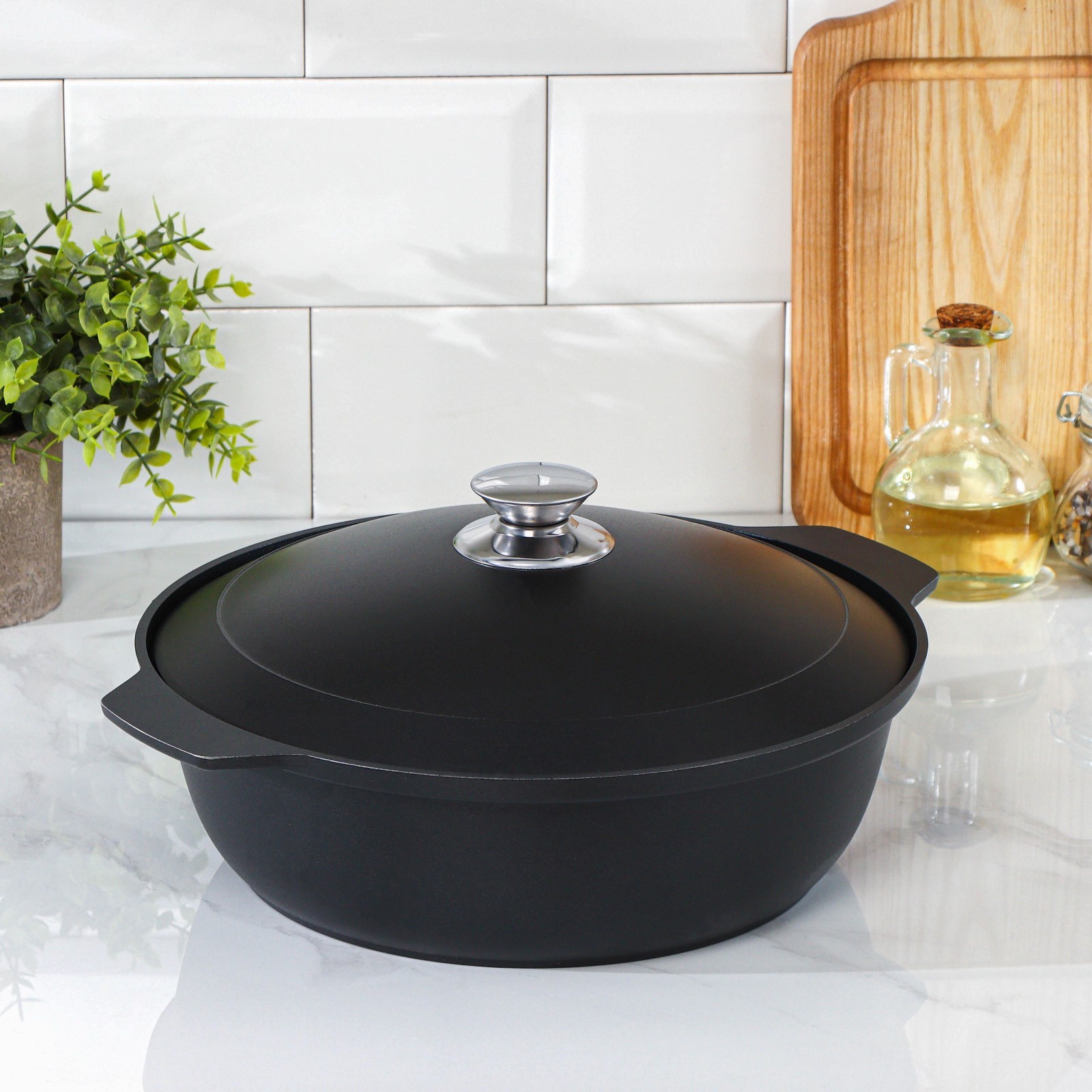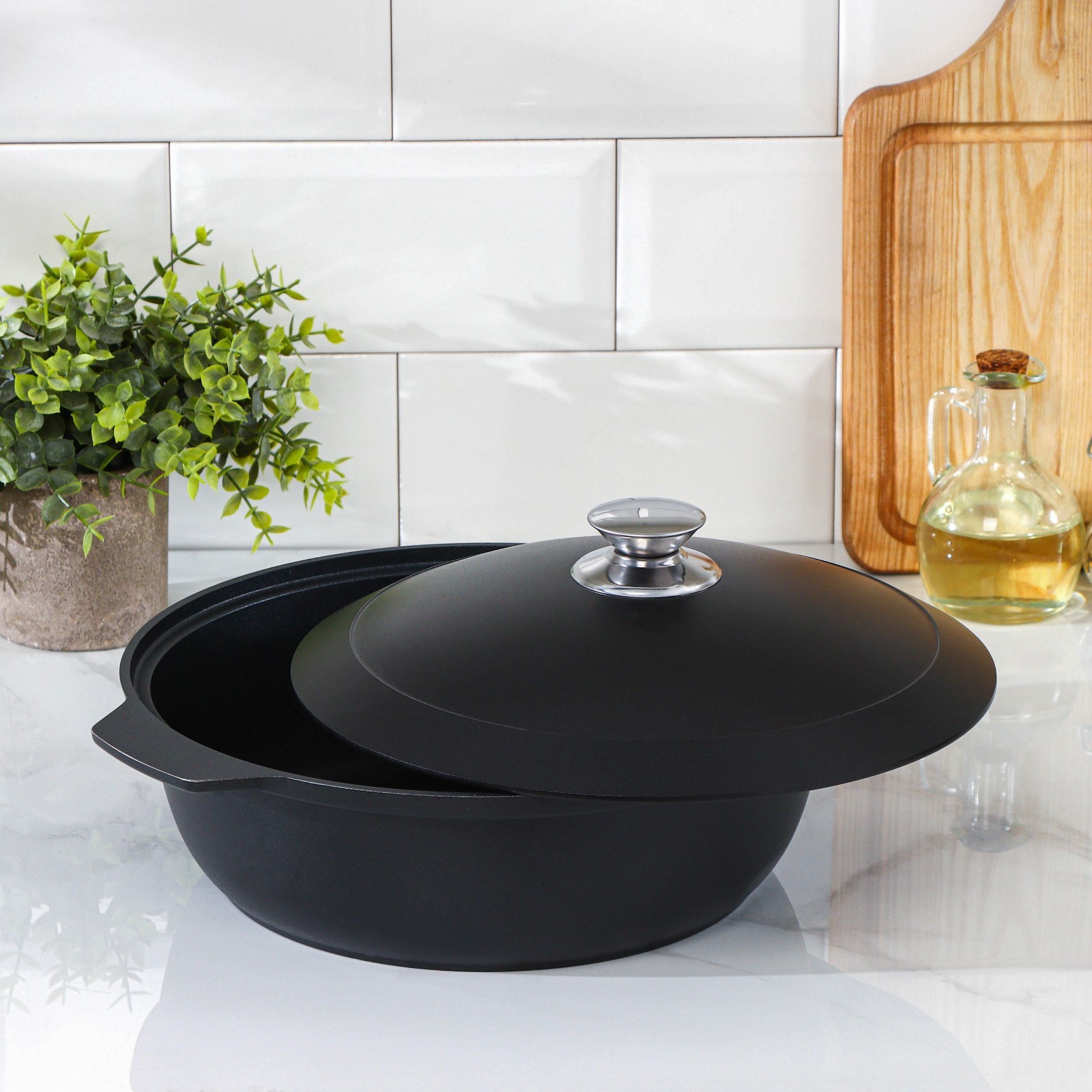 Жаровня «традиция», 3 л, D=29 см, H=8,5 см, алюминиевая крышка, антипригарное покрытие, цвет чёрный