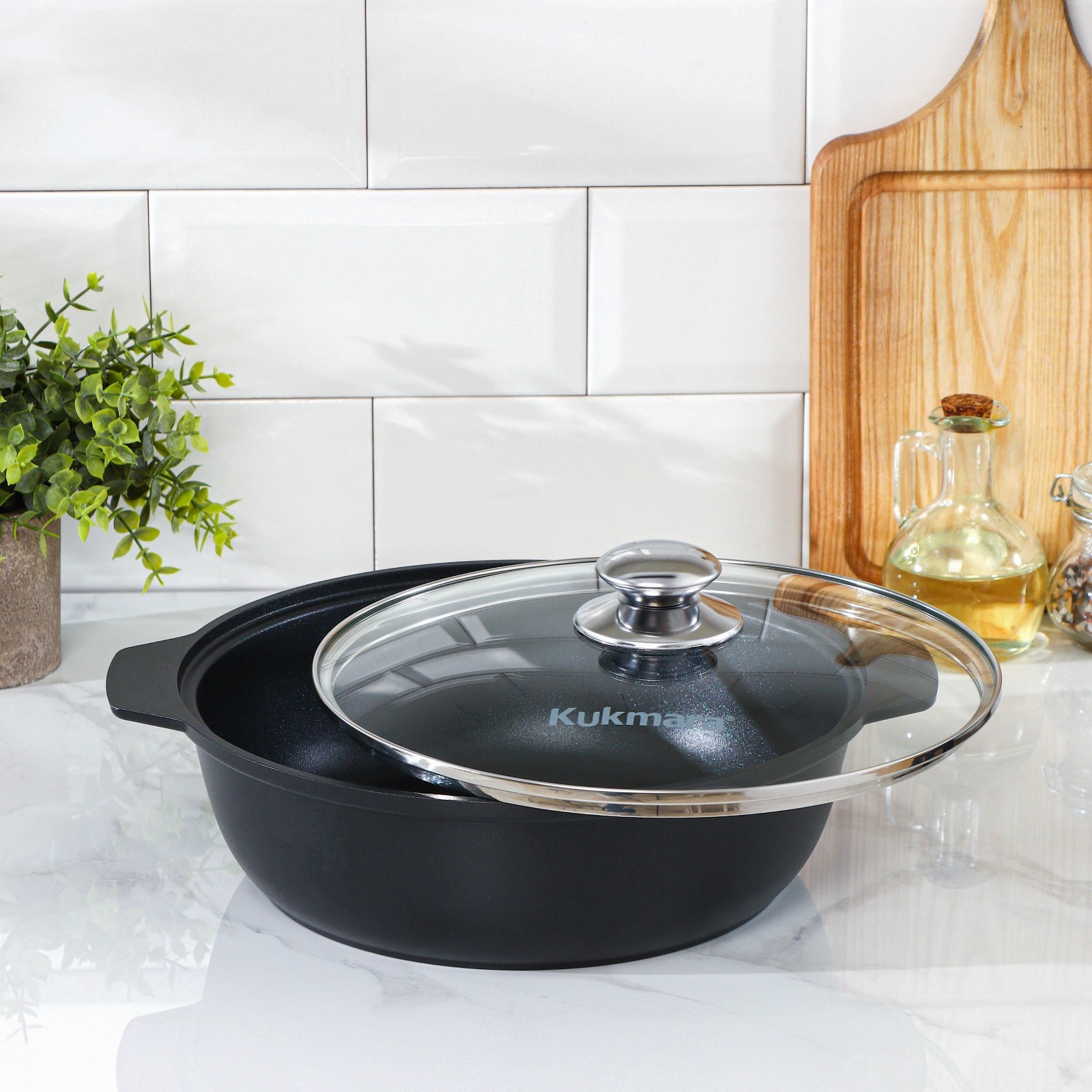 Жаровня «традиция», 3 л, D=26 см, стеклянная крышка, антипригарное покрытие, цвет чёрный