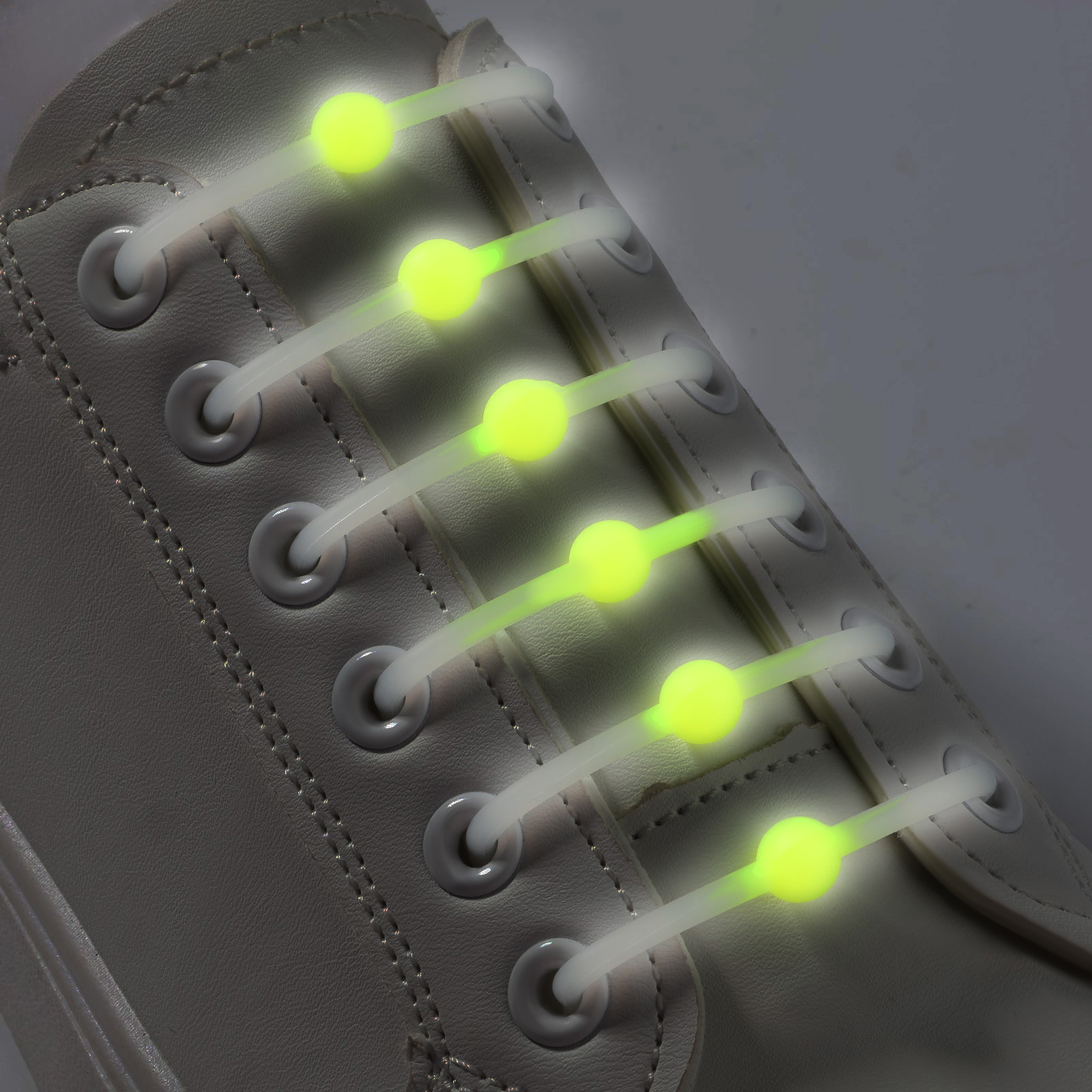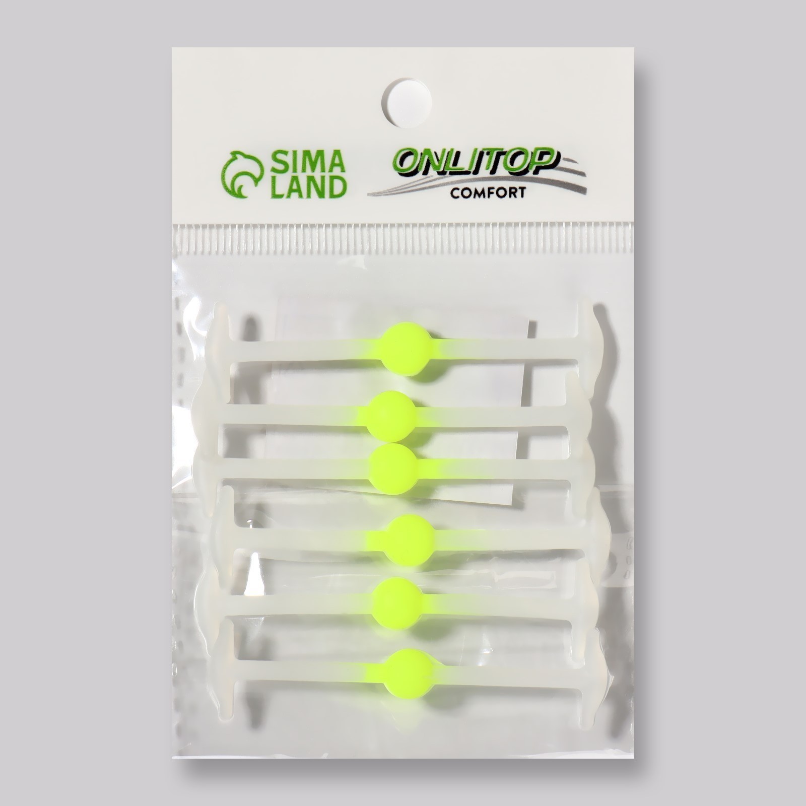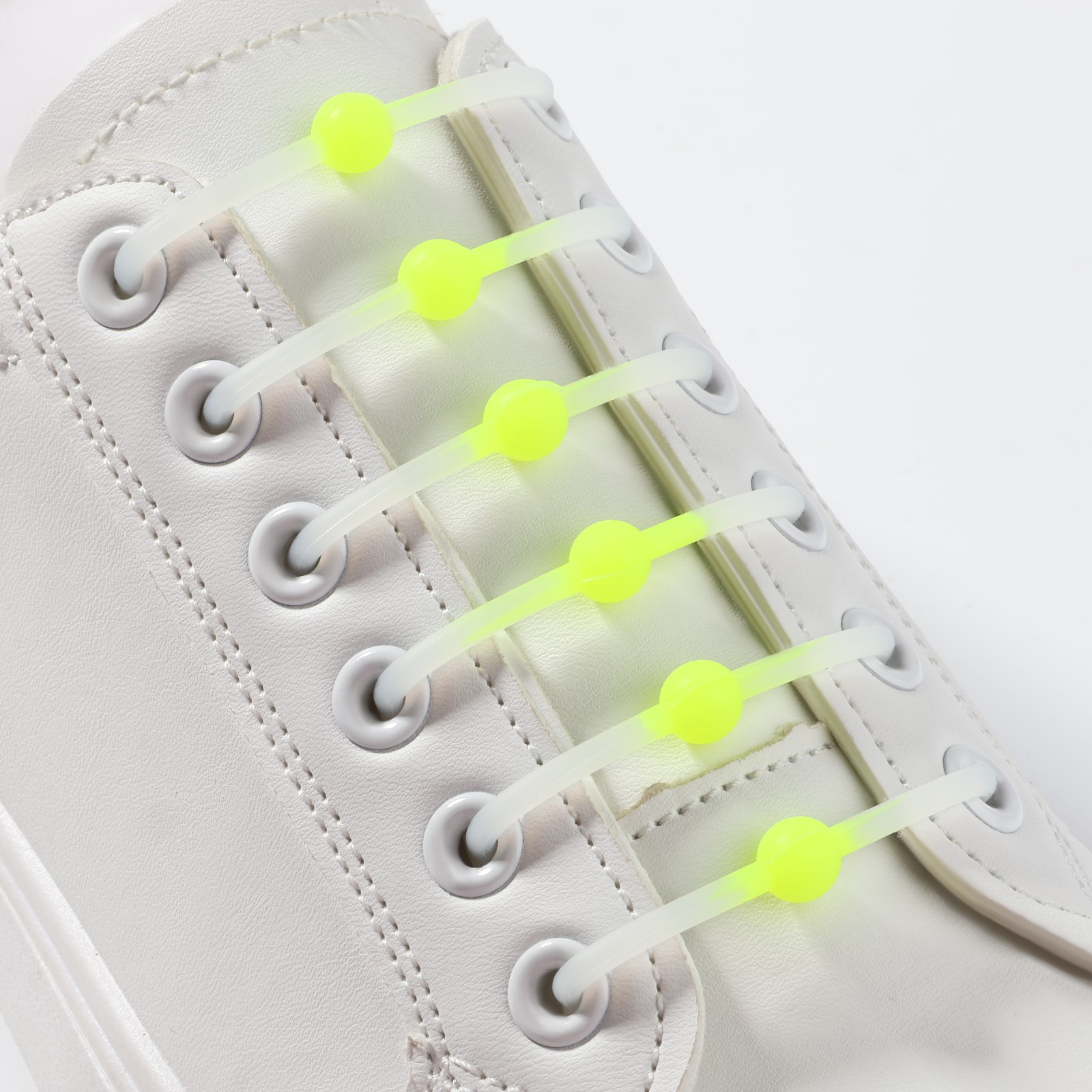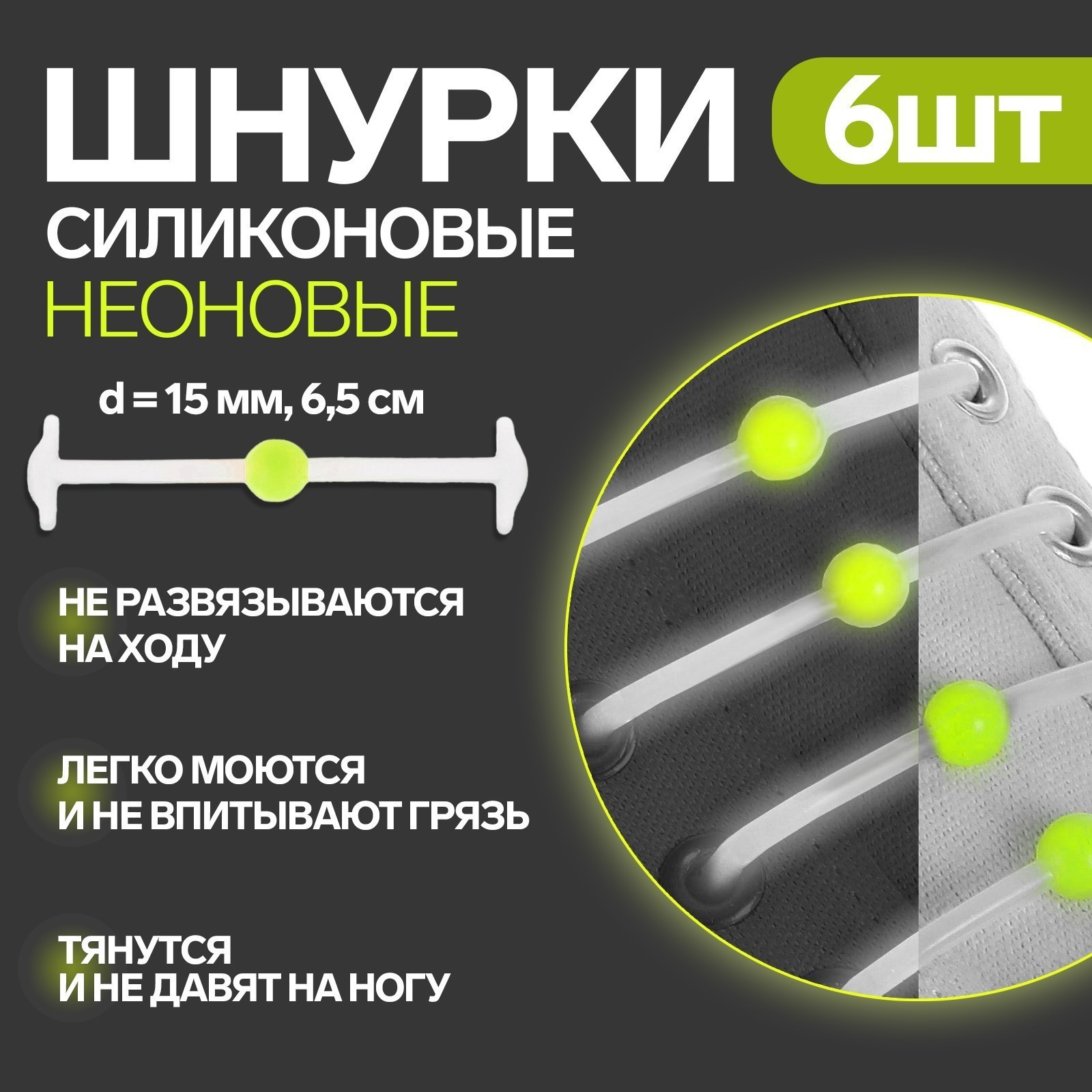 Набор шнурков для обуви «шар», 6 шт, силиконовые, круглые, светящиеся в темноте, D = 15 мм, 6,5 см, цвет белый/жёлтый неоновый