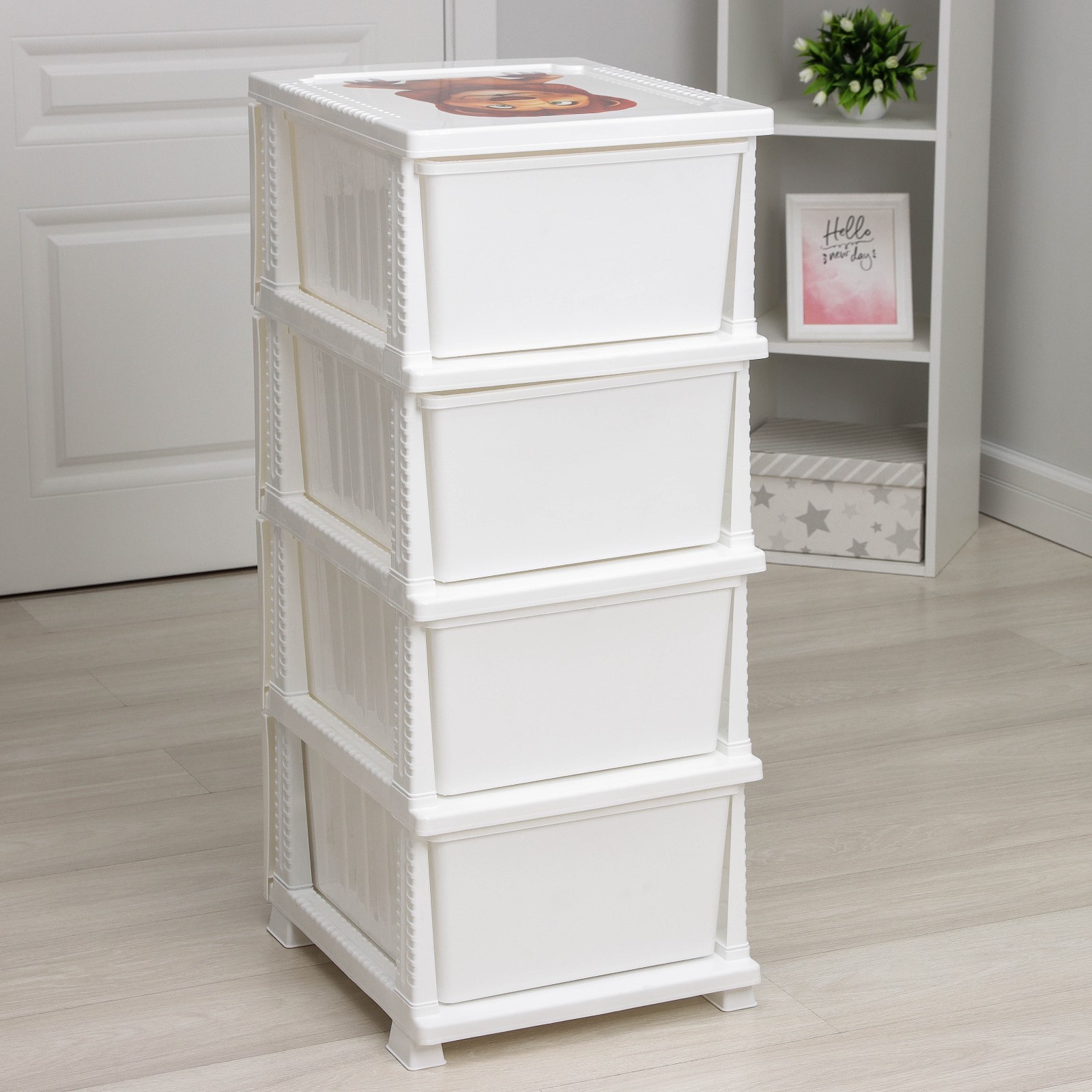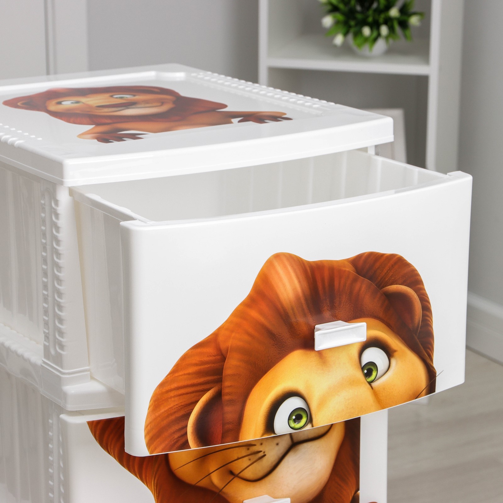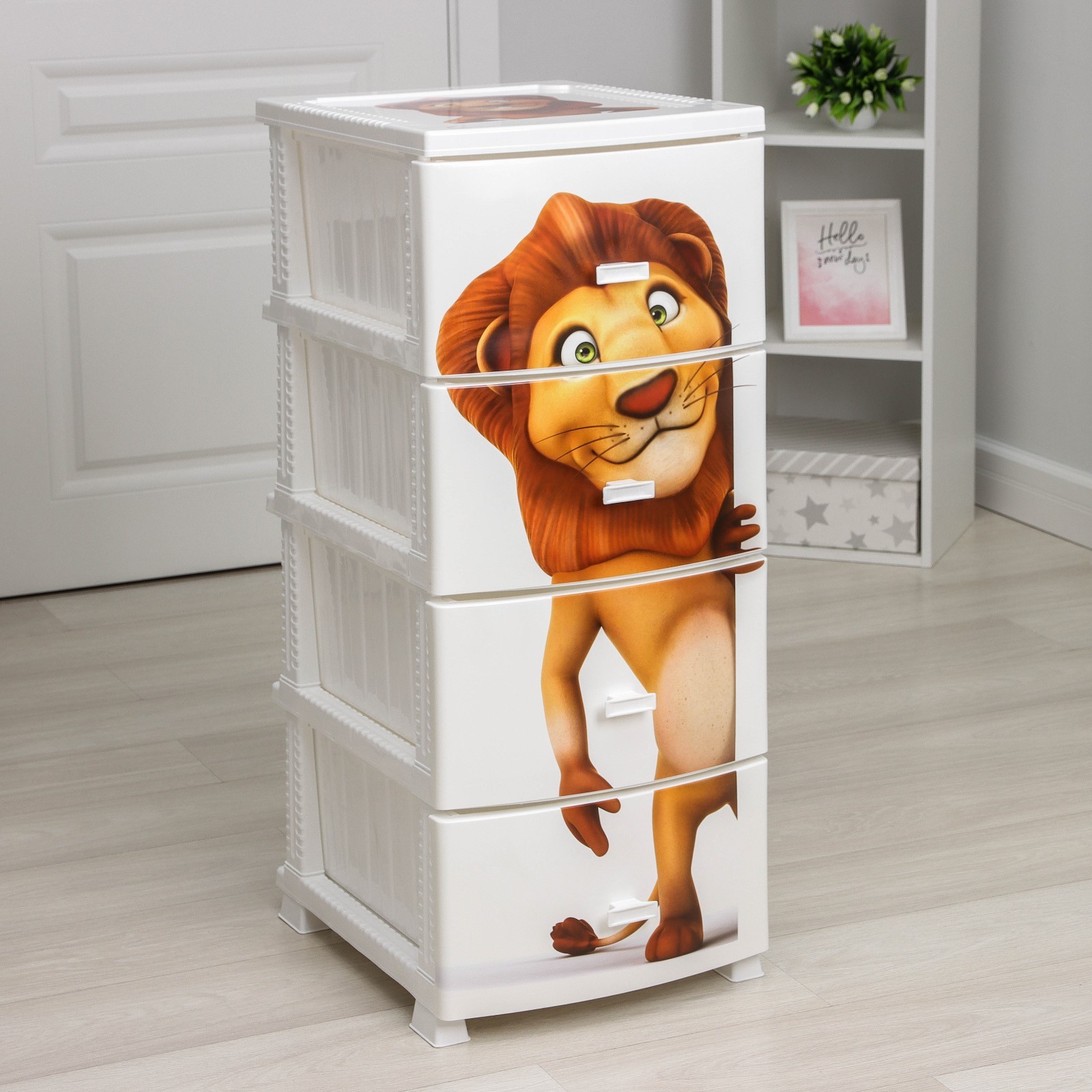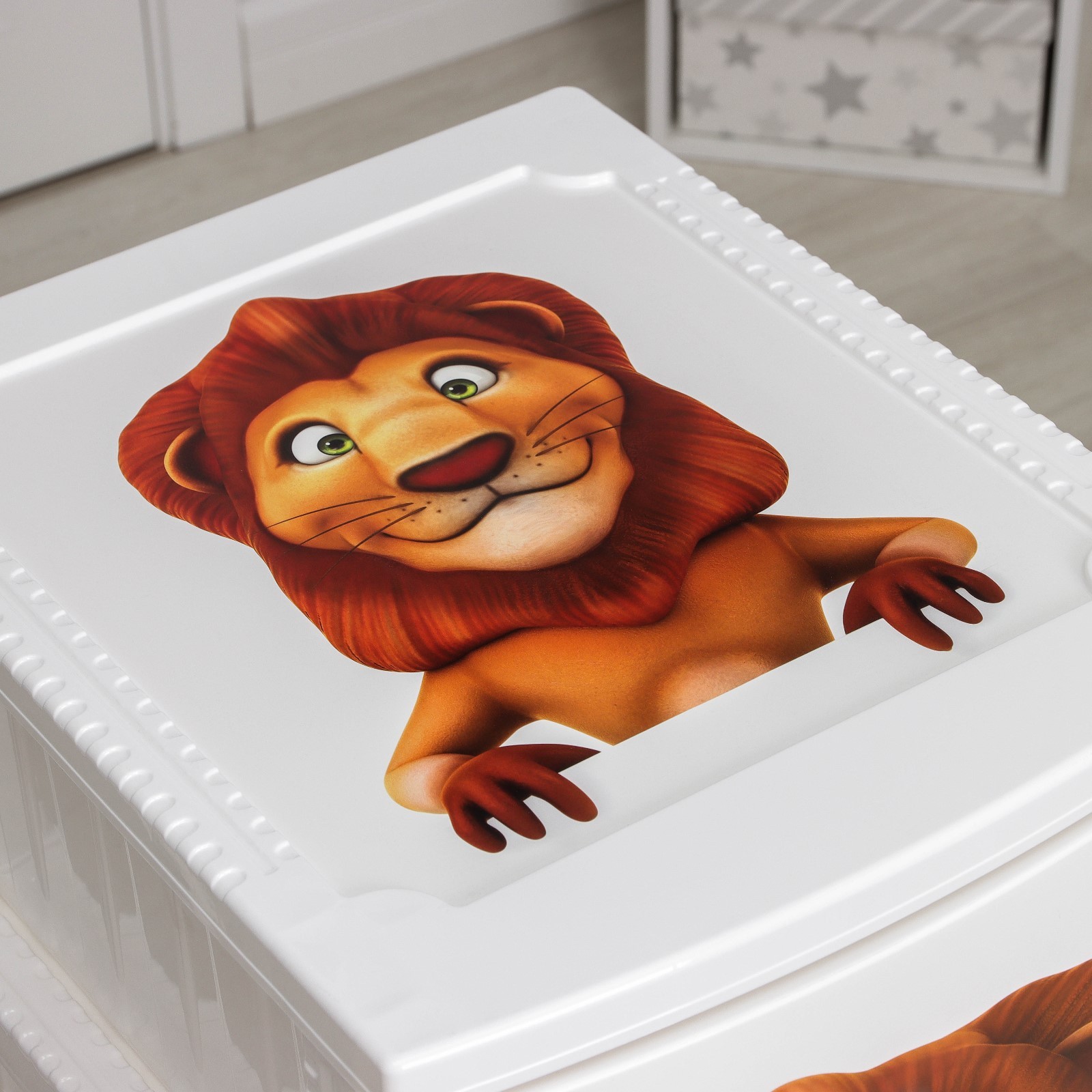 Комод детский 4-х секционный «декор. лев», цвет белый