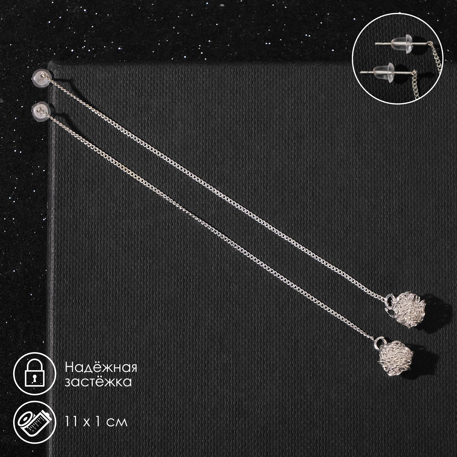 Серьги металл «цепочки» шарики, цвет серебро. ТМ QF — это яркий пример сочетания бессмертной классики и актуальных трендов в мире аксессуаров. Металлические цепи, серьги-кольца, украшения со стразами, яркие броши — вы всегда найдёте подходящий аксессуар. QF включает огромный ассортимент бижутерии, а если вы хотите проявить фантазию и сделать что-то оригинальное самостоятельно, фурнитура для создания украшений — идеальное решение. Аксессуары — это способ проявить себя и своё чувство стиля, с ними вы можете подчеркнуть свои достоинства, привлечь внимание и создать неповторимый образ. Набор:Нет|Цвет:Серебристый|Для кого:Для женщины|Длина, см:11|Тематика праздника:Новый год|Тематика праздника:День рождения|Тематика праздника:Универсальная тематика|Тематика праздника:8 Марта|Адресат:Подруге|Адресат:Дочке|Адресат:Сестре|Адресат:Маме|Материал:Металл|Цвет фурнитуры:Серебряный|Вставка/Подвеска:Без вставок|Материал основания:Металл|Вид застёжки:Застёжка пусет (гвоздик)|Составляющие набора:Серьги|Материал основы:Металл|Возраст:Для взрослых|Тематика:Цепь|Страна:Китай  развернуть описание ▼