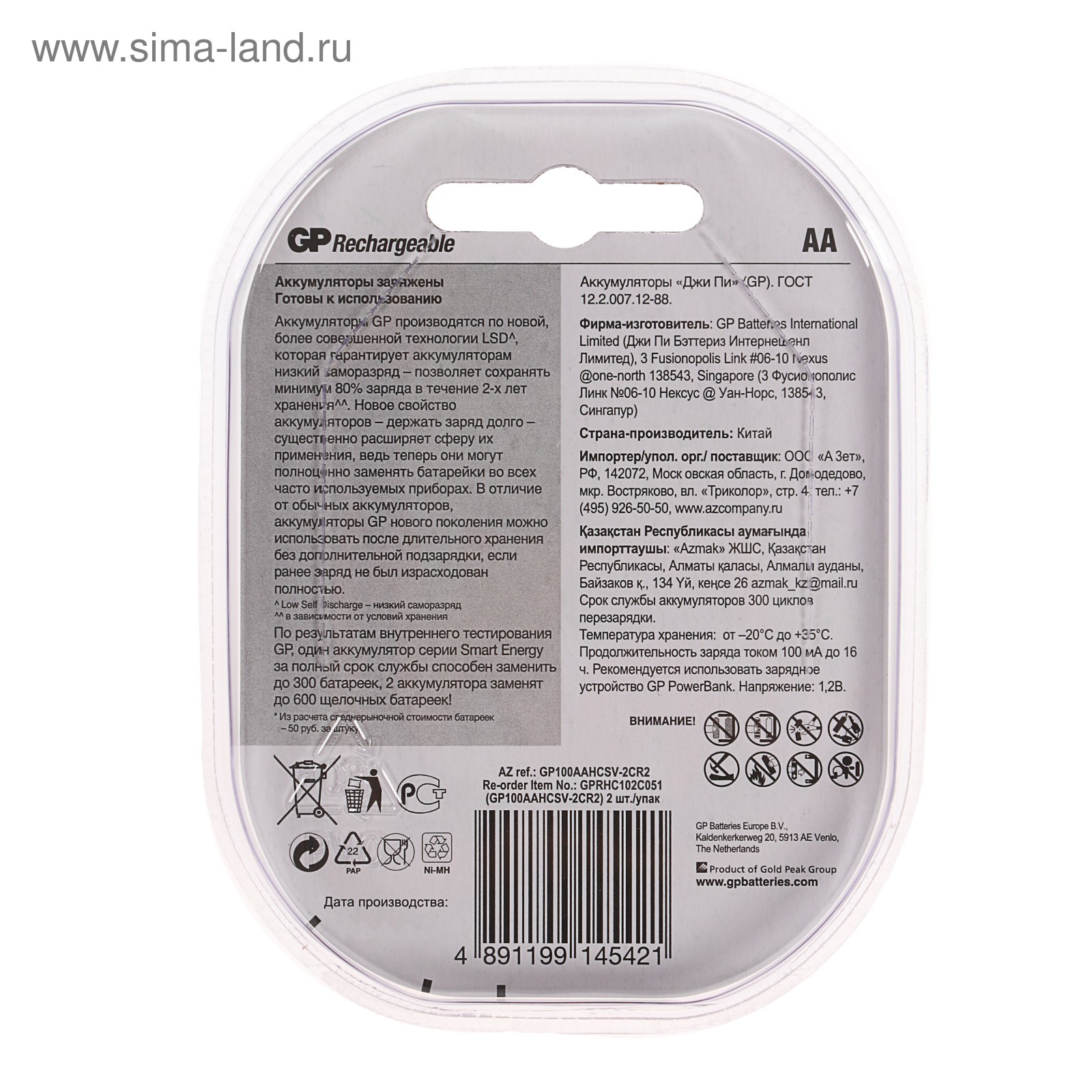 Аккумулятор Gp, Ni-mh, Aa, Hr6-2bl, 1.2в, 1000 мач, блистер, 2 шт.