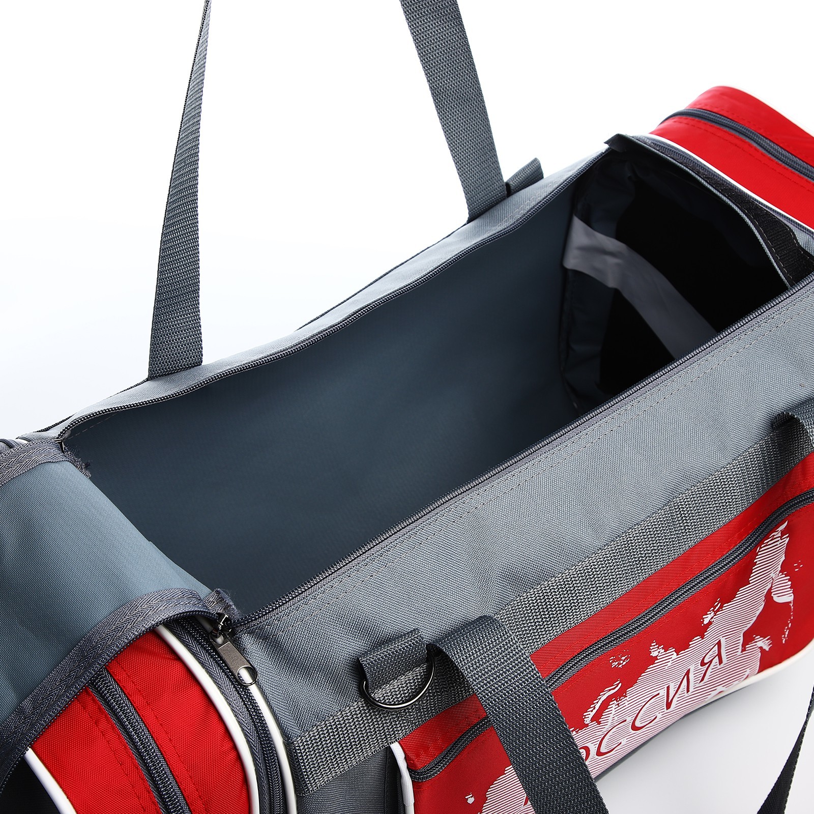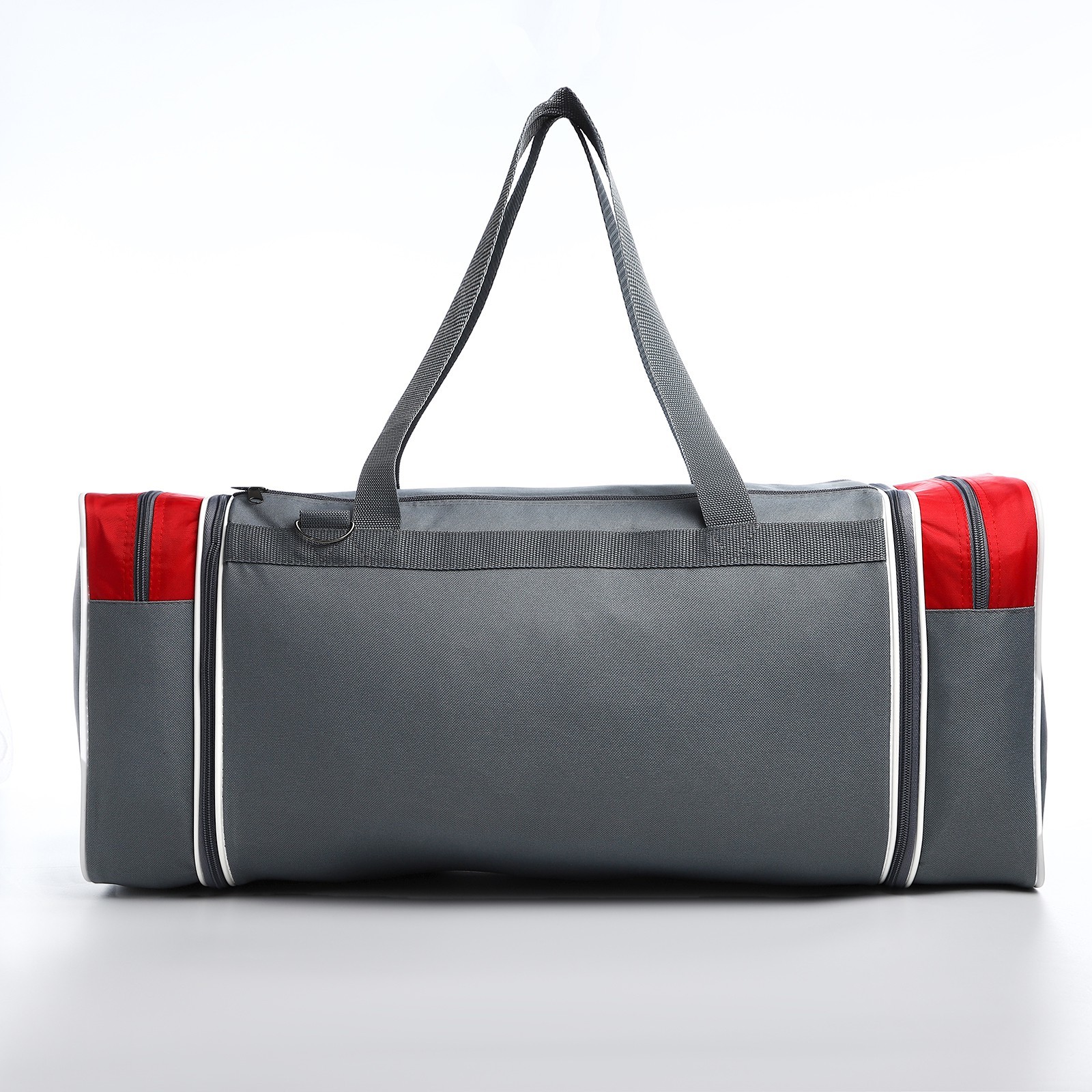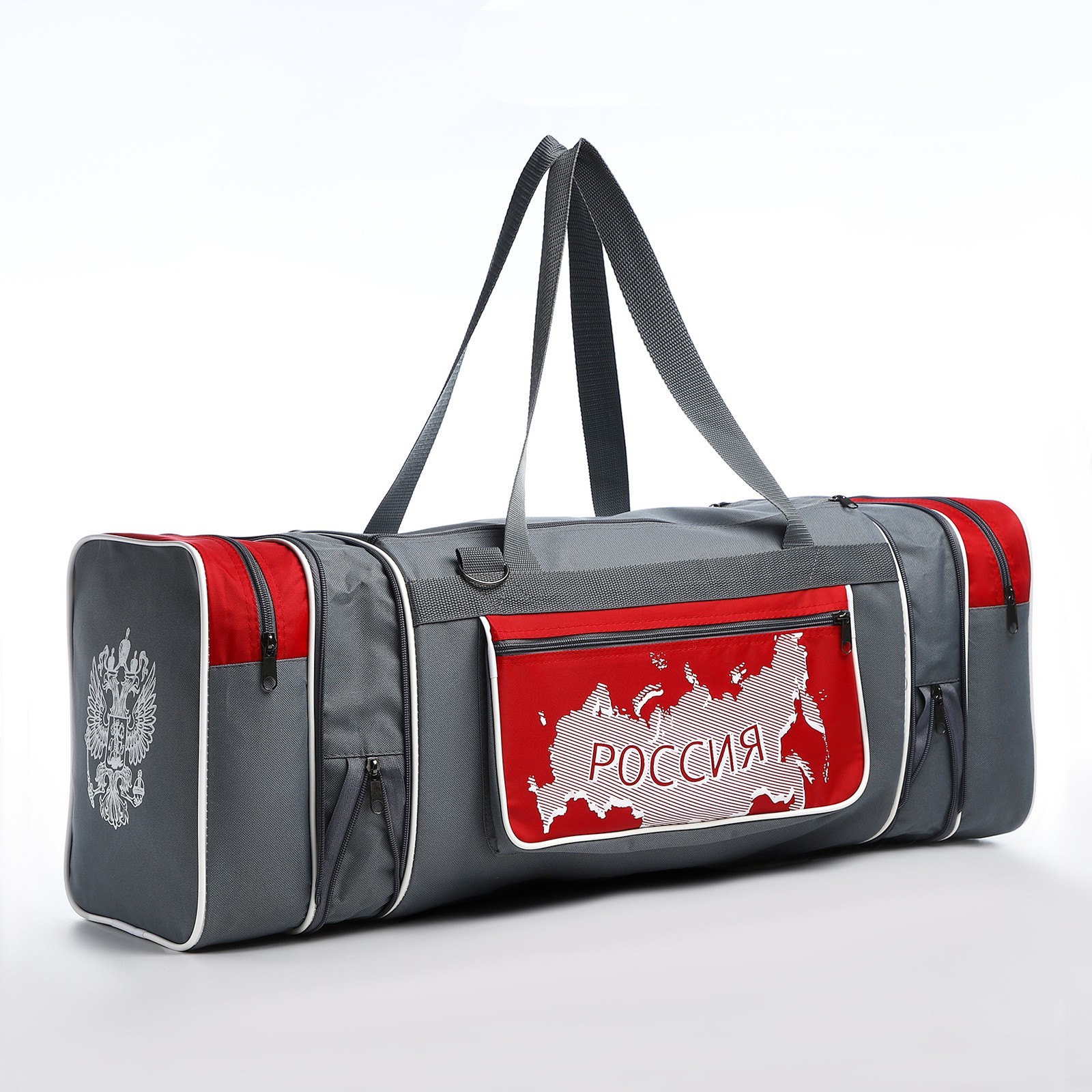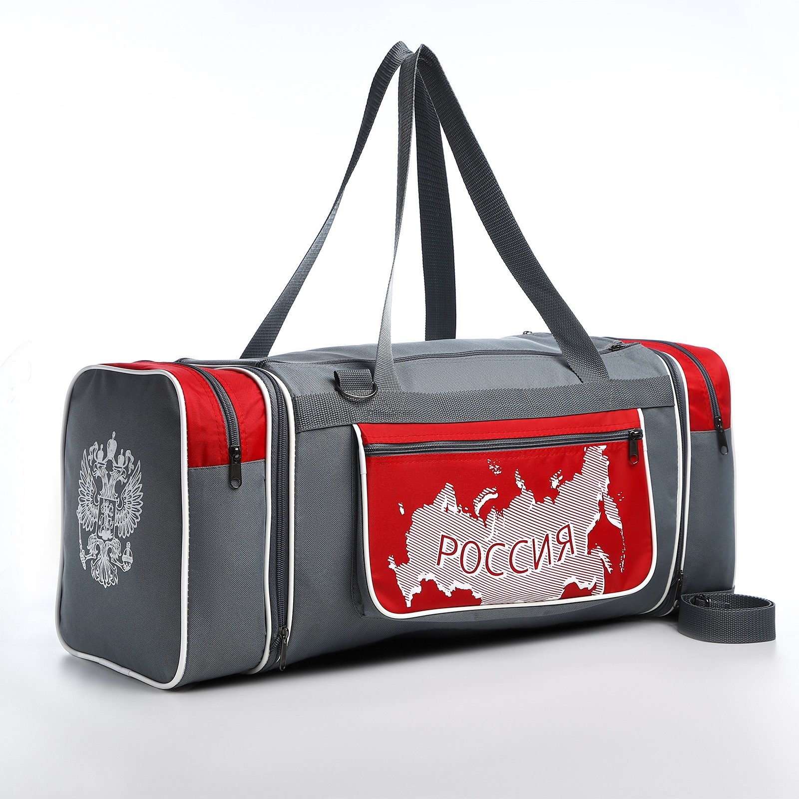 Сумка спортивная на молнии, с увеличением, 3 наружных кармана, длинный ремень, большой размер, цвет серый/красный