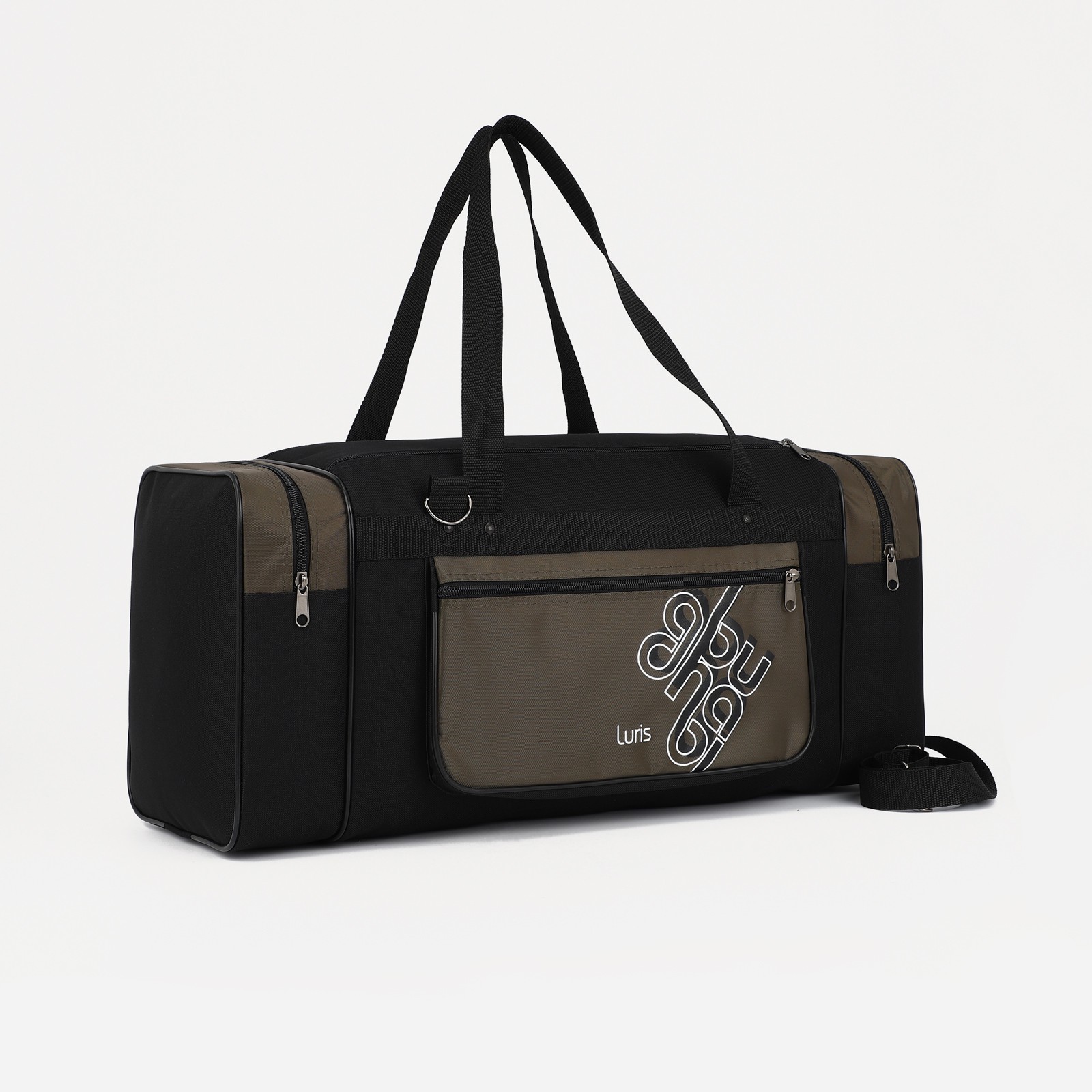 Сумка дорожная, 3 отдела на молниях, наружный карман, длинный ремень, цвет чёрный/хаки