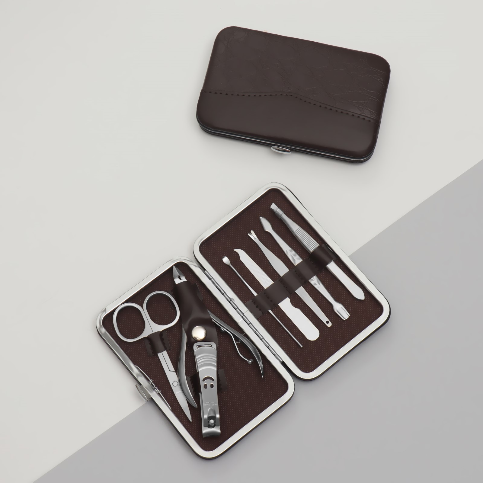 Набор маникюрный, 8 предметов, в футляре, цвет коричневый