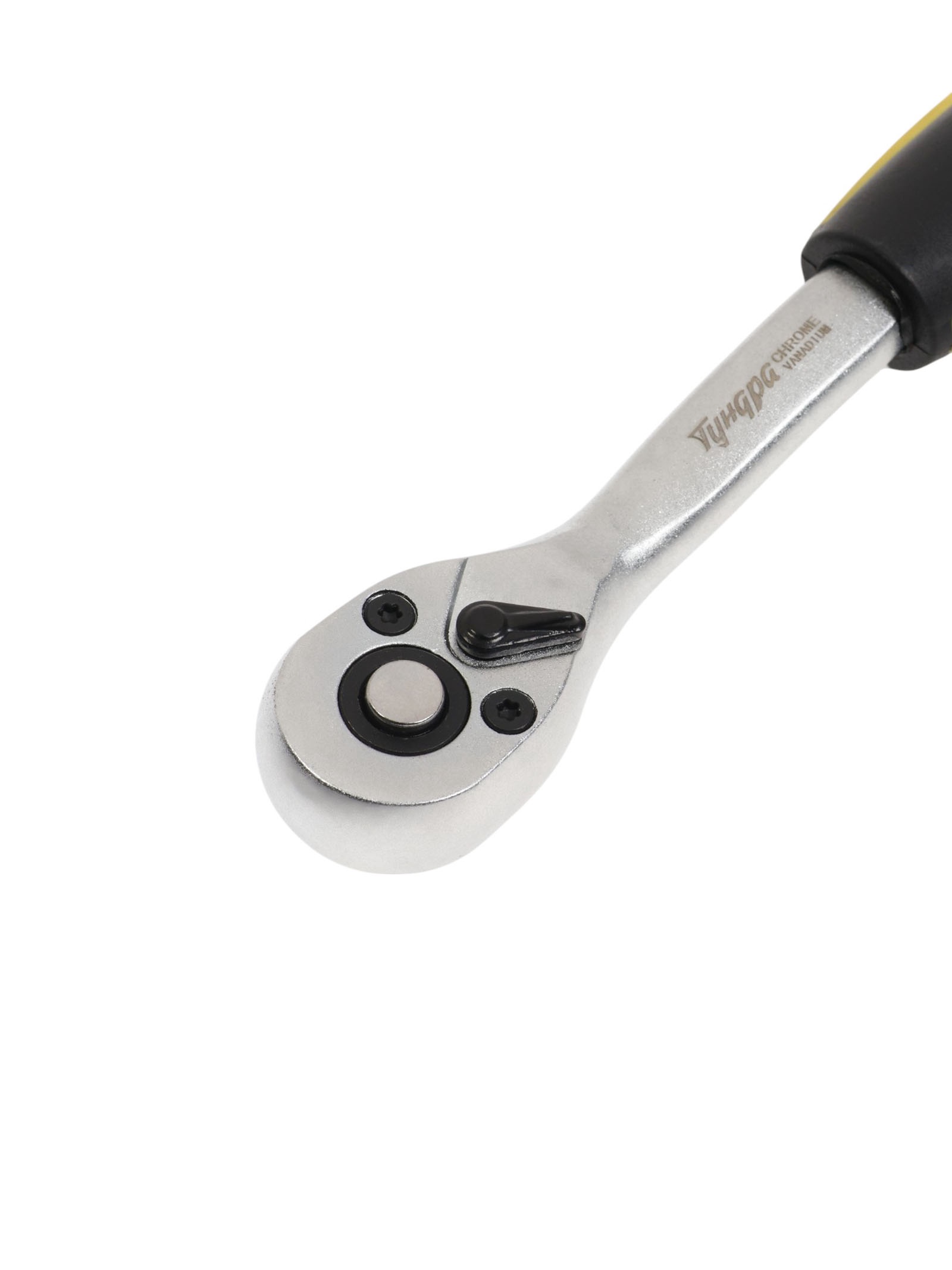 Вороток с трещоткой тундра, Crv, квадрат 1/4, 2к рукоятка, 72 зубца, 150 мм