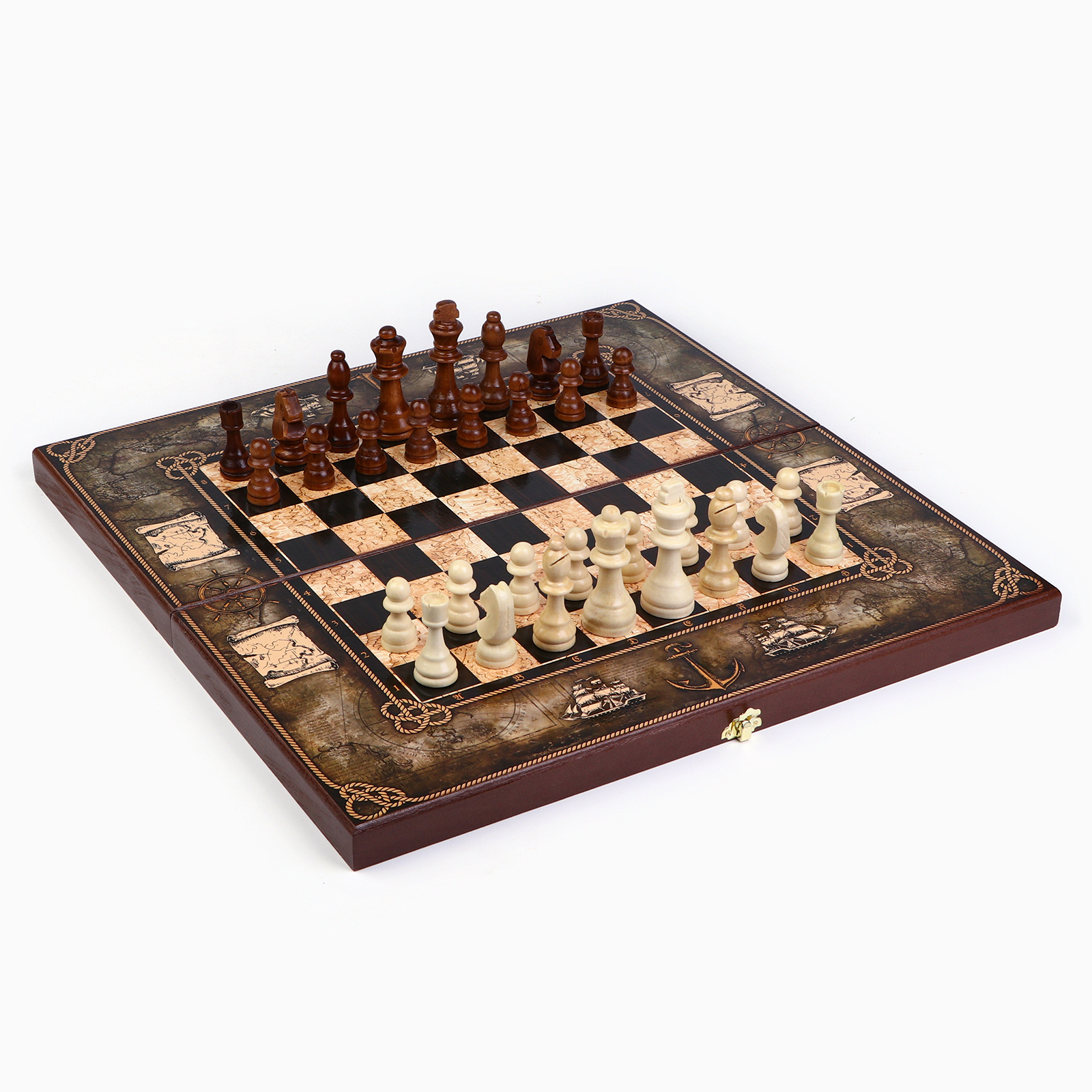 Шахматы деревянные большие "морская карта", 50 х 50 см , король H-9 см, пешка H-4.5 см