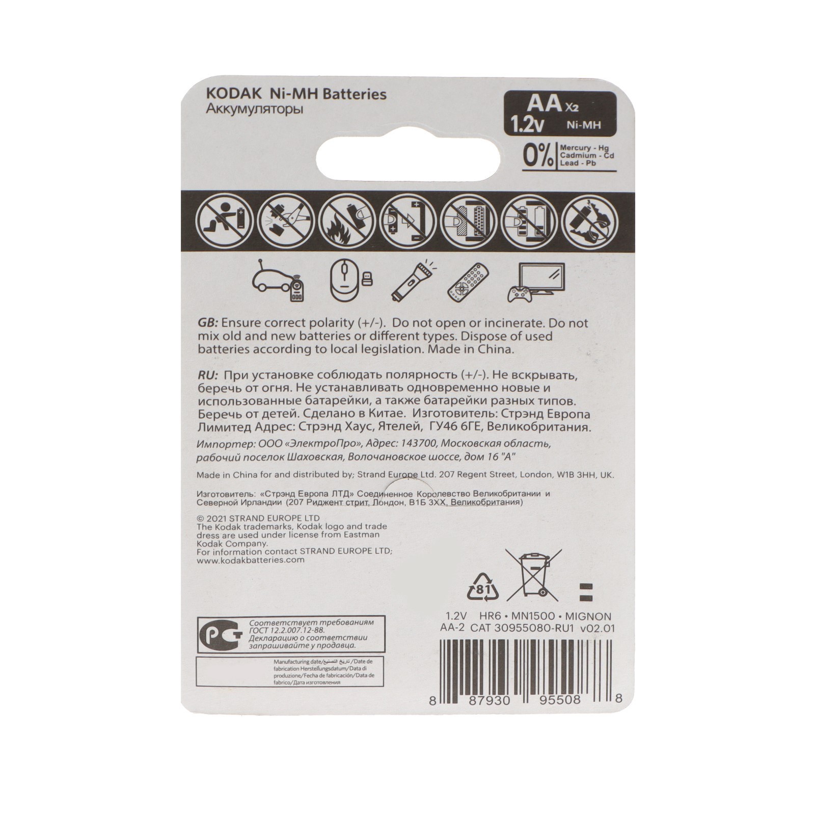 Аккумулятор Kodak, Ni-mh, Aa, Hr6-2bl, 1.2в, 2600 мач, блистер, 2 шт.