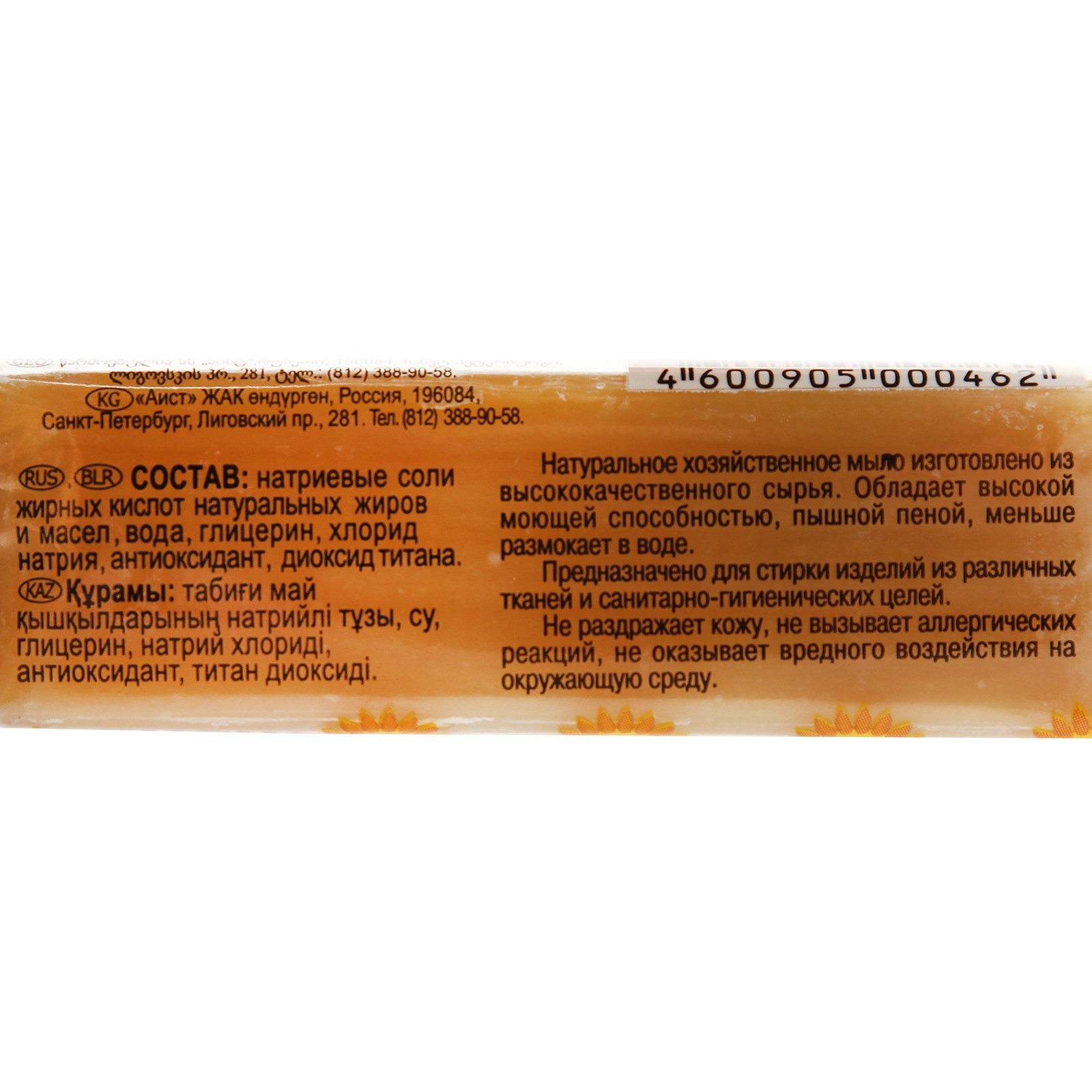 Хозяйственное мыло «классическое 72%», концентрированное, 150 г. Используйте хозяйственное классическое мыло для стирки изделий из различных тканей, а также для санитарно-гигиенических и промышленных целей. Также его можно применять для мытья посуды. Средство состоит из натриевых солей жирных кислот натуральных жиров и масел (кокосового, пальмового, подсолнечного) с добавлением глицерина, пластификаторов, антиоксидантов и смягчающих веществ. Особенности: образует мягкую пену; обладает высокой плотностью; не оказывает вредного воздействия на окружающую среду; смягчает кожу рук; не размокает в воде и не трескается при длительном хранении. Производится в соответствии с требованиями «Технического регламента на масложировую продукцию» (ТР ТС 024/2011). Цвет: Коричневый parts count: 0 Вес, г/Объём, мл: 90 Вес, г/Объём, мл: 150 Вес, г: 150 Аромат: Без аромата Тип: Твёрдое Вид мыла: Глицериновое : 0 Товар 18+: Нет  развернуть описание ▼