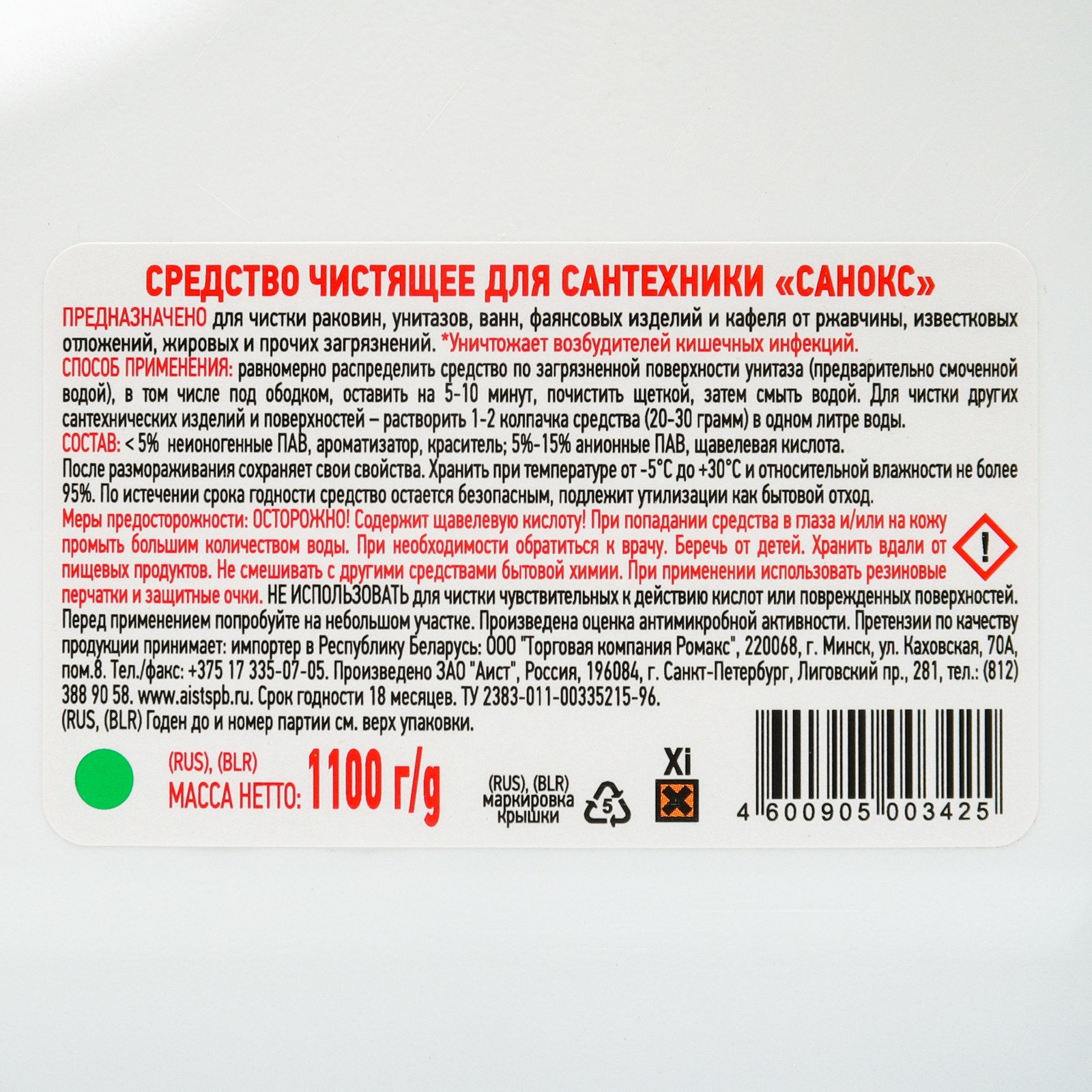 Гель для сантехники "санокс", против ржавчины, 1100 мл