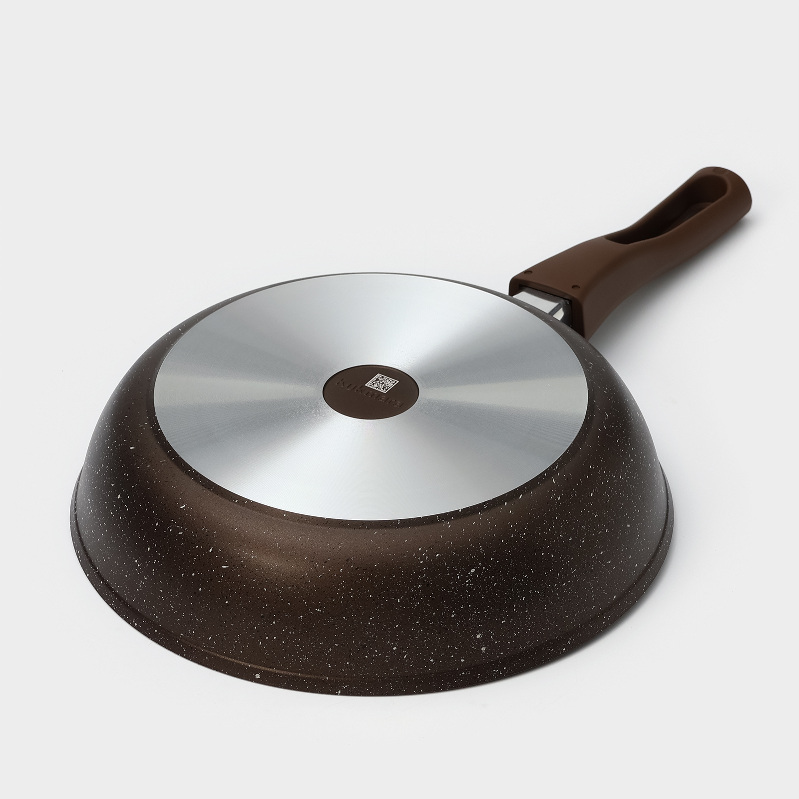 Сковорода, D=26 см, съёмная ручка, антипригарное покрытие, цвет кофейный мрамор