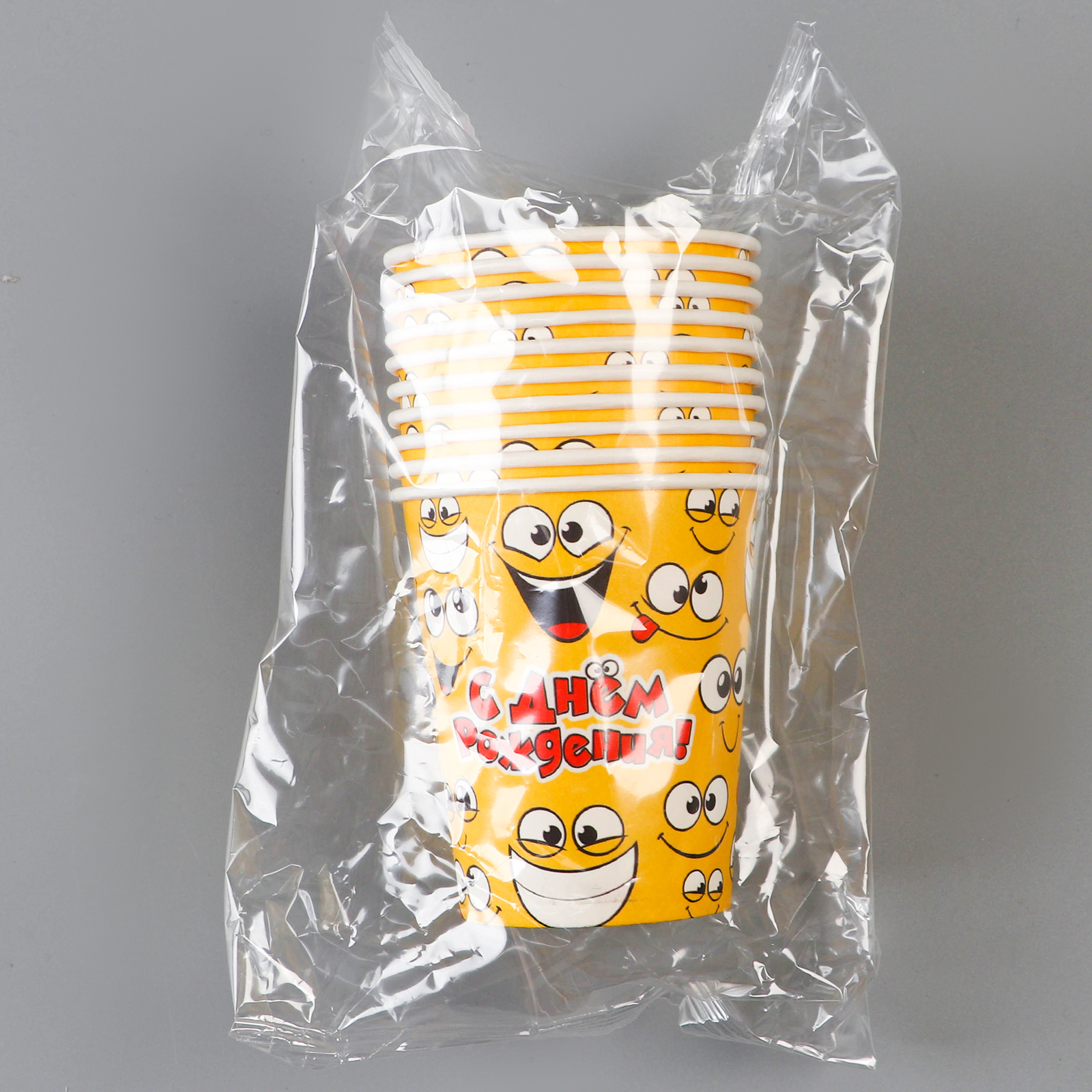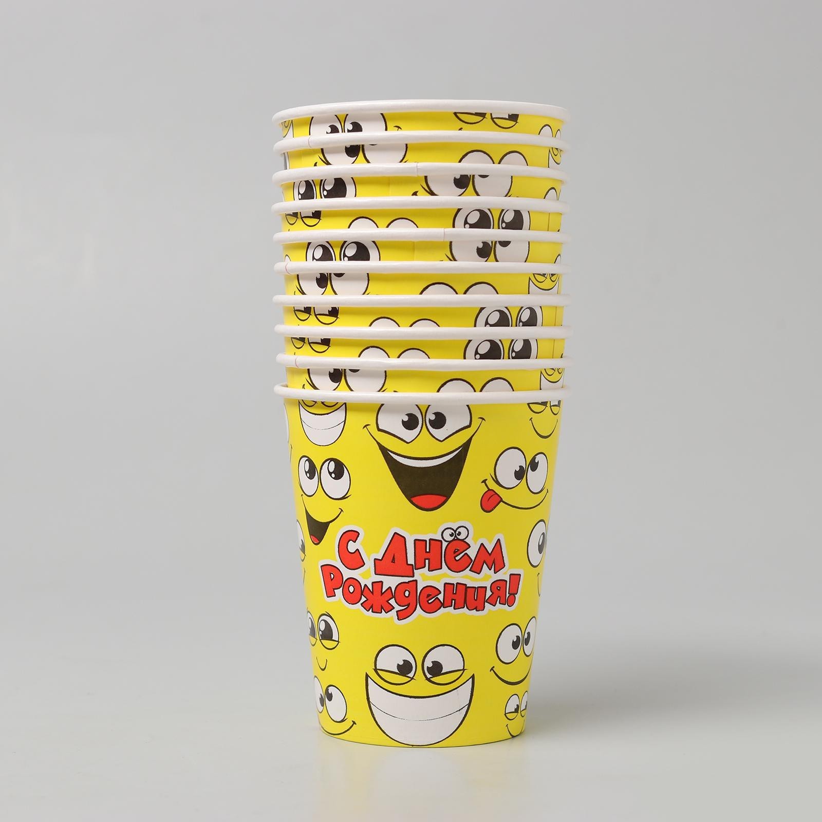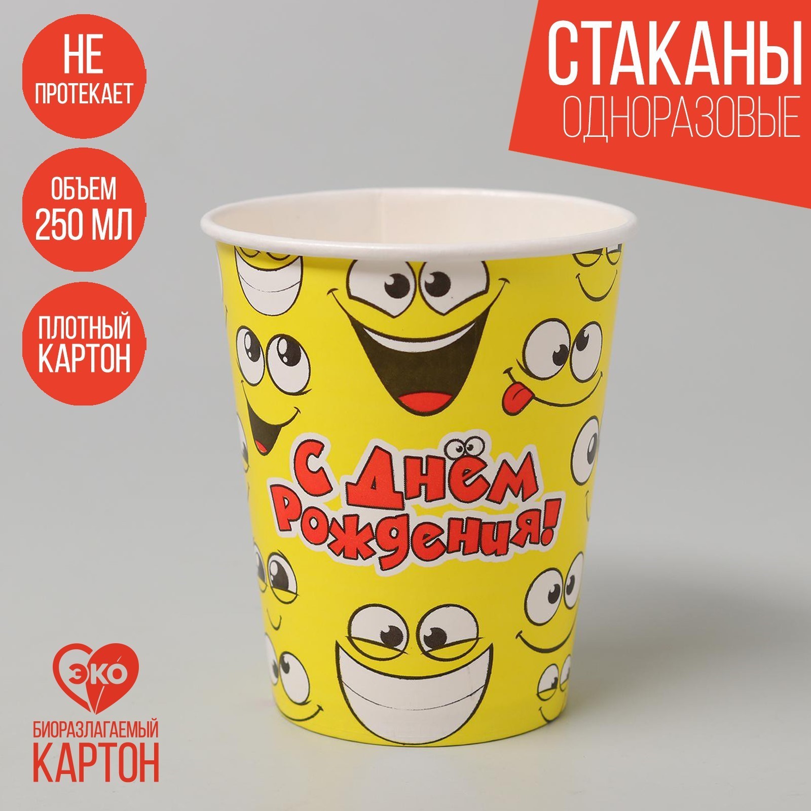 Стакан одноразовый бумажный "с днем рождения" смайлики (250 мл)