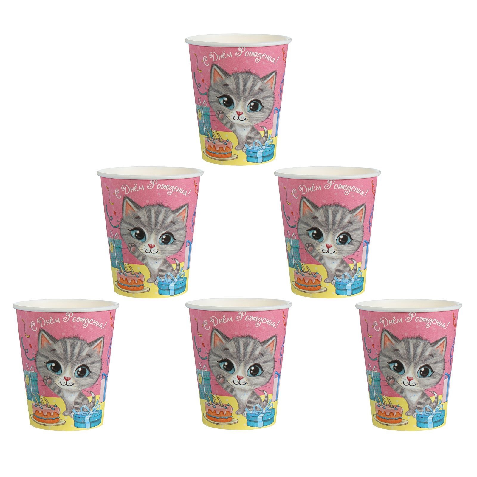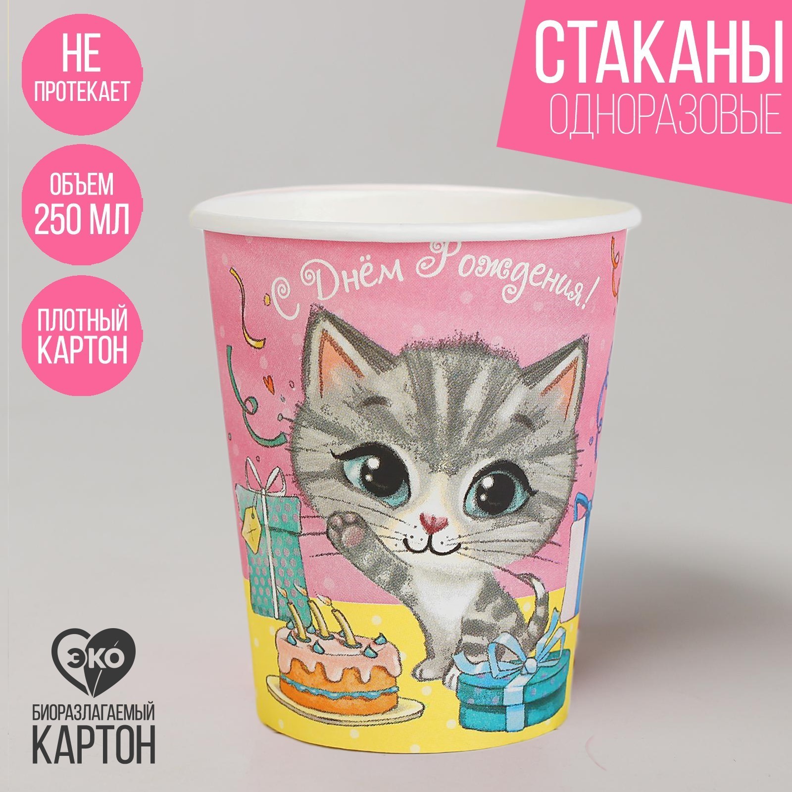 Стакан одноразовый бумажный "с днем рождения" кошечка (250 мл)
