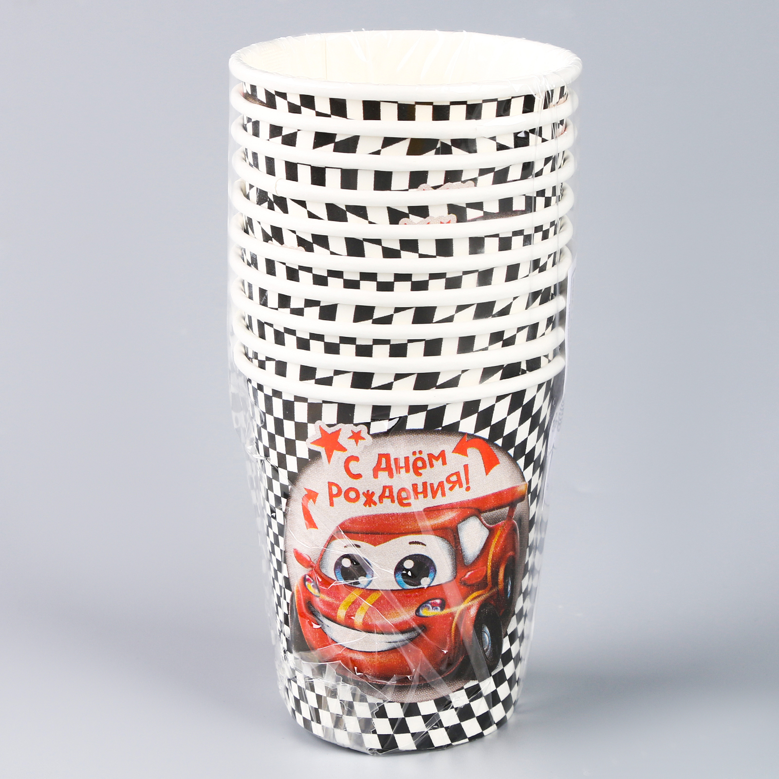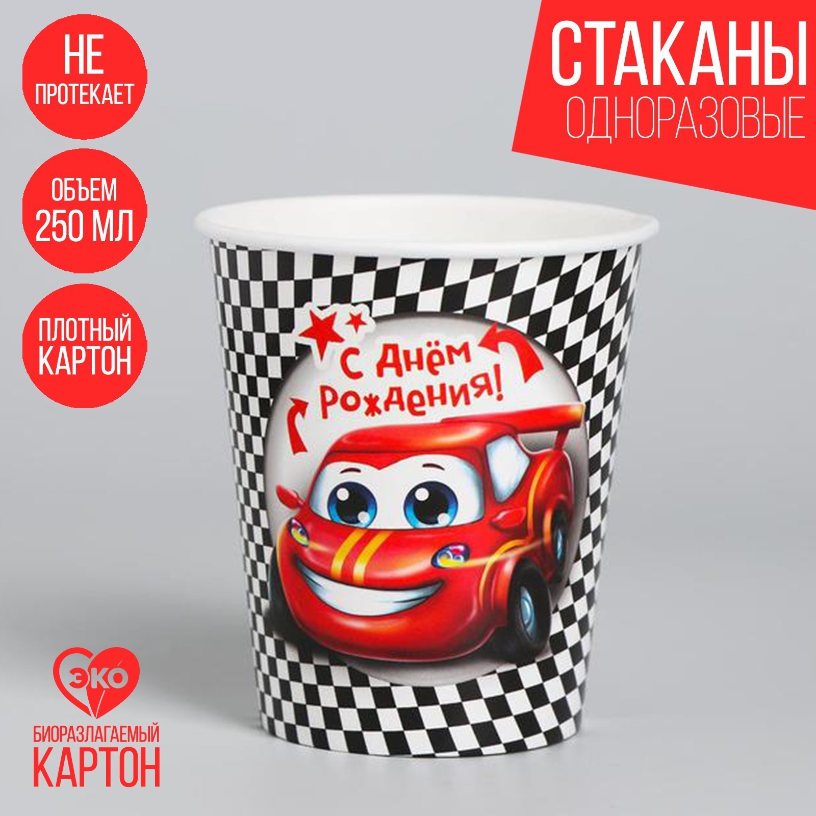 Стакан одноразовый бумажный "с днем рождения" тачка (250 мл)