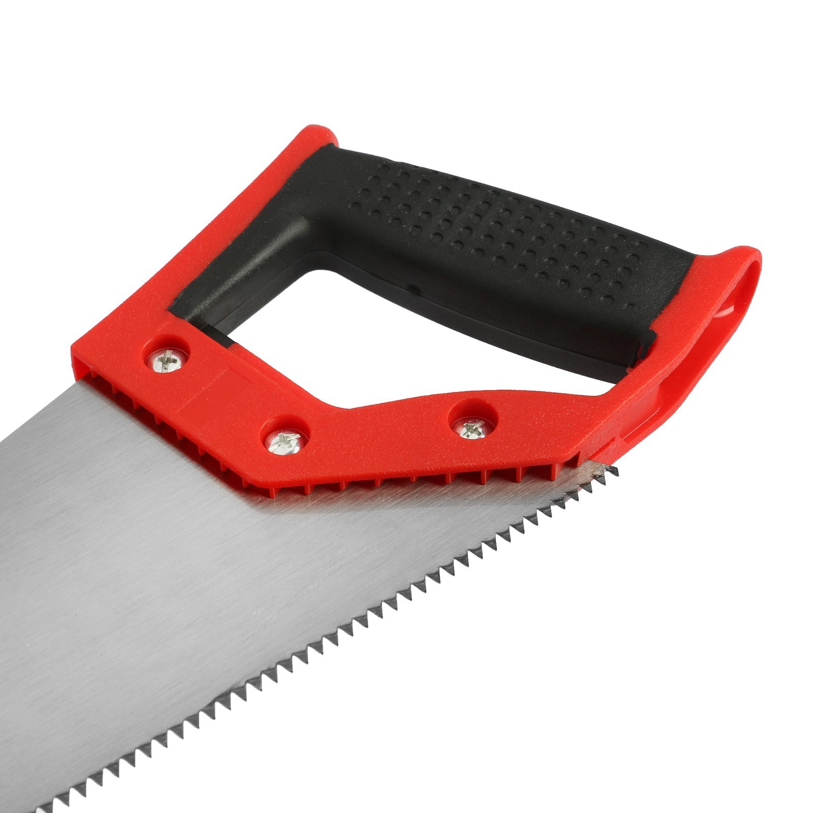 Ножовка по дереву лом, обрезиненная рукоятка, 7-8 tpi, 400 мм. Ножовка по дереву с обрезиненной ручкой станет вашим надежным помощником в деревообработке. Этот инструмент гармонично сочетает в себе функциональность и комфорт, что делает работу с ним не только эффективной, но и приятной. Ключевые характеристики: Эргономичная двухкомпонентная рукоятка обеспечивает надежный захват.Длина полотна 400 мм идеально подходит для разнообразных задач.Универсальное применение для работы с деревом.Пильное полотно с 7-8 TPI гарантирует точный и плавный рез.В чем преимуществаx Резка дерева с этим инструментом — это процесс, вобравший в себя элементы мастерства и простоты. Сравните это с плавной работой скрипача, где каждый штрих доведен до идеала. Обрезиненная ручка обеспечивает комфорт, а стальная часть выполняет рез с точностью. Долговечность и надежность Эта ножовка по дереву создана, чтобы служить вам долго — как старый товарищ, который привык идти бок о бок с вами в любых обстоятельствах и на любых участках работы. Длина, мм:400|Применение:Дерево|TPI:7 - 8|Материал рукоятки:Двухкомпонентная|Страна:Китай  развернуть описание ▼