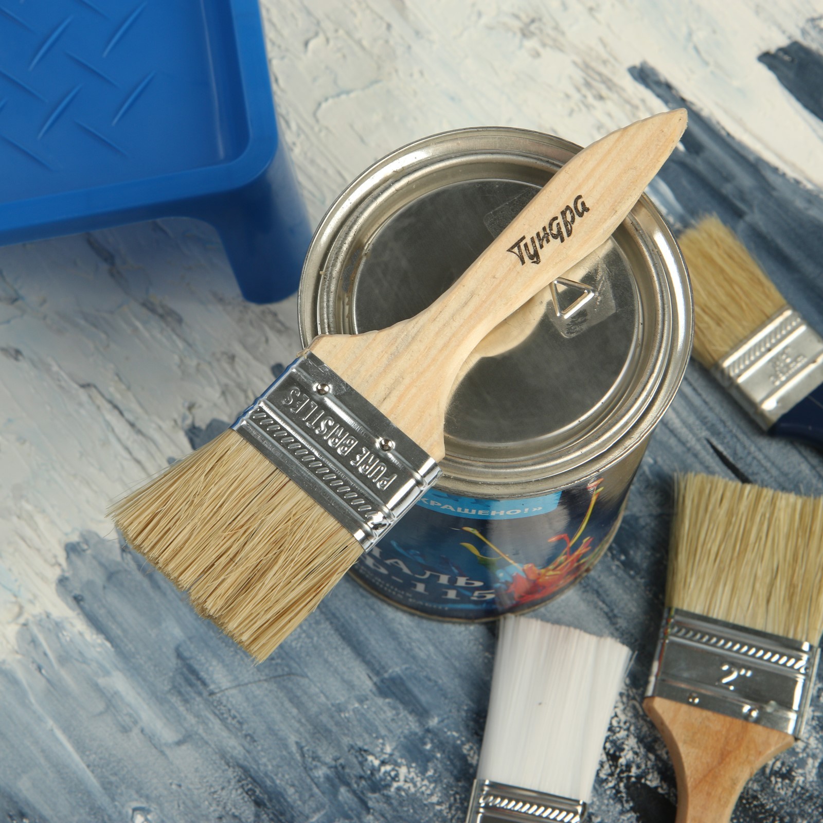Кисть плоская тундра, смешанная щетина, деревянная рукоятка, 2, 50 мм