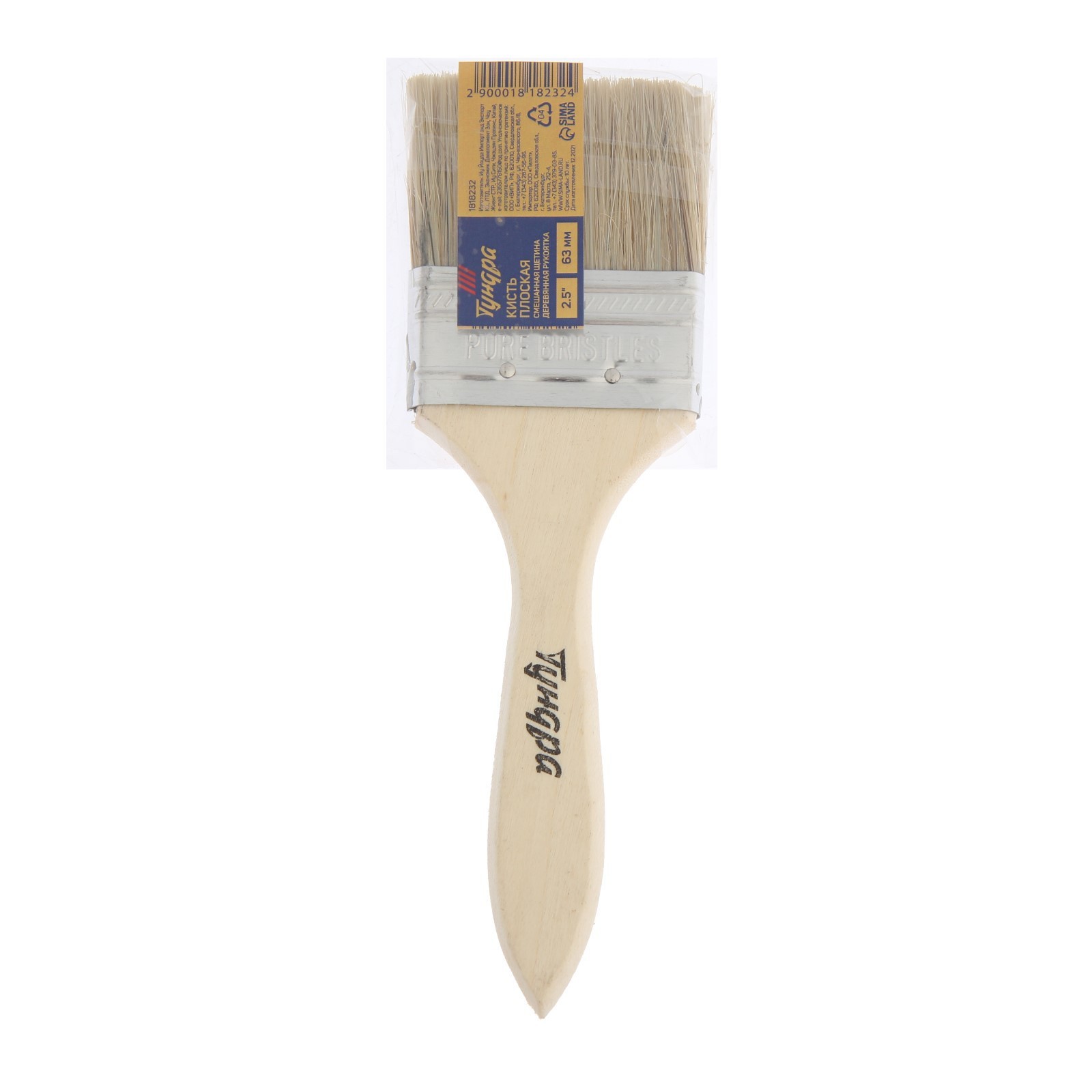Кисть плоская тундра, смешанная щетина, деревянная рукоятка, 2.5, 63 мм