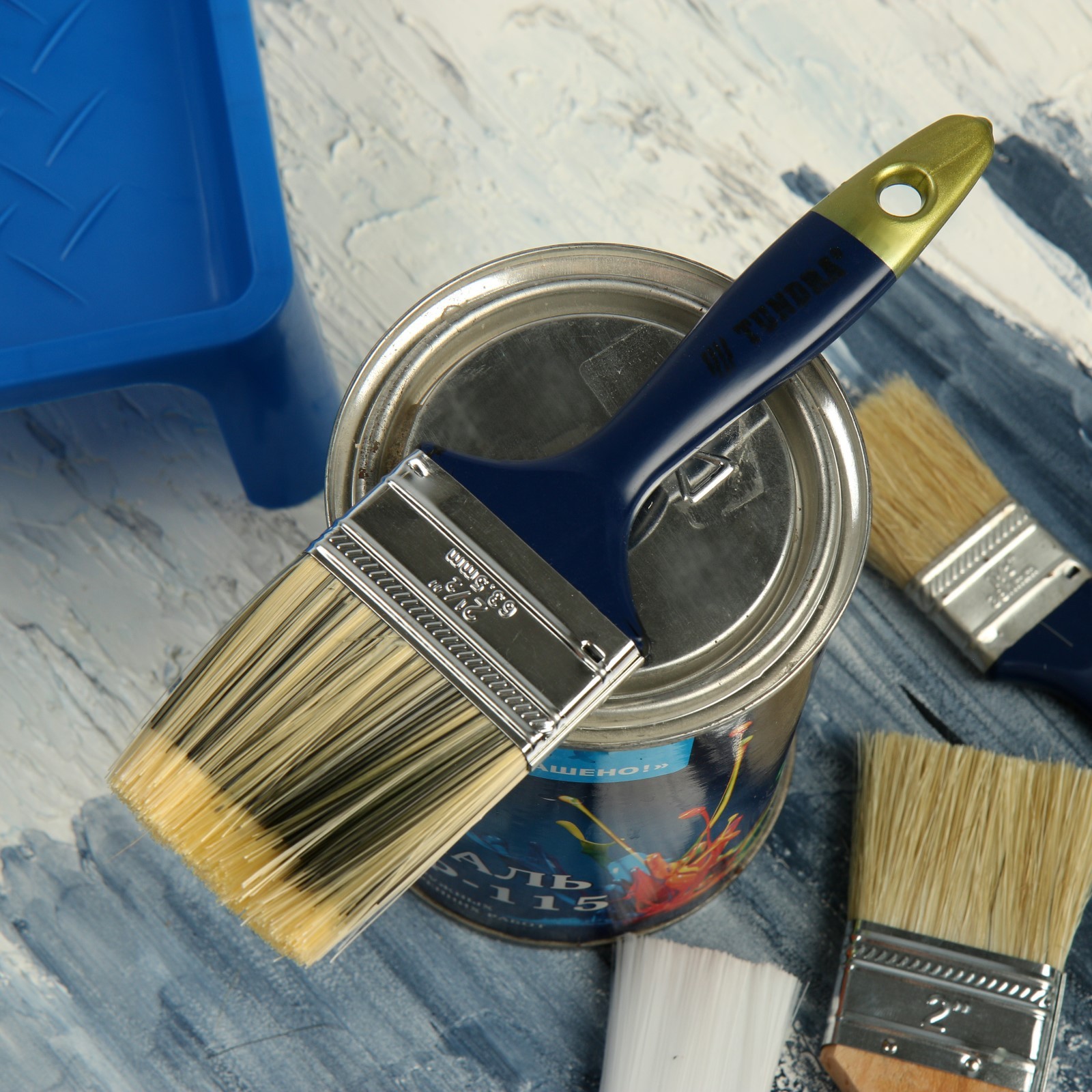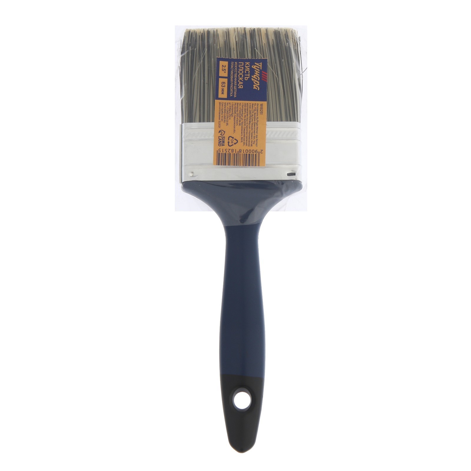 Кисть плоская тундра, искусственная щетина, пластиковая рукоятка, 2.5, 63 мм
