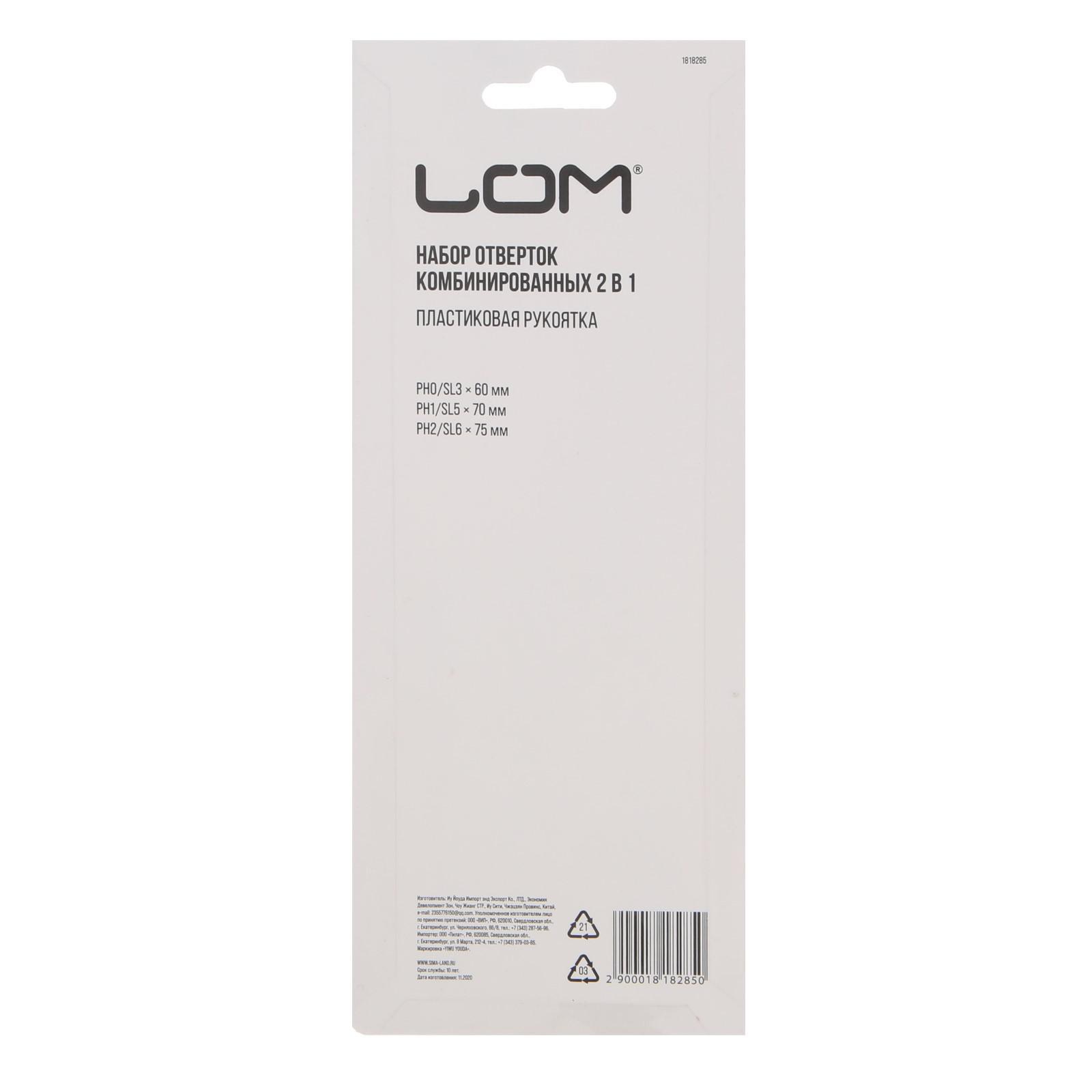 Набор отверток лом, 2 в 1, Ph0/sl3 60 мм, Ph1/sl5 70 мм, Ph2/sl6 75 мм, 3 шт.