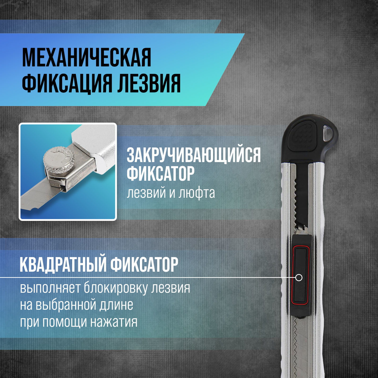 Нож универсальный тундра, металлический корпус, доп. винтовой фиксатор, 5 лезвий, 9 мм