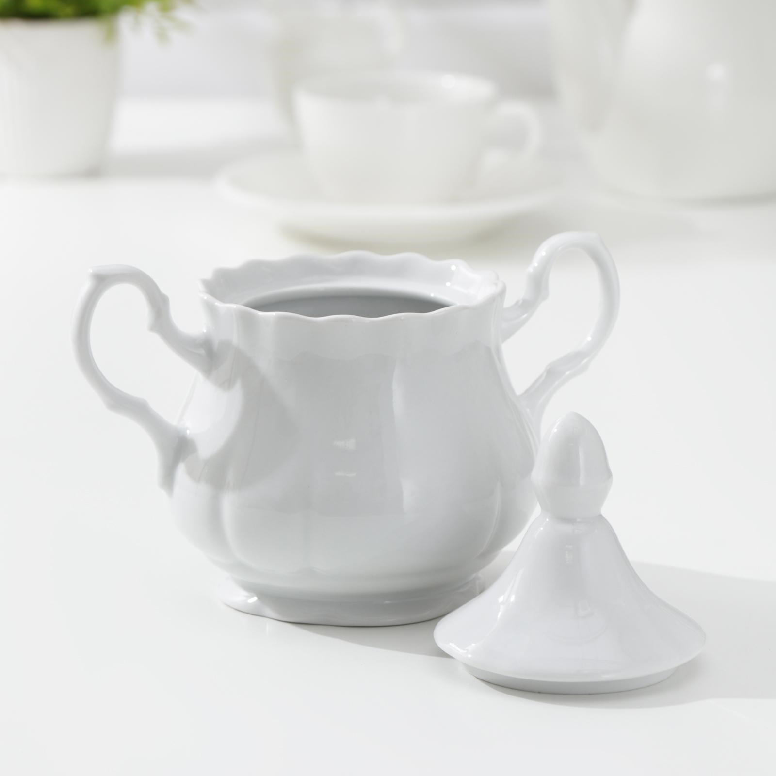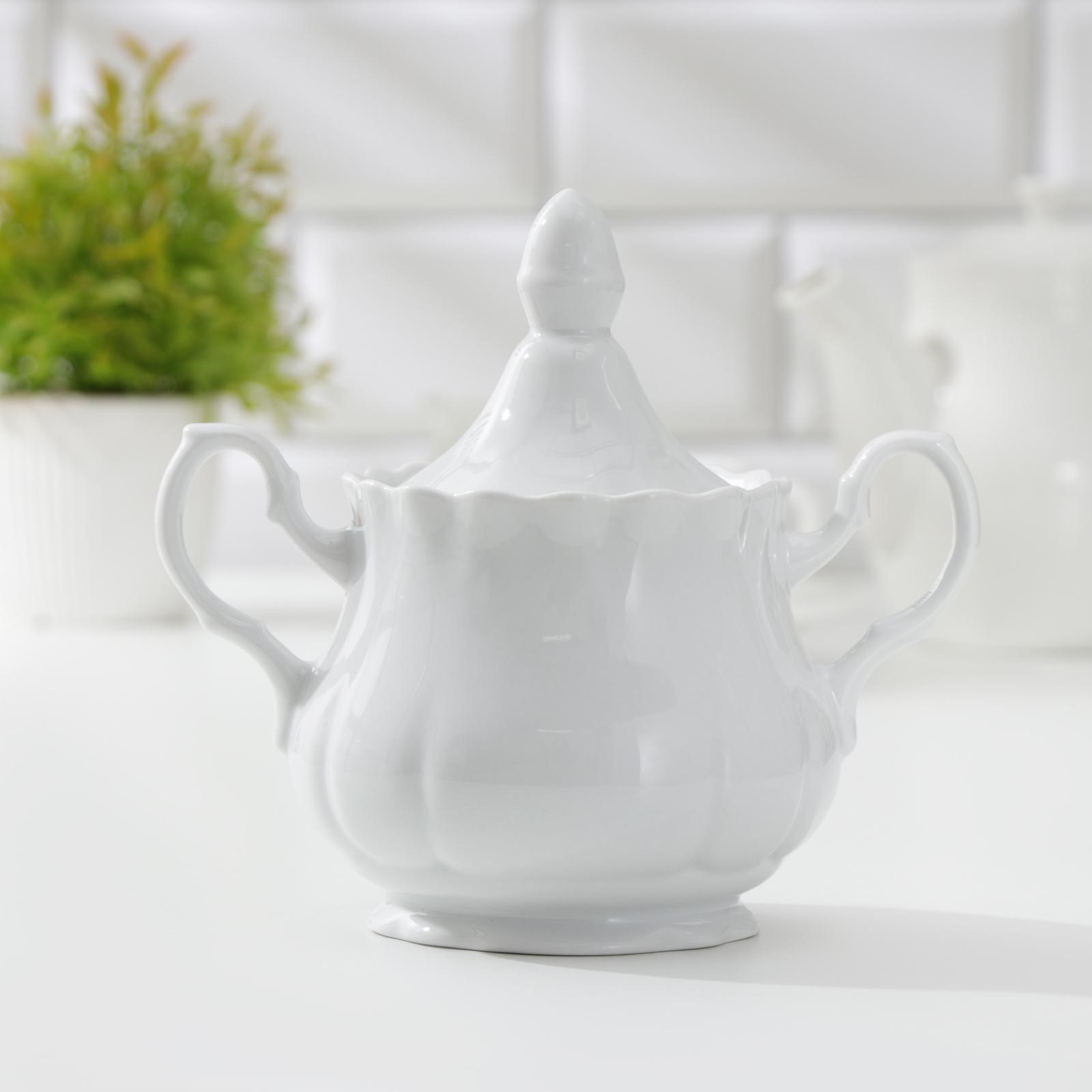 Сахарница фарфоровая «романс», 550 мл, с крышкой, цвет белый