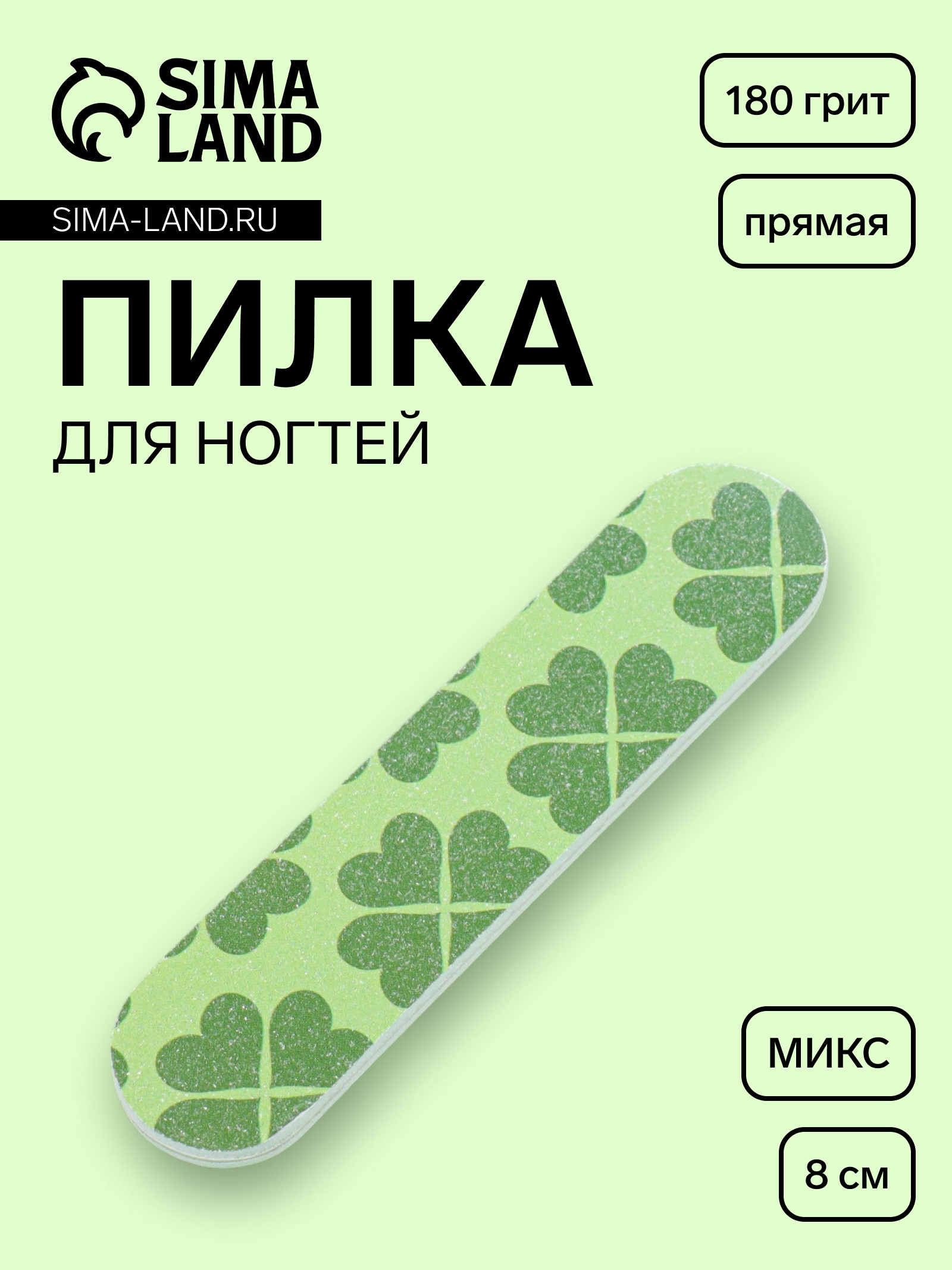 Пилка - мини для ногтей, прямая, 180/180 грит, 8 см, фасовка 20 шт., микс