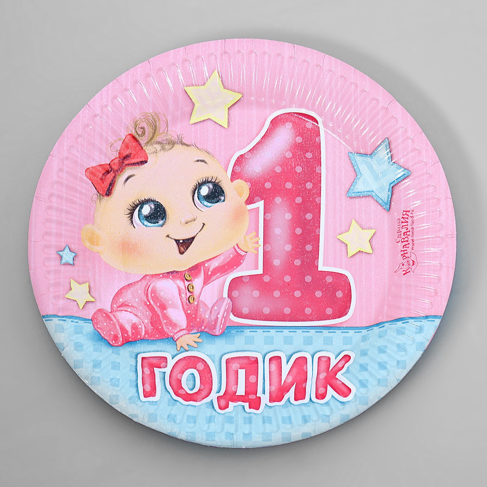 Тарелка одноразовая бумажная " 1 годик" девочка (18 см)