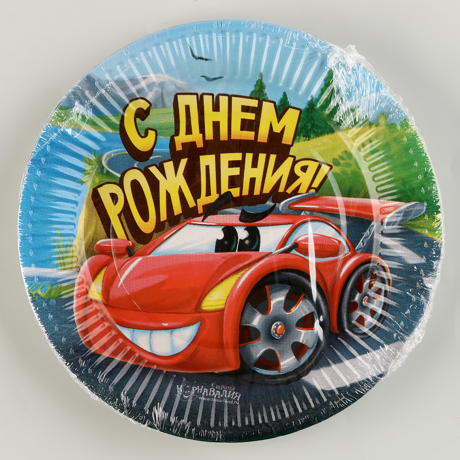 Тарелка одноразовая бумажная " с днем рождения" машинка (18 см)