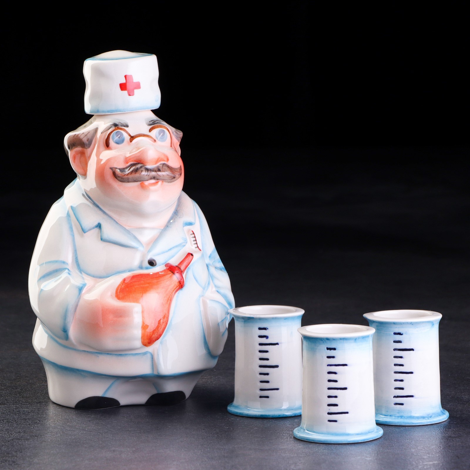 Набор фарфоровый: штоф «доктор», 0.5 л + 3 рюмки