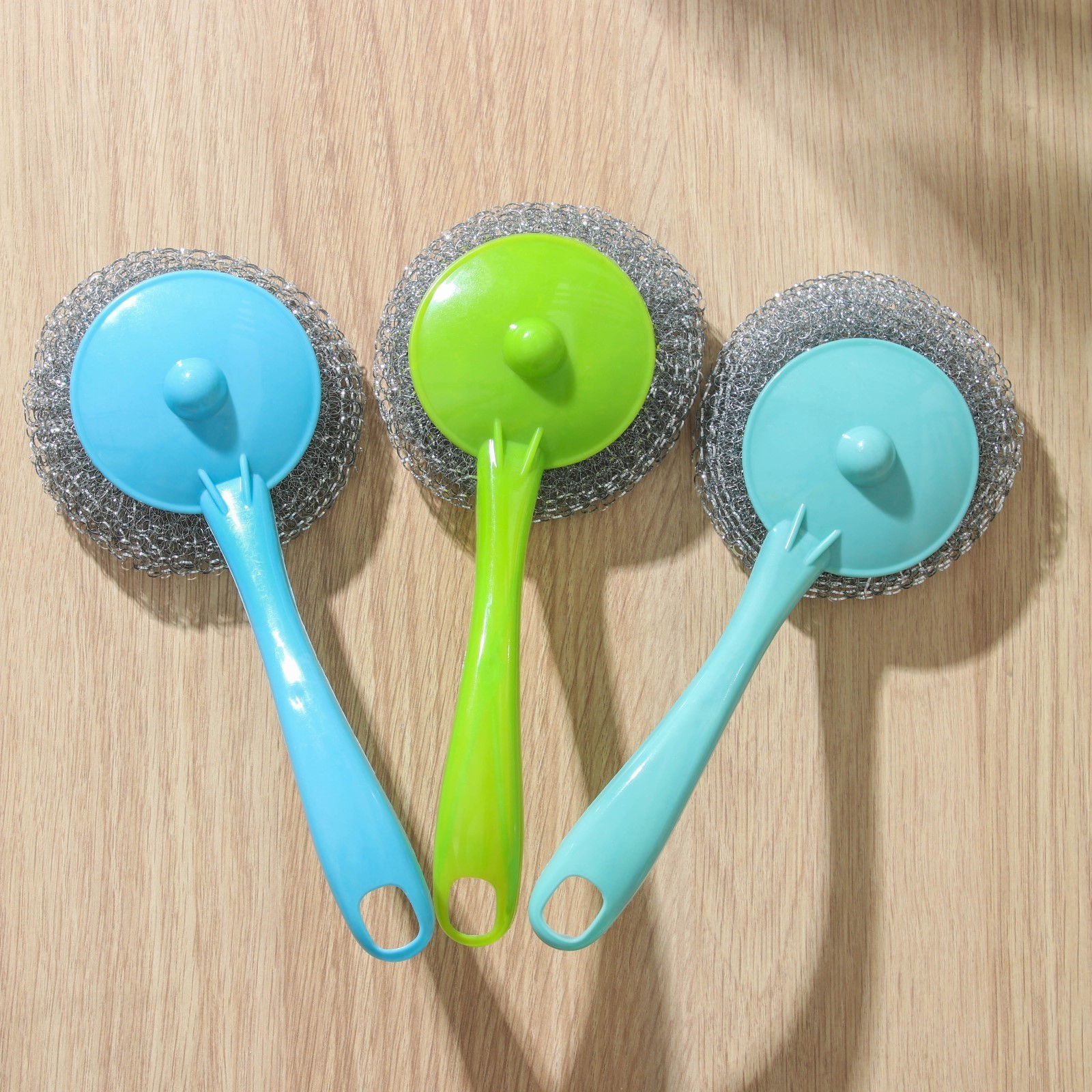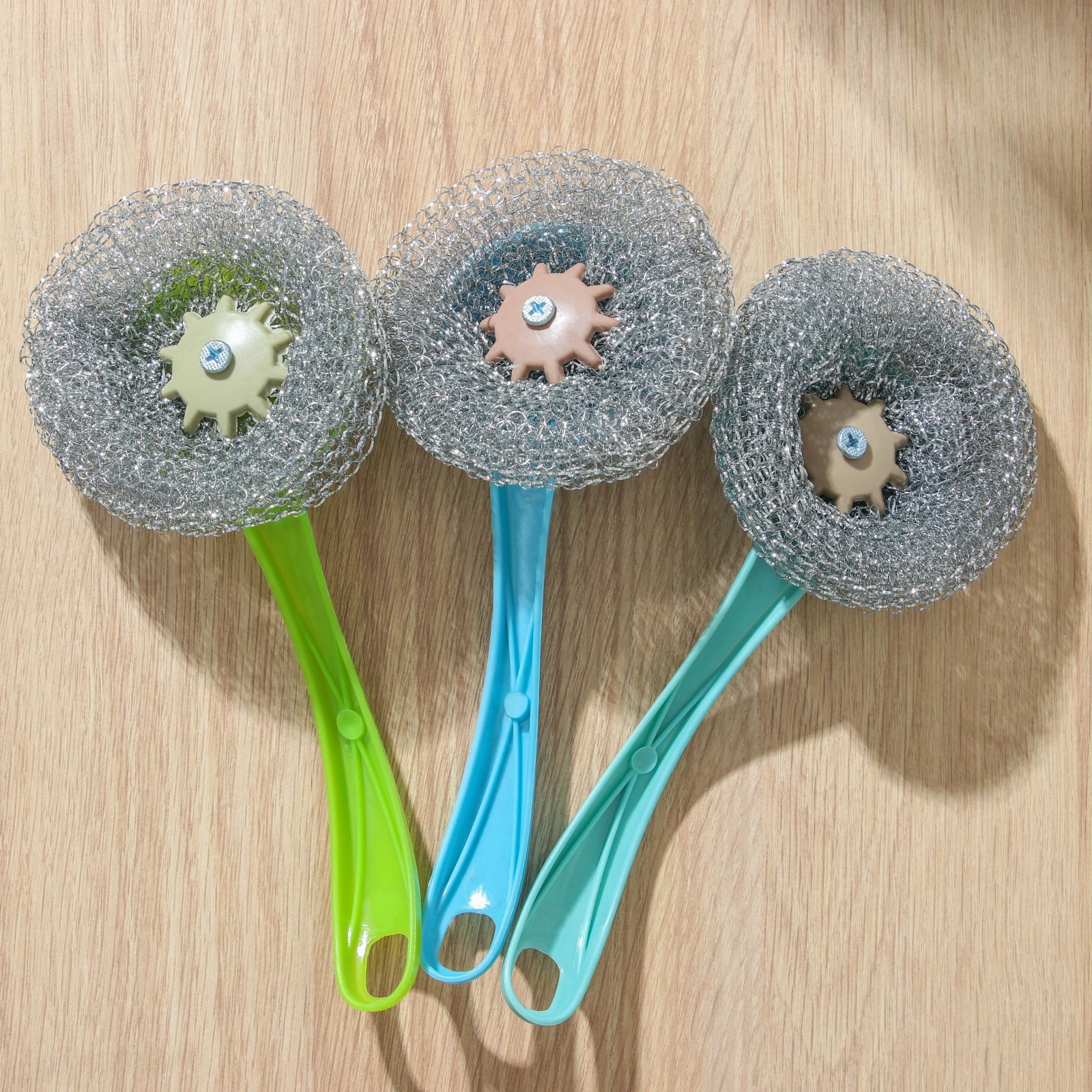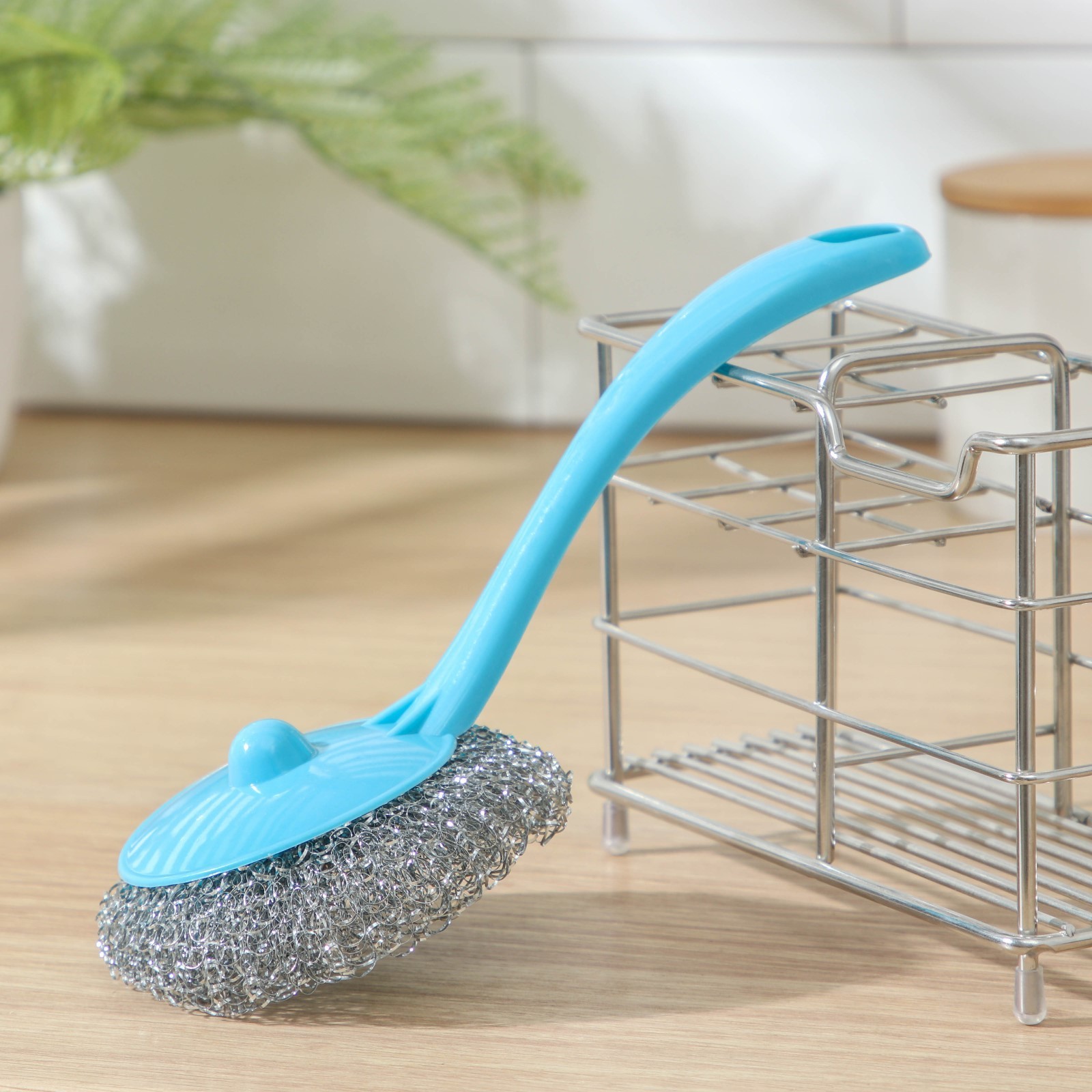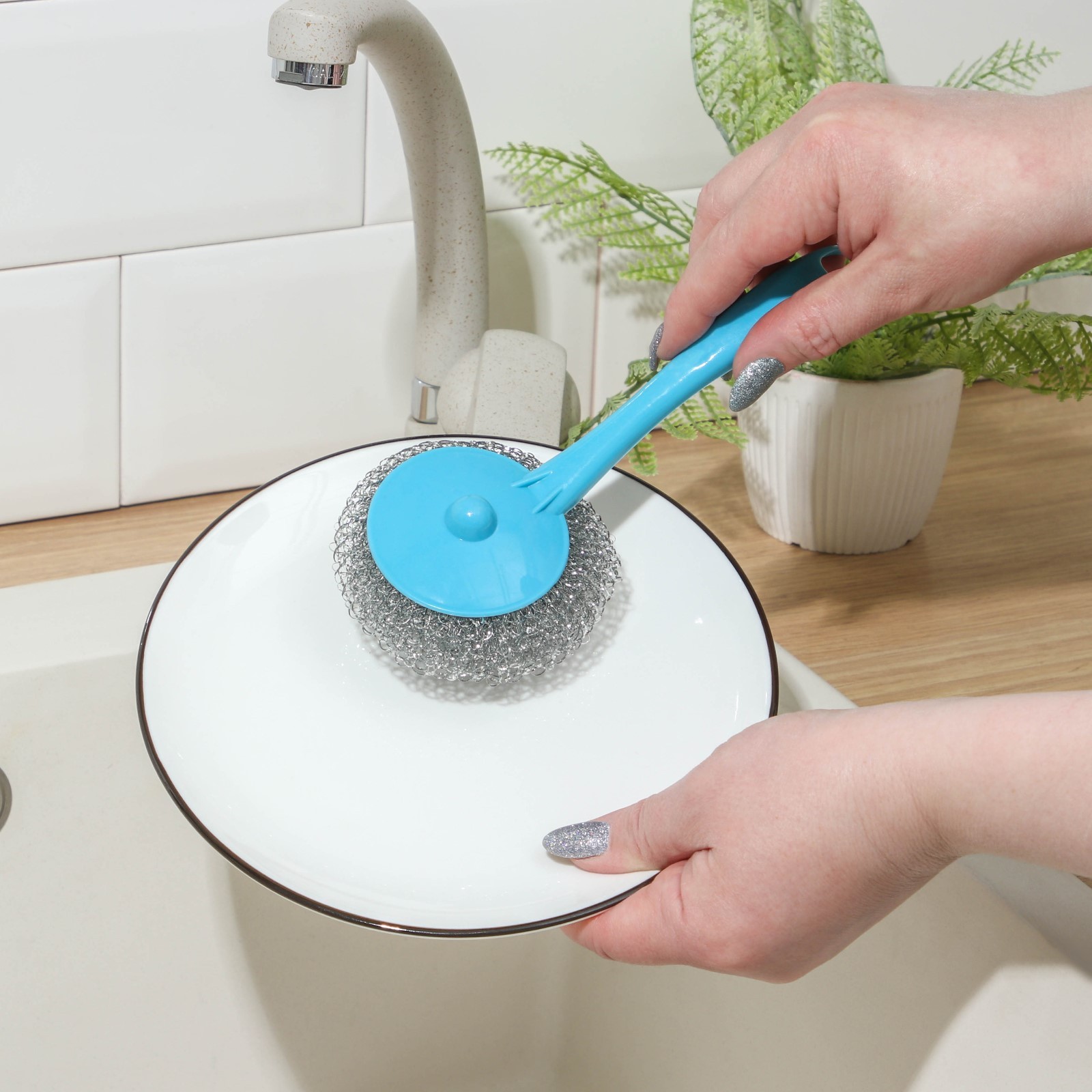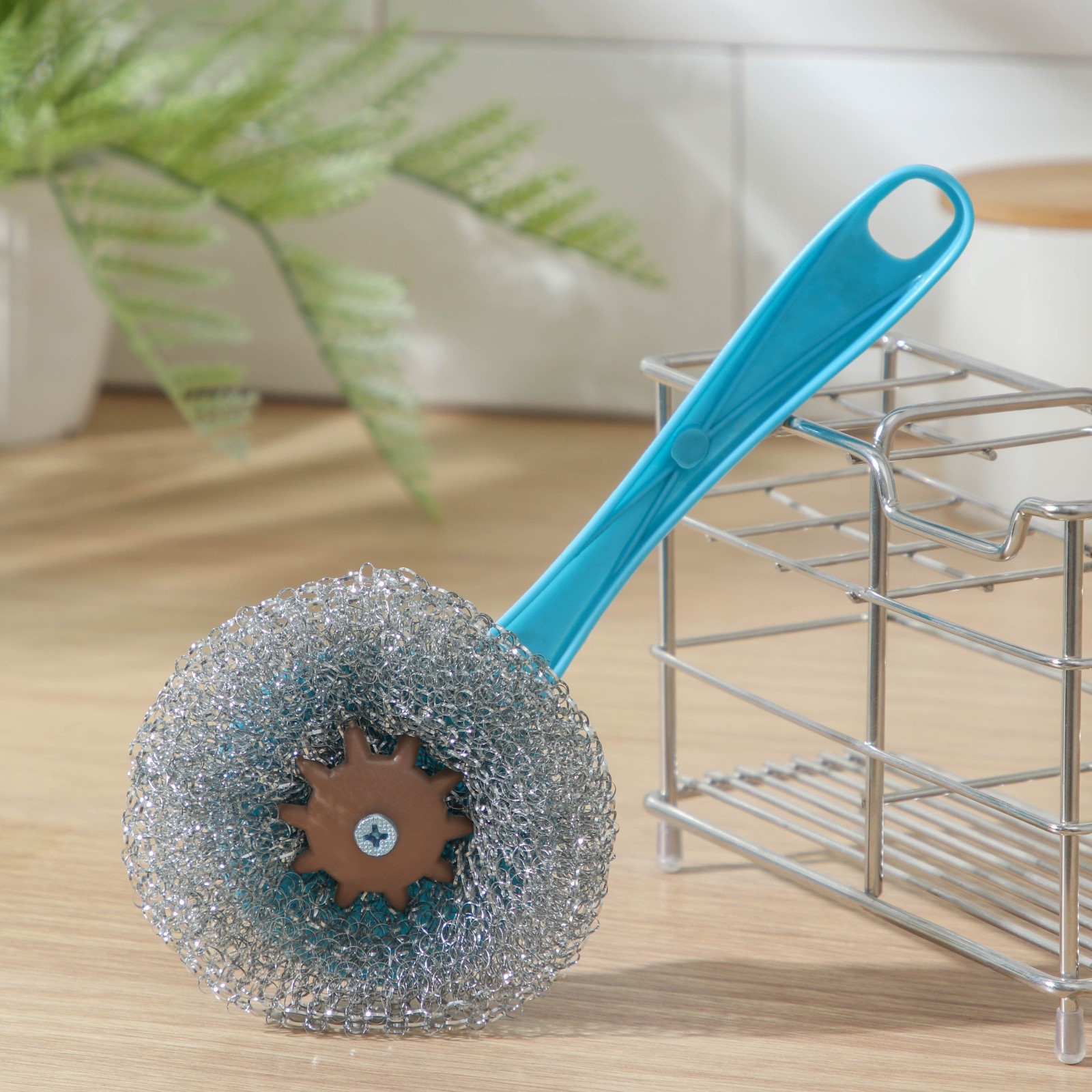 Губка для мытья посуды с ручкой доляна «бублик», металл, 15 гр, цвет микс