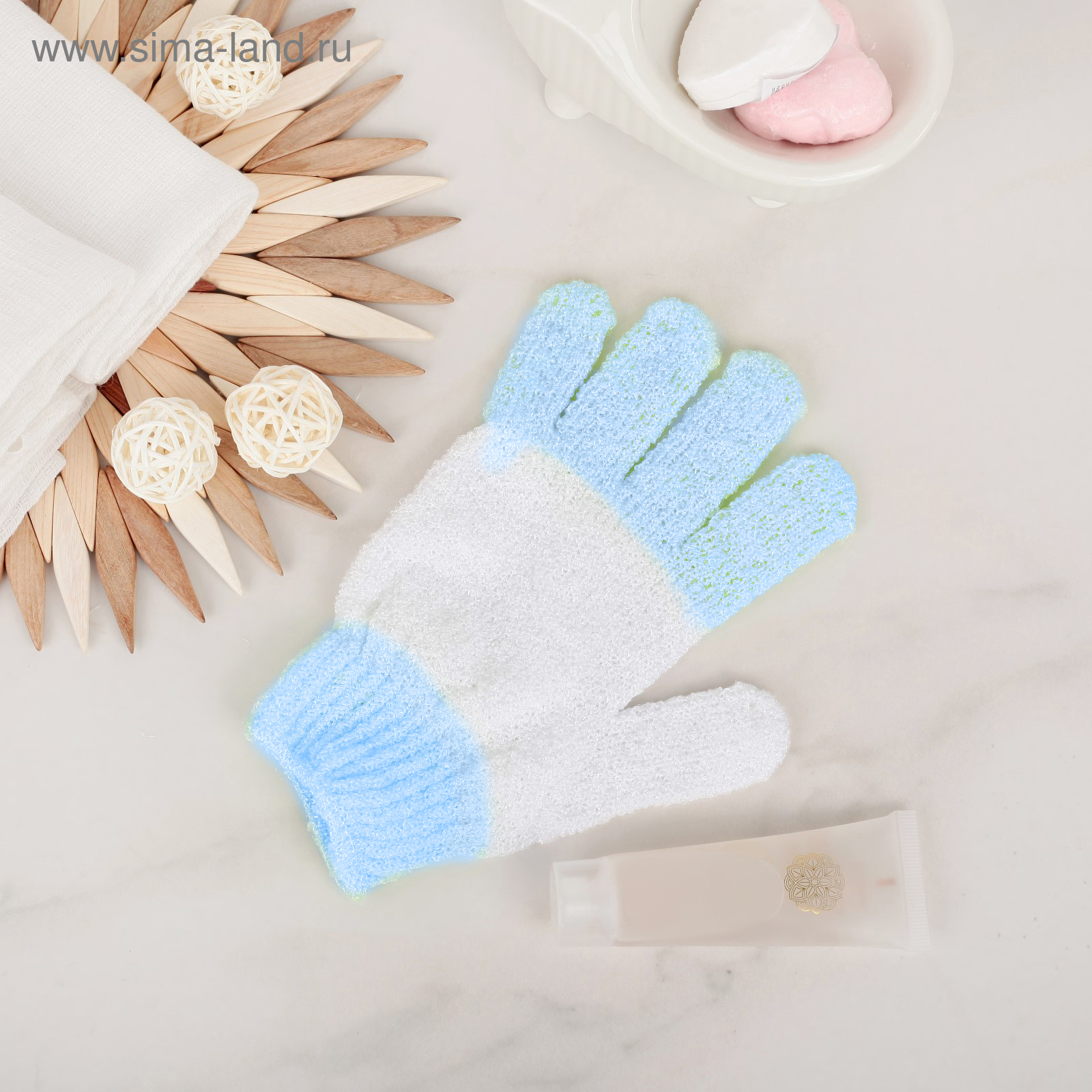 Мочалка-перчатка массажная доляна, 14x18 см, полосатая, цвет микс