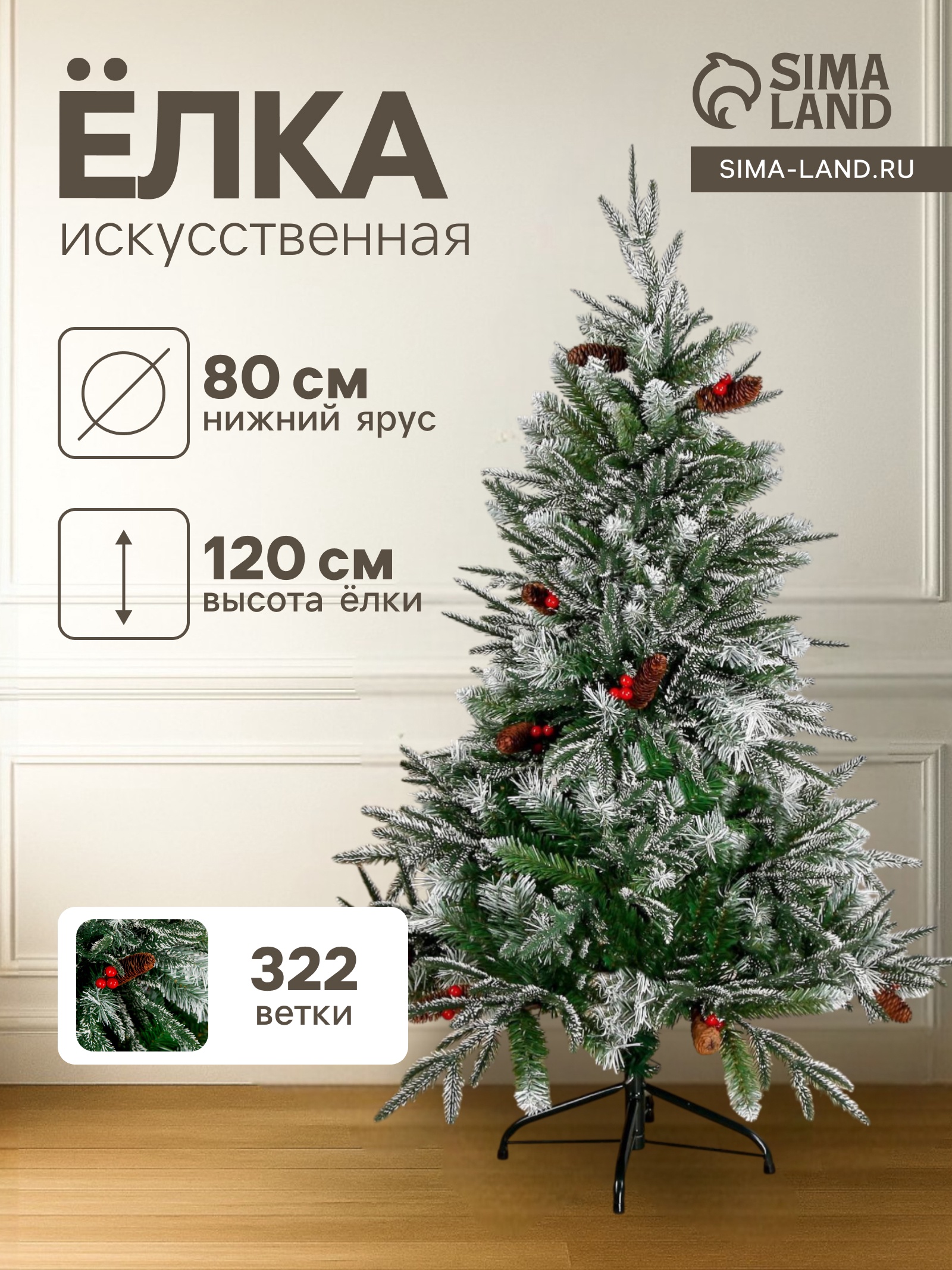 Искусственная ёлка «зимнее волшебство. виктория», 120 см, 322 пвх ветки