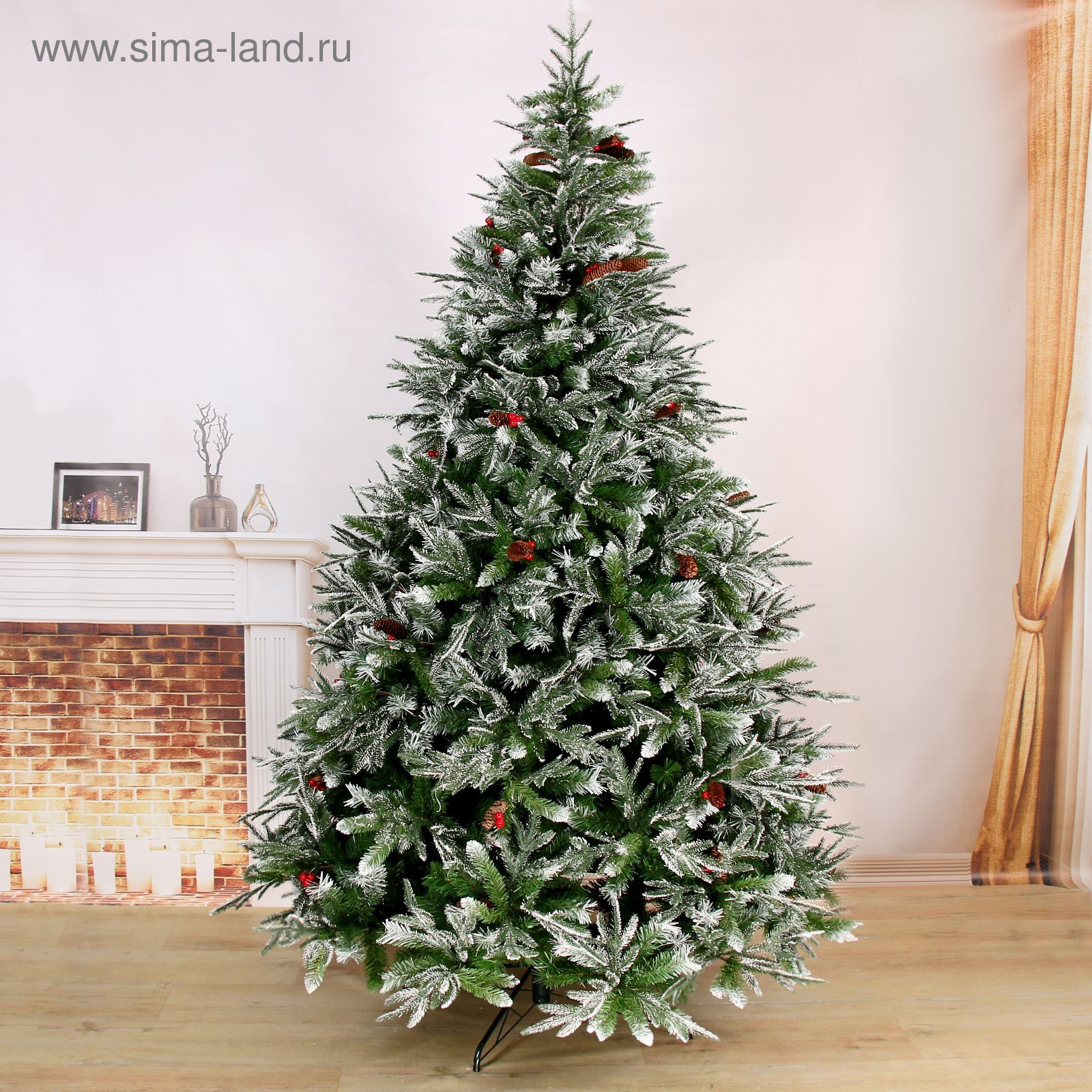 Искусственная ёлка с шишками, ягодами «зимнее волшебство. виктория», 210 см, 1356 смешанные ветки на крючках