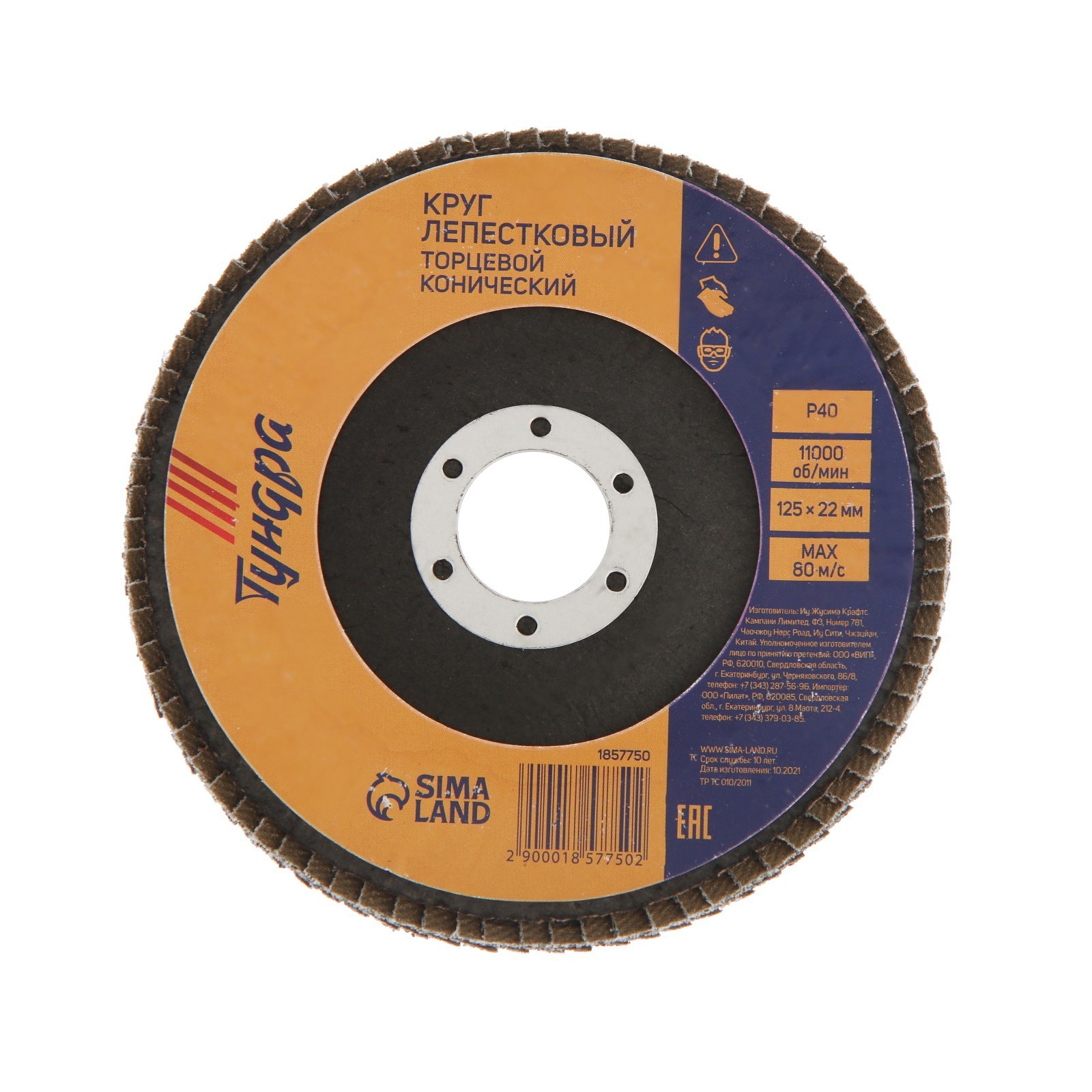 Круг лепестковый торцевой конический тундра, 125 22 мм, р40