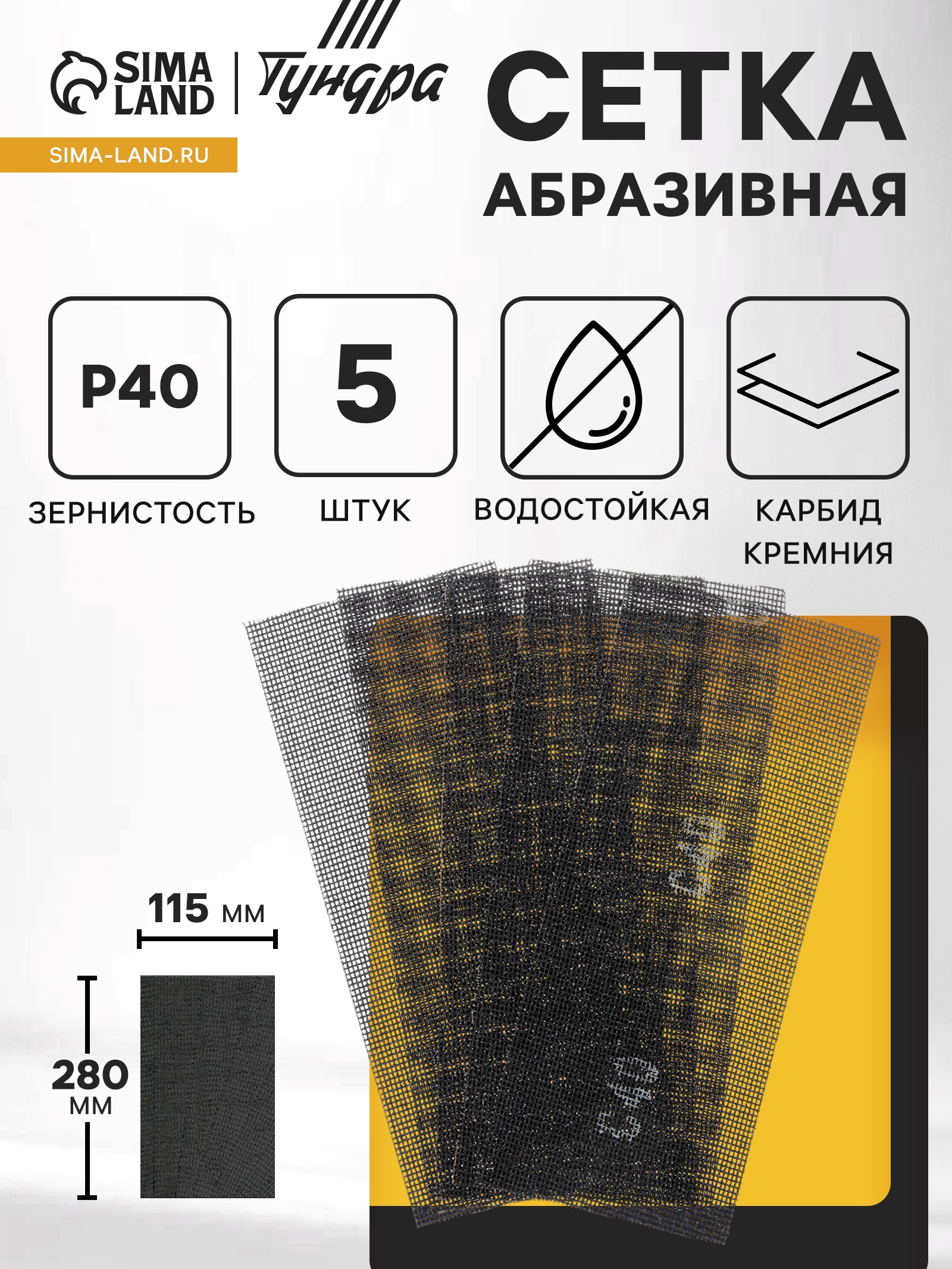 Сетка абразивная тундра профи, водостойкая, карбид кремния, 115 280 мм, р40, 5 шт.