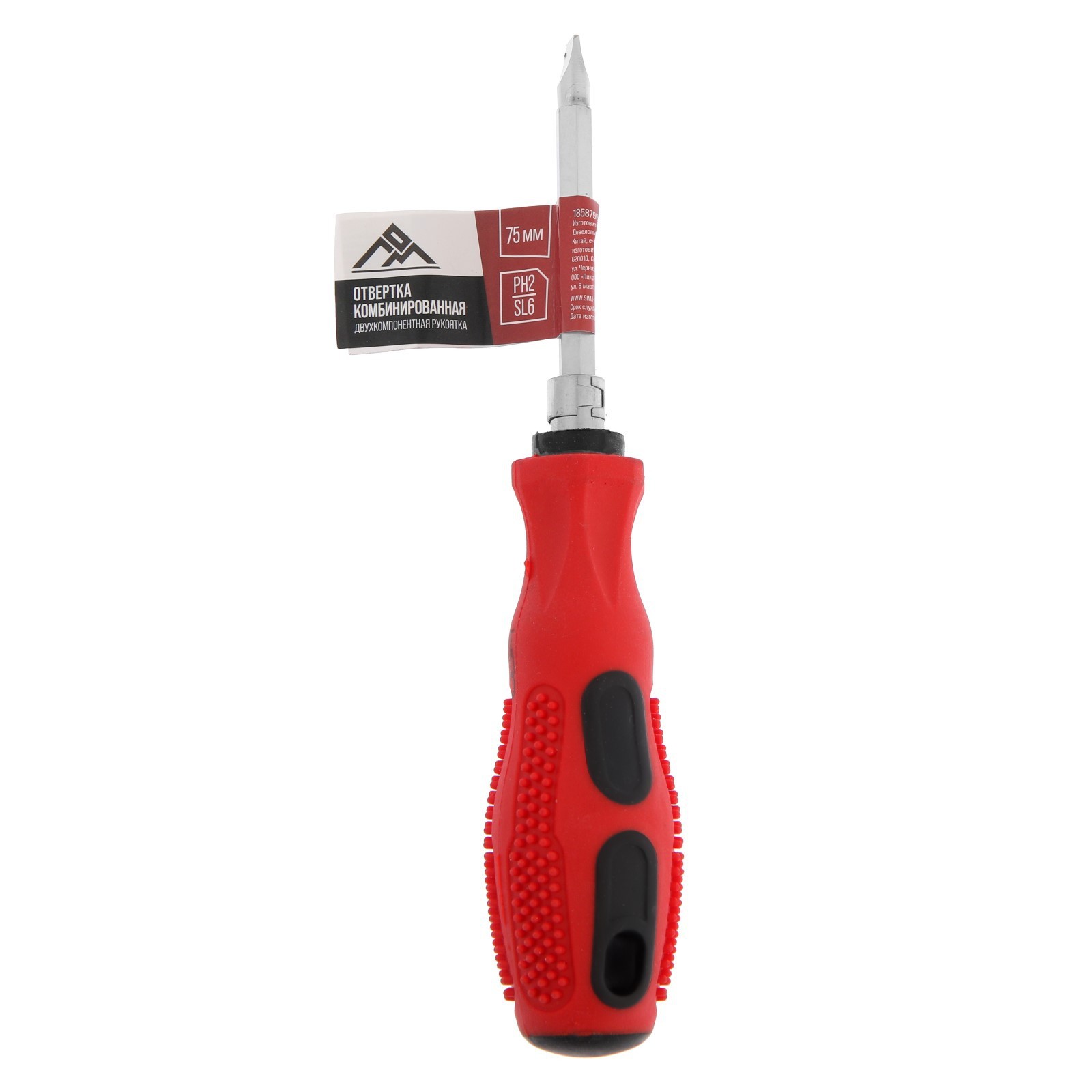 Отвертка комбинированная лом, 2 в 1, двухкомпонентная рукоятка, Ph2/sl6 75 мм