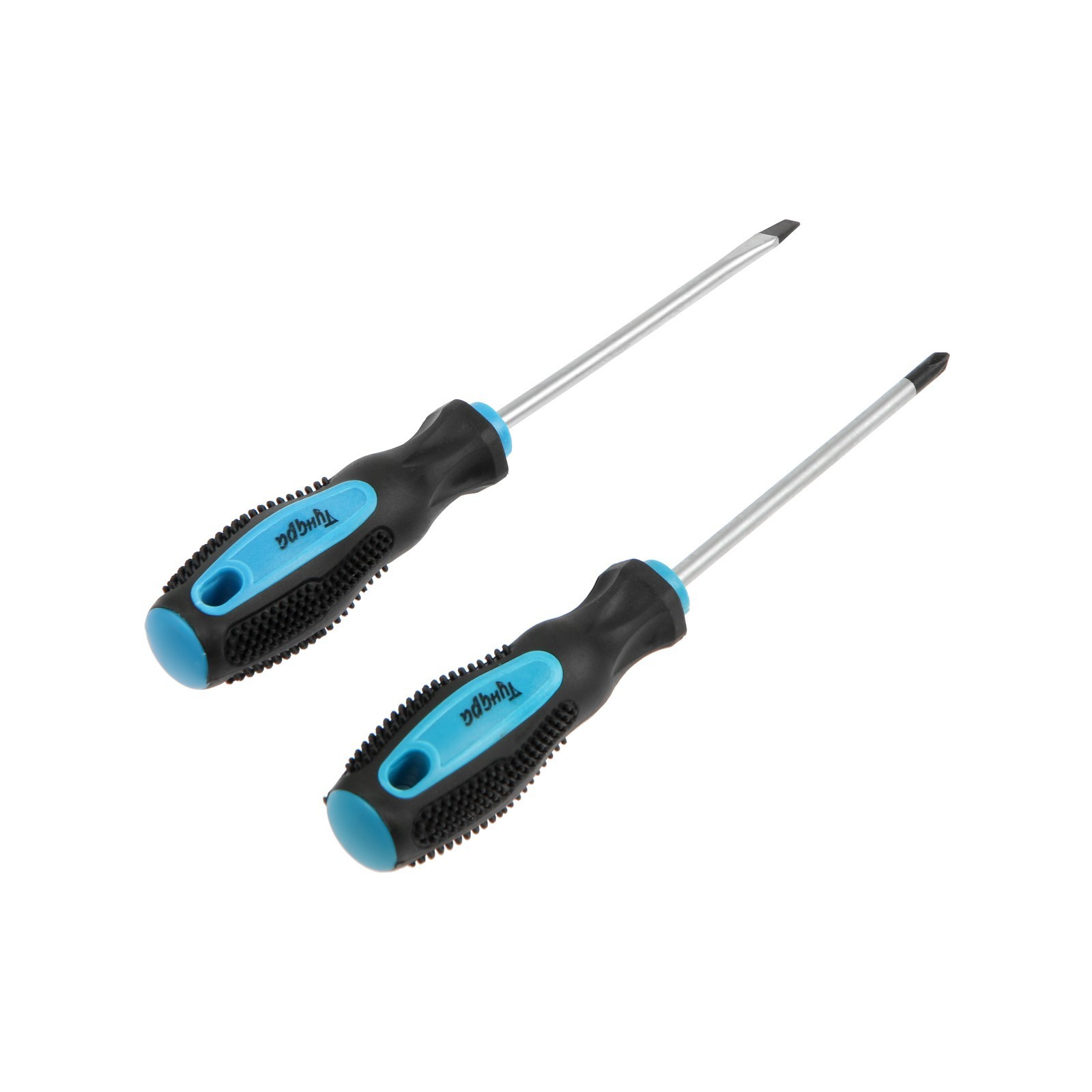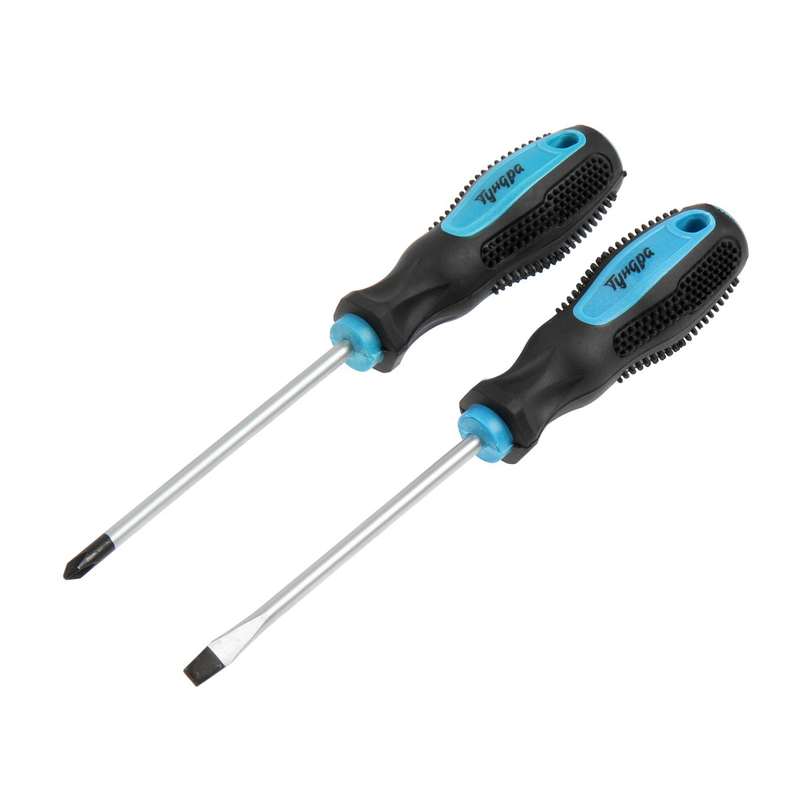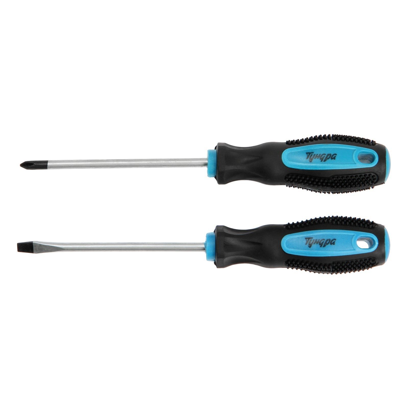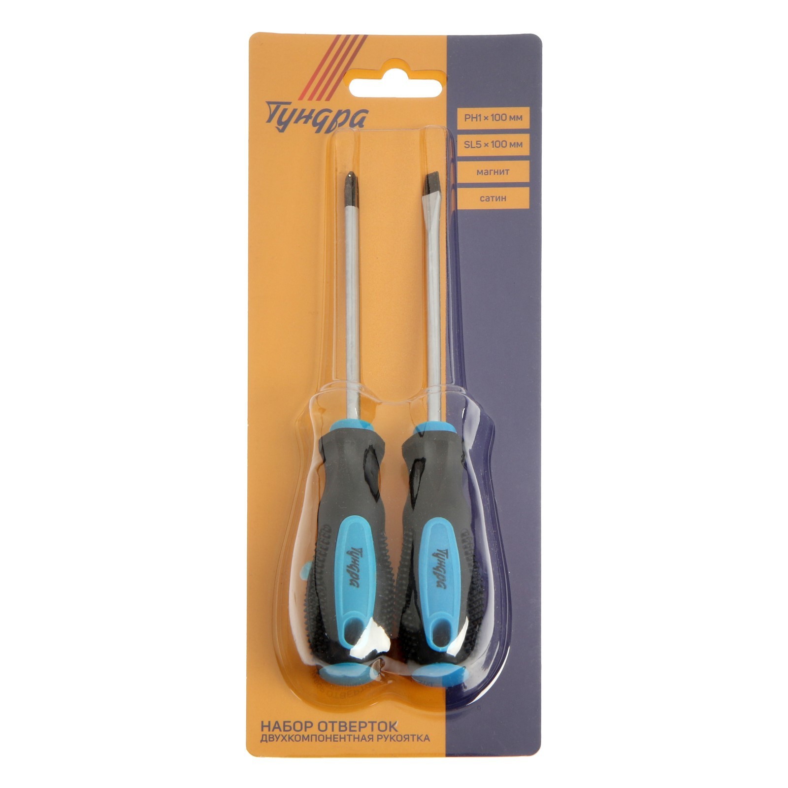 Набор отверток тундра, сатин, магнит, двухкомпонентные рукоятки, Ph1 и Sl5 100 мм, 2 шт.