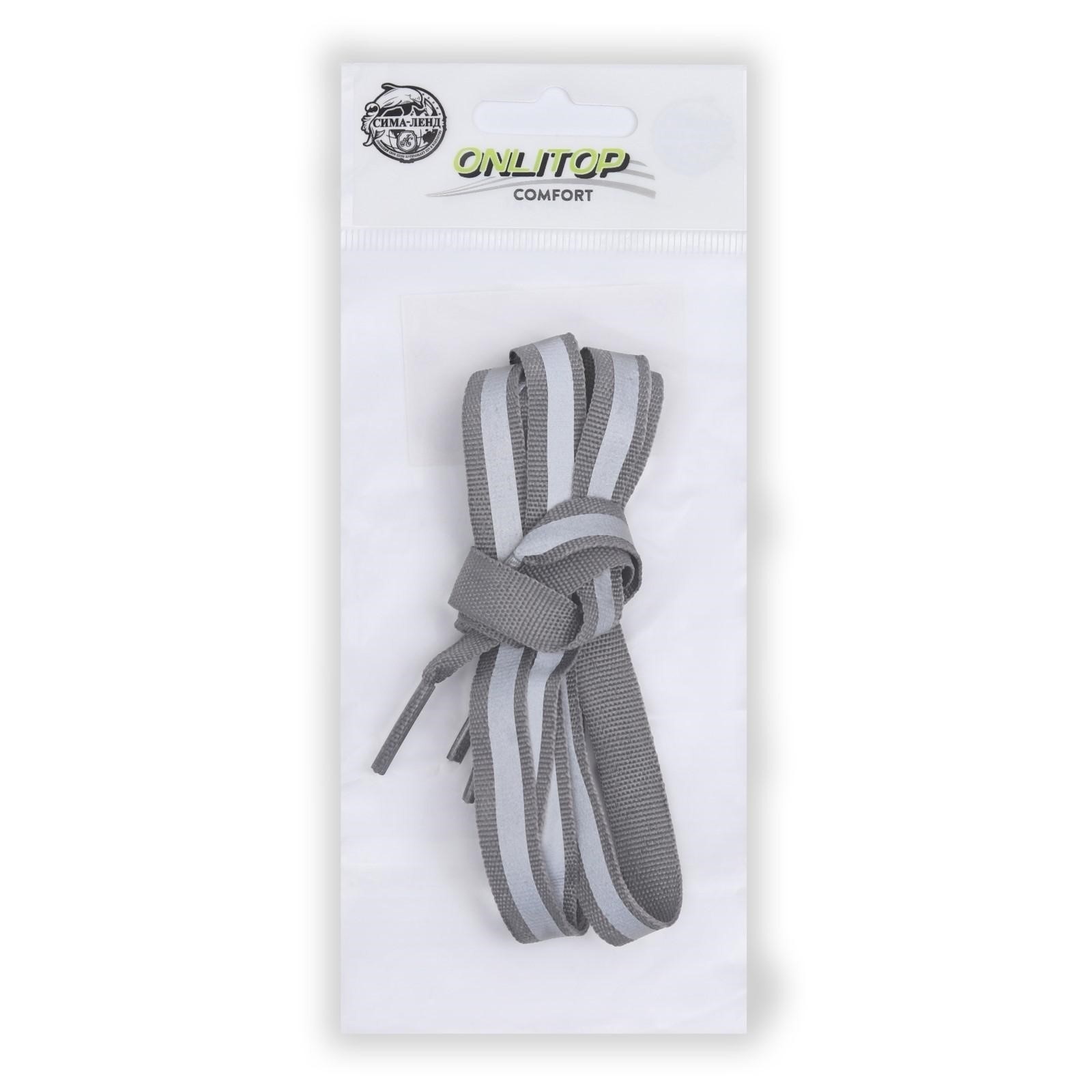 Шнурки для обуви, пара, плоские, со светоотражающей полосой, 10 мм, 70 см, цвет серый