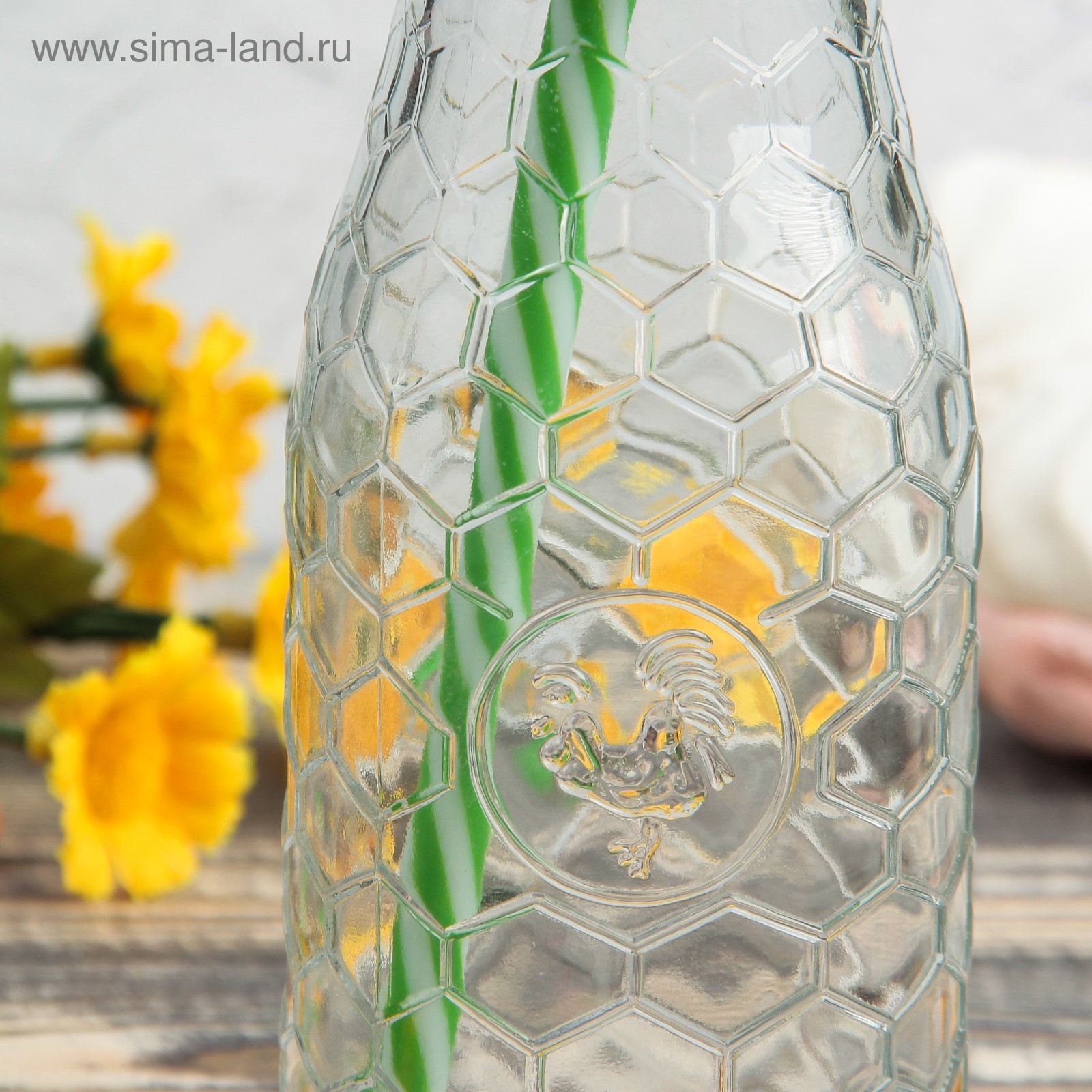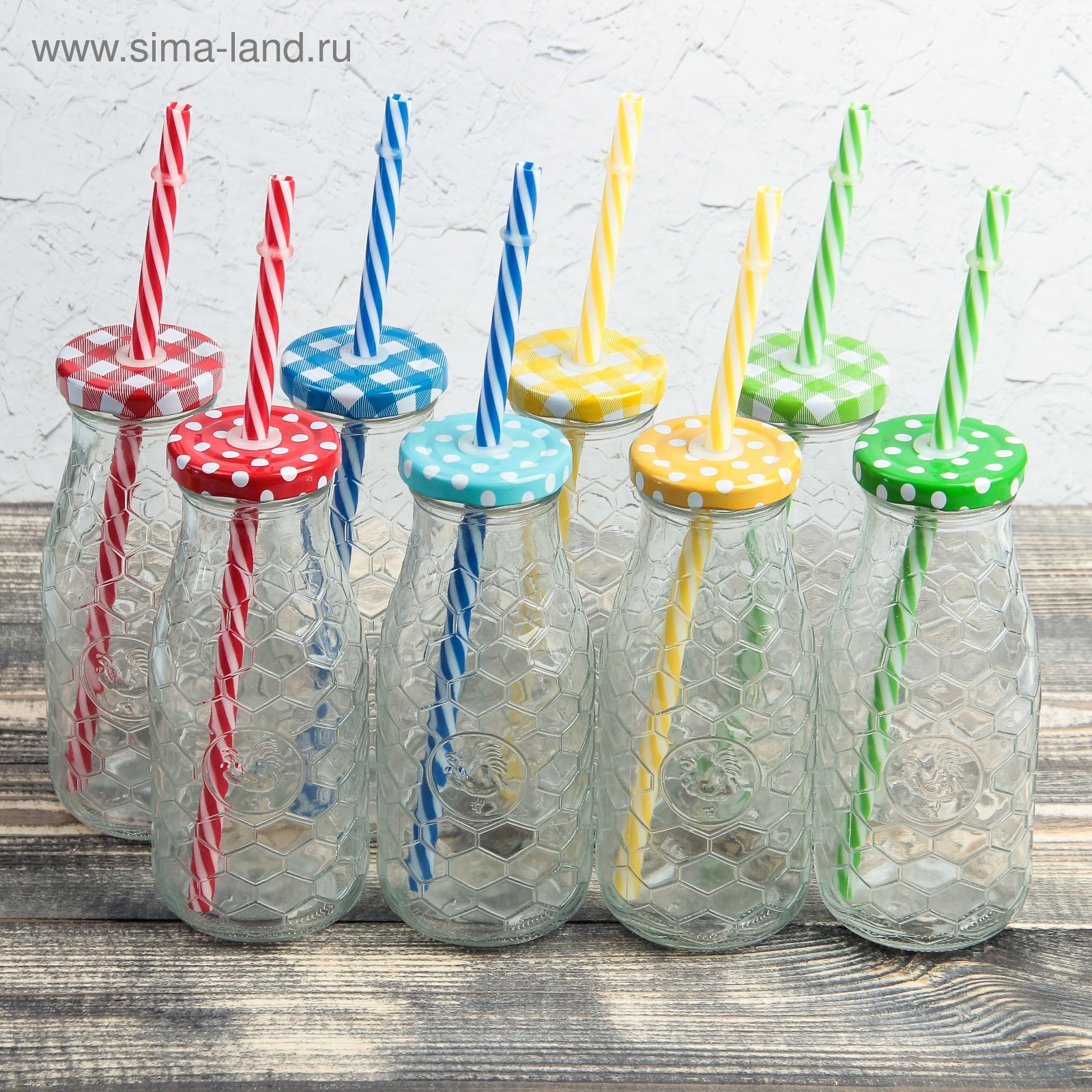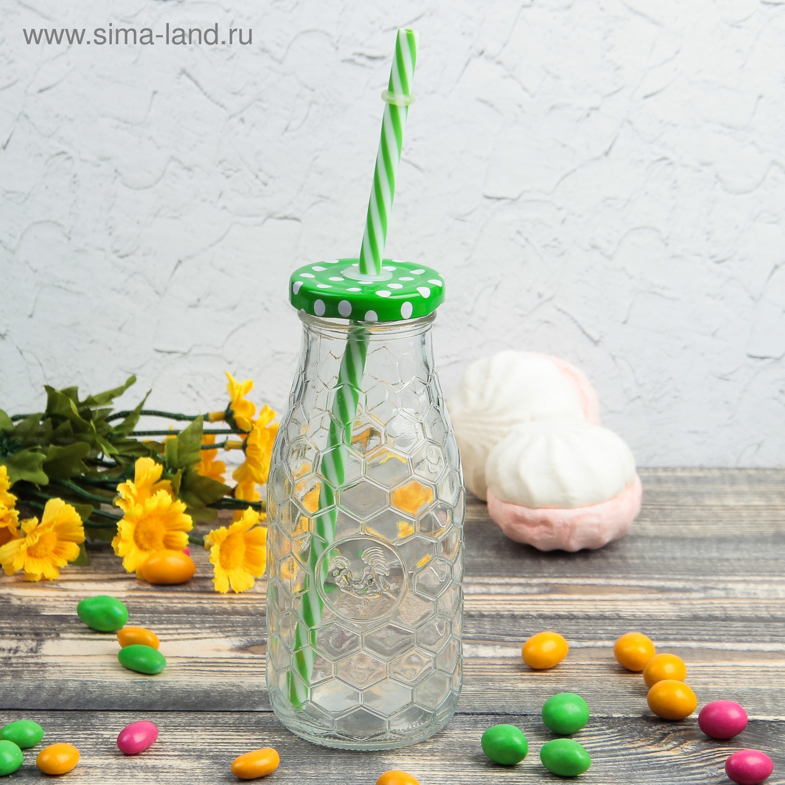 Бутыль стеклянная с крышкой и трубочкой «соты», 300 мл, 6,5x15,5 см, цвет микс