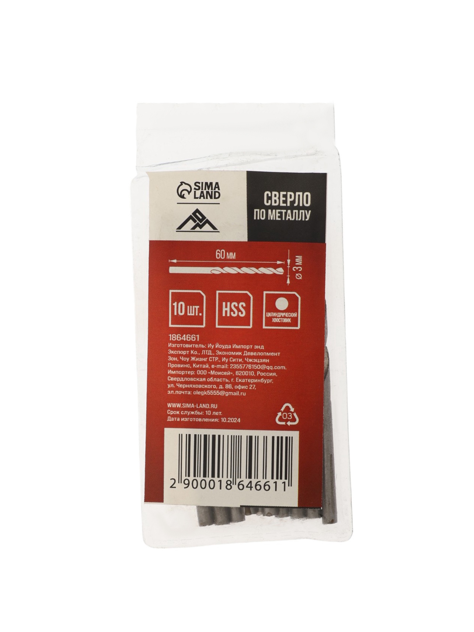Сверло по металлу лом, Hss, цилиндрический хвостовик, 3 60 мм, 10 шт.