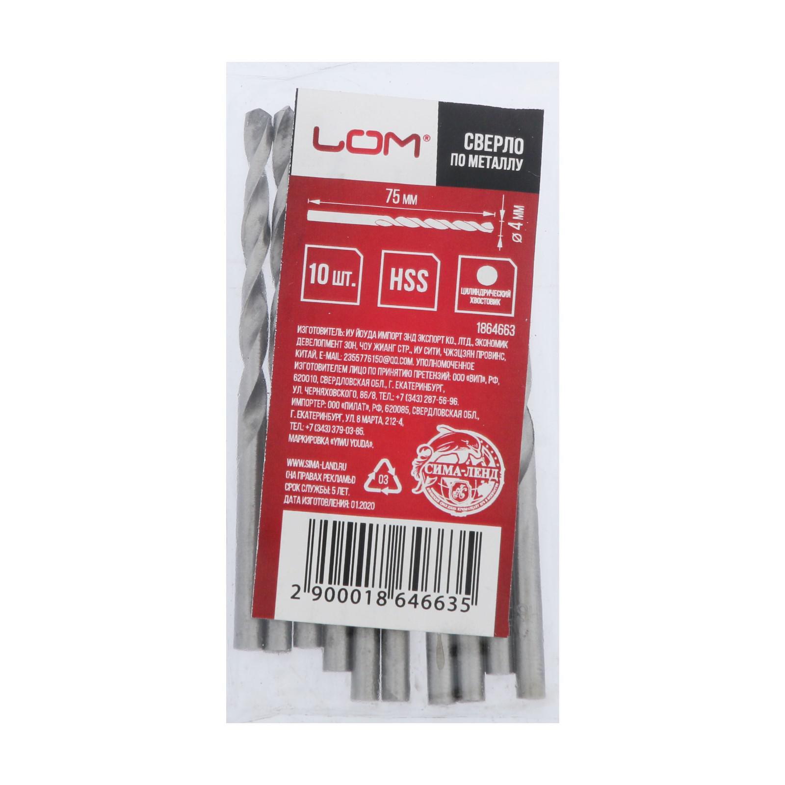 Сверло по металлу лом, Hss, цилиндрический хвостовик, 4 75 мм, 10 шт.