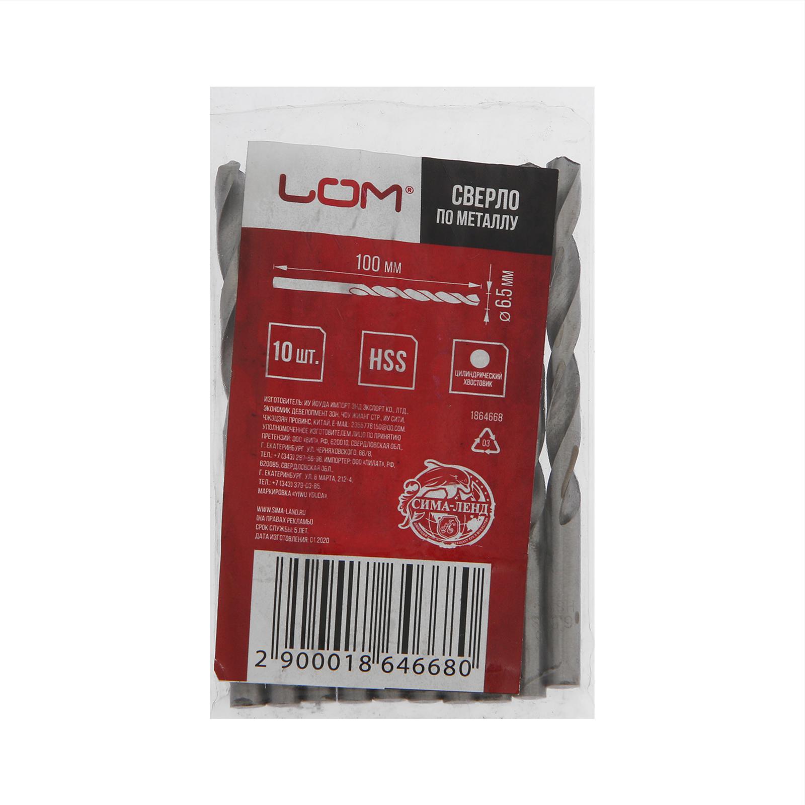 Сверло по металлу лом, Hss, цилиндрический хвостовик, 6.5 100 мм, 10 шт.