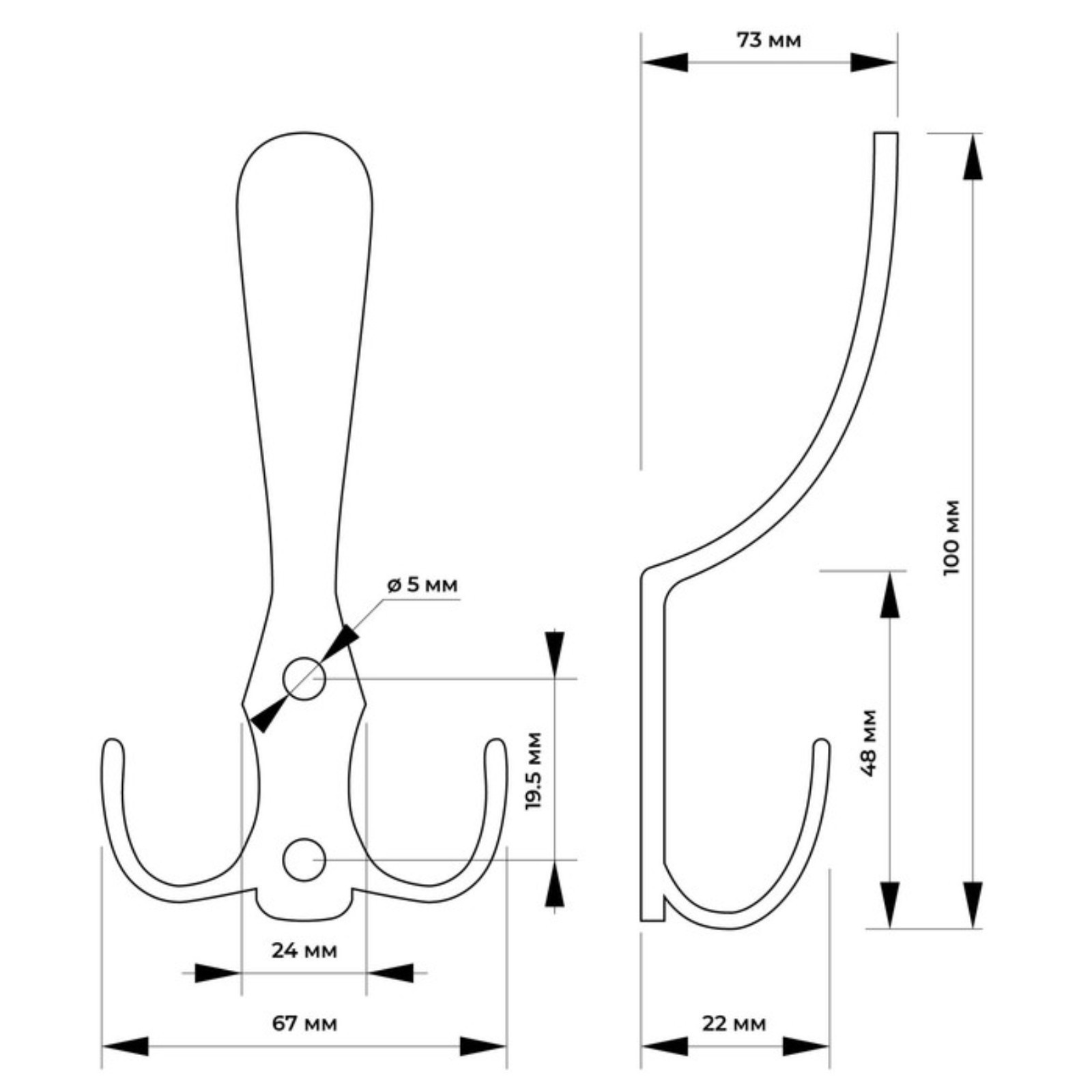 Крючок мебельный тундра Tkt004, трехрожковый, матовый никель