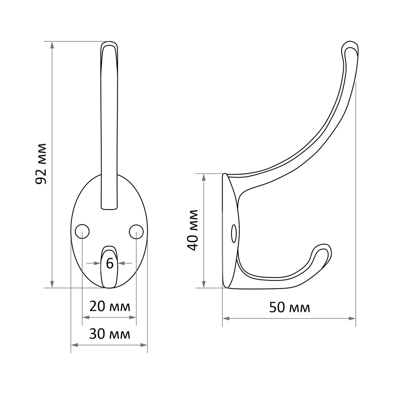 Крючок мебельный тундра Tkd012, двухрожковый, медь