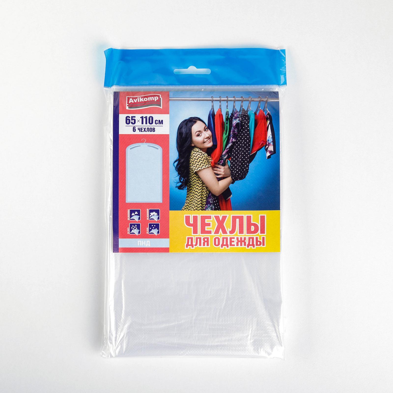 Набор чехлов для одежды 65x110 см, 6 шт, цвет прозрачный