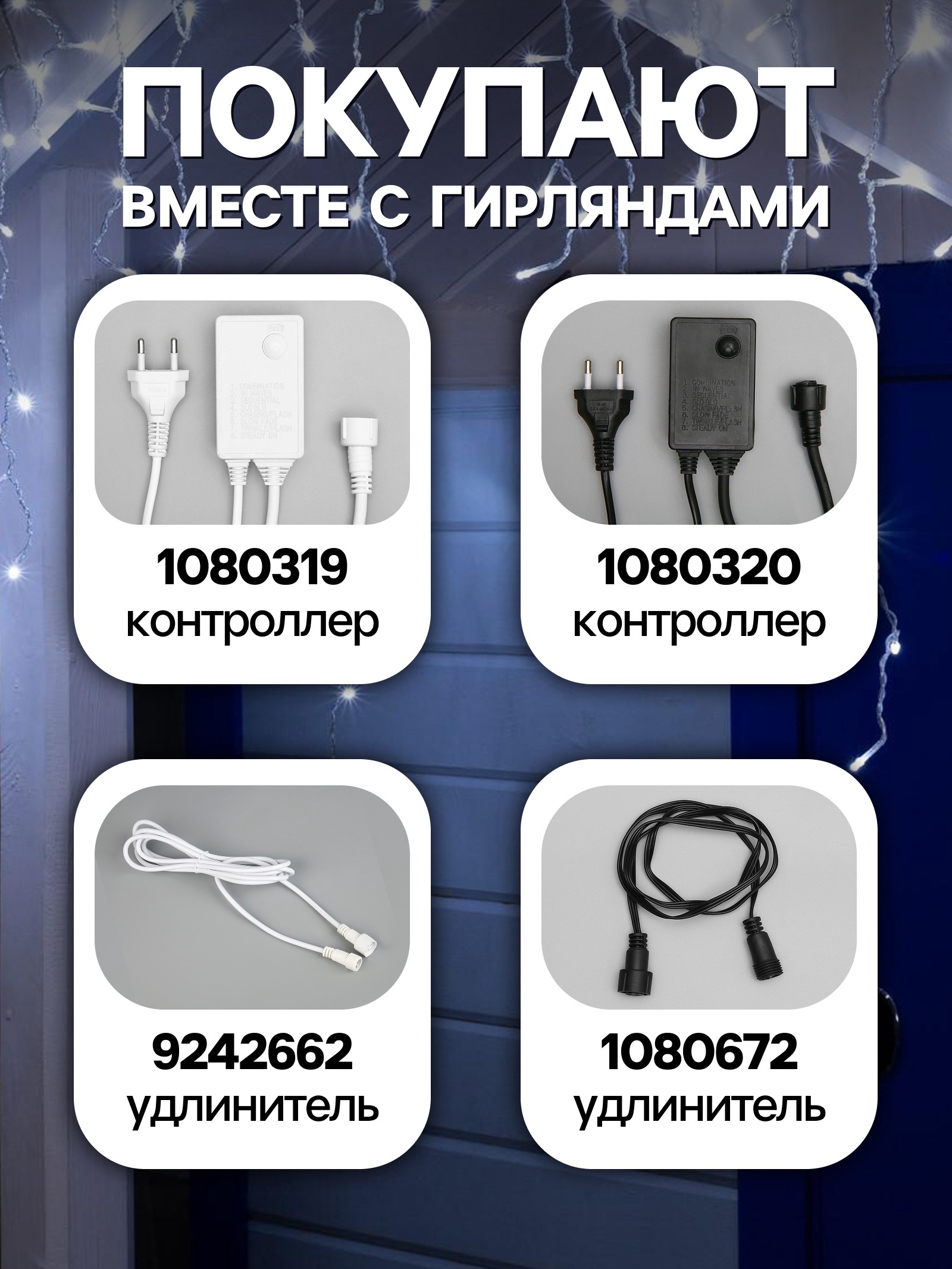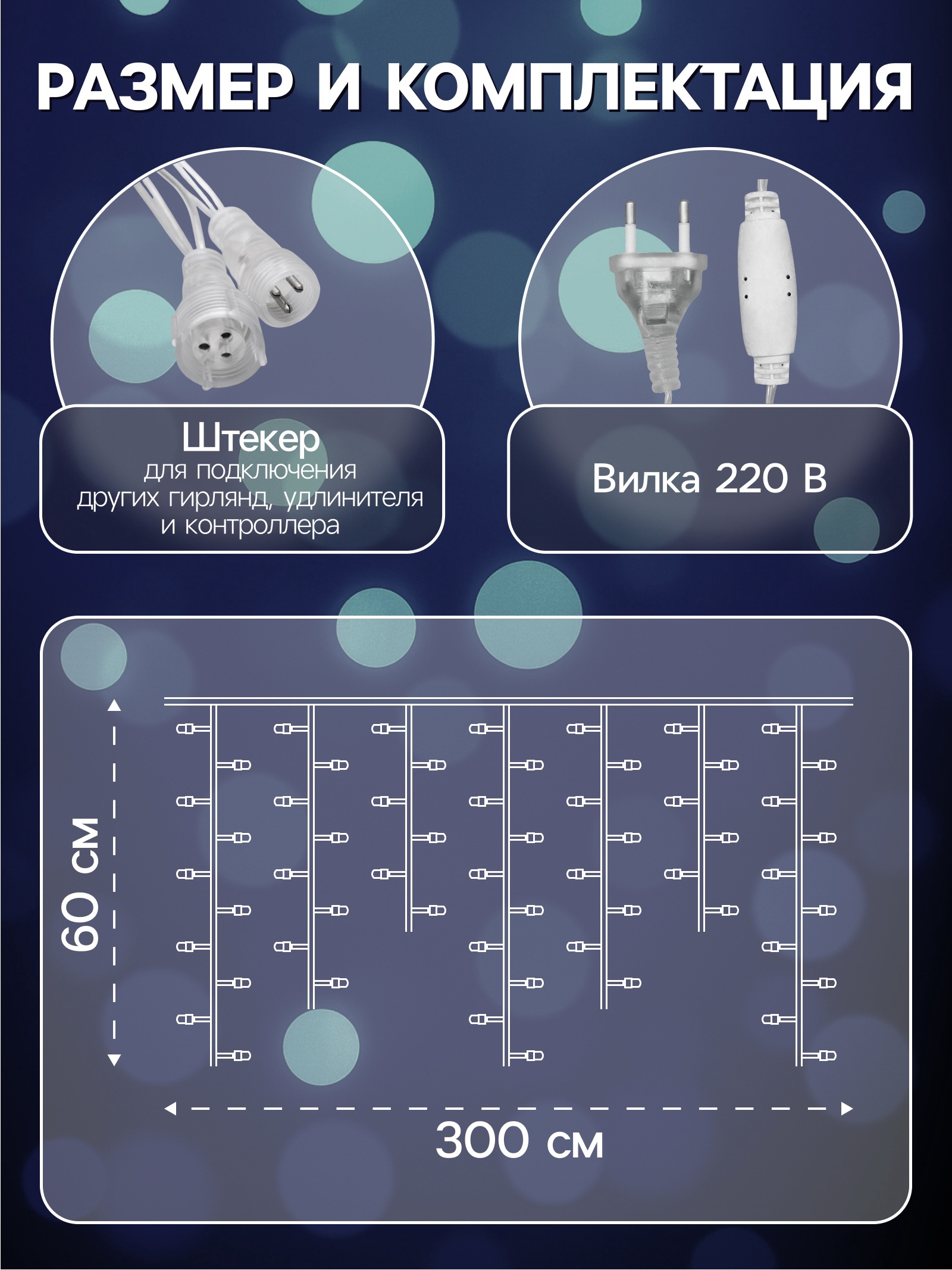 Гирлянда «бахрома» 3 0.6 м, Ip44, умс, прозрачная нить, 160 Led, свечение белое, 220 в