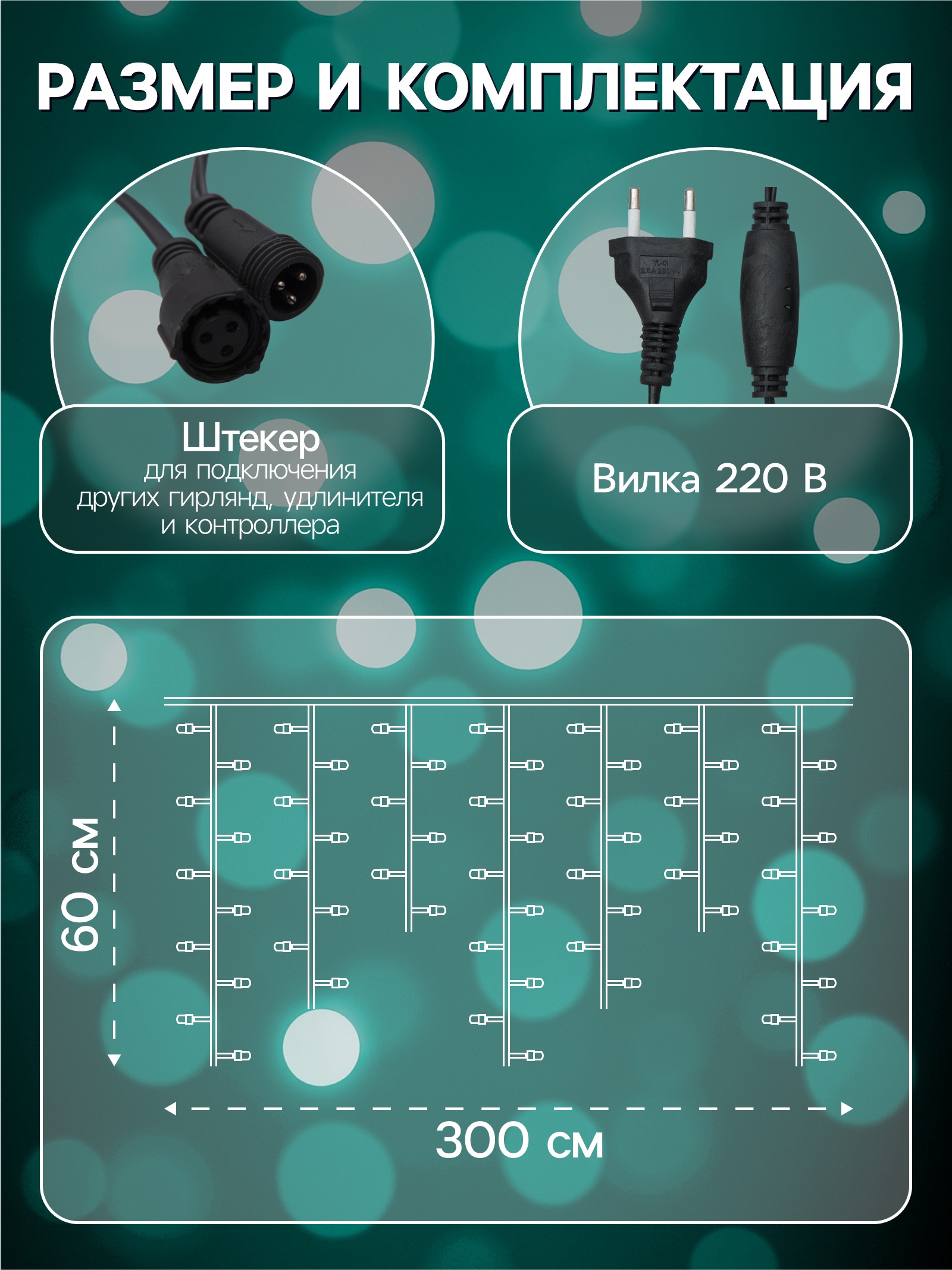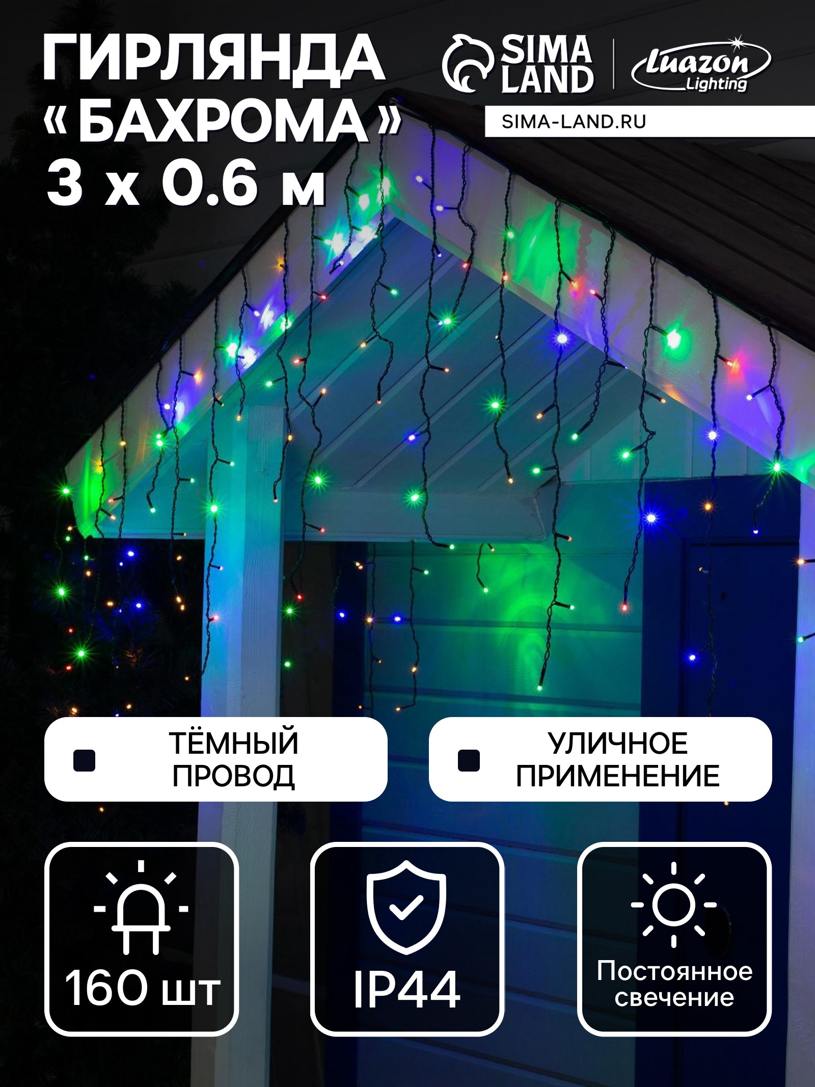 Гирлянда «бахрома» 3 0.6 м, Ip44, умс, тёмная нить, 160 Led, свечение мульти, 220 в