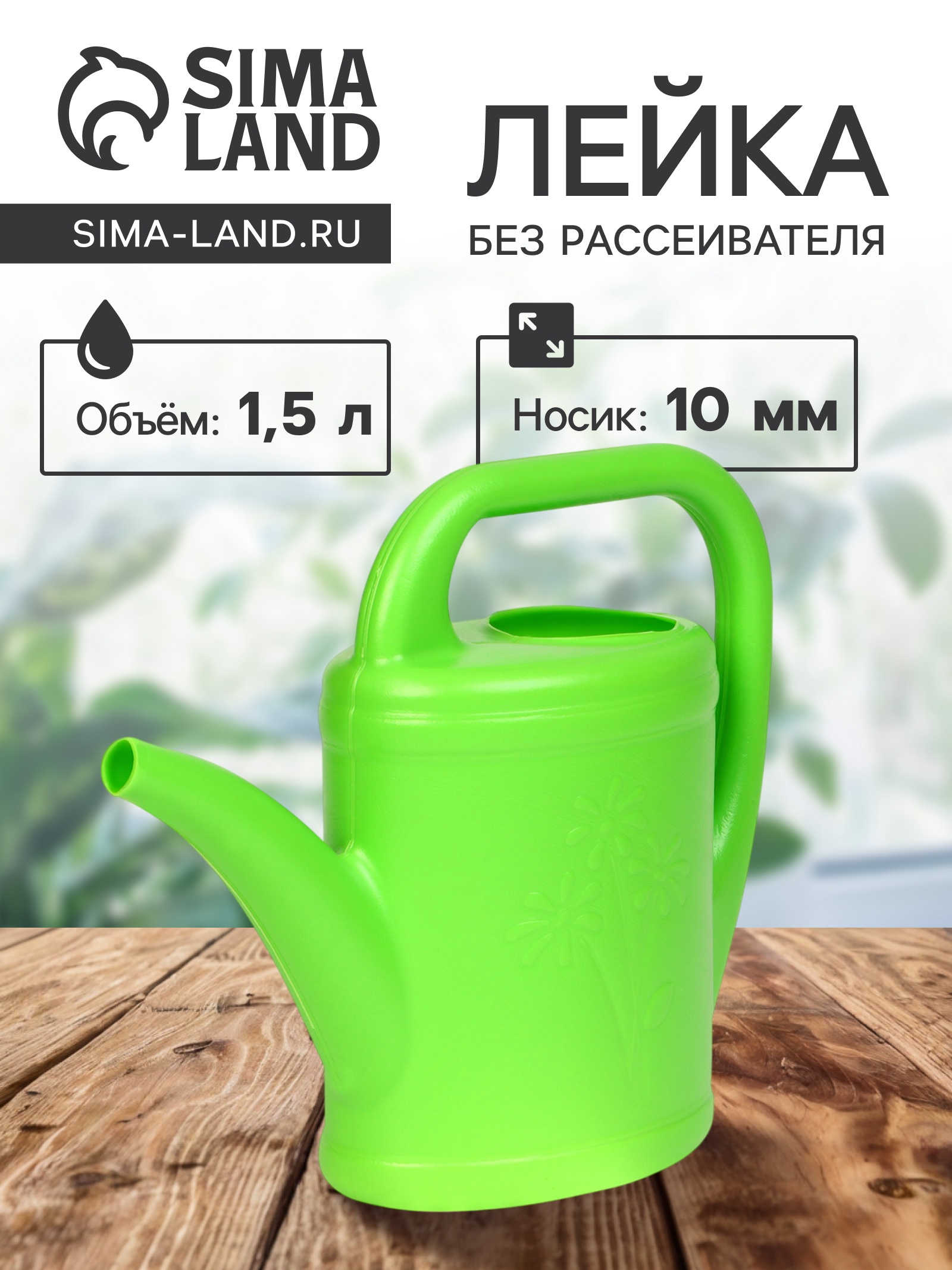Лейка, 1.5 л, без рассеивателя, носик D=10 мм, зелёная